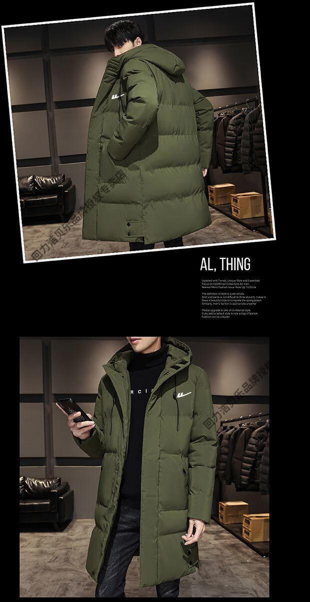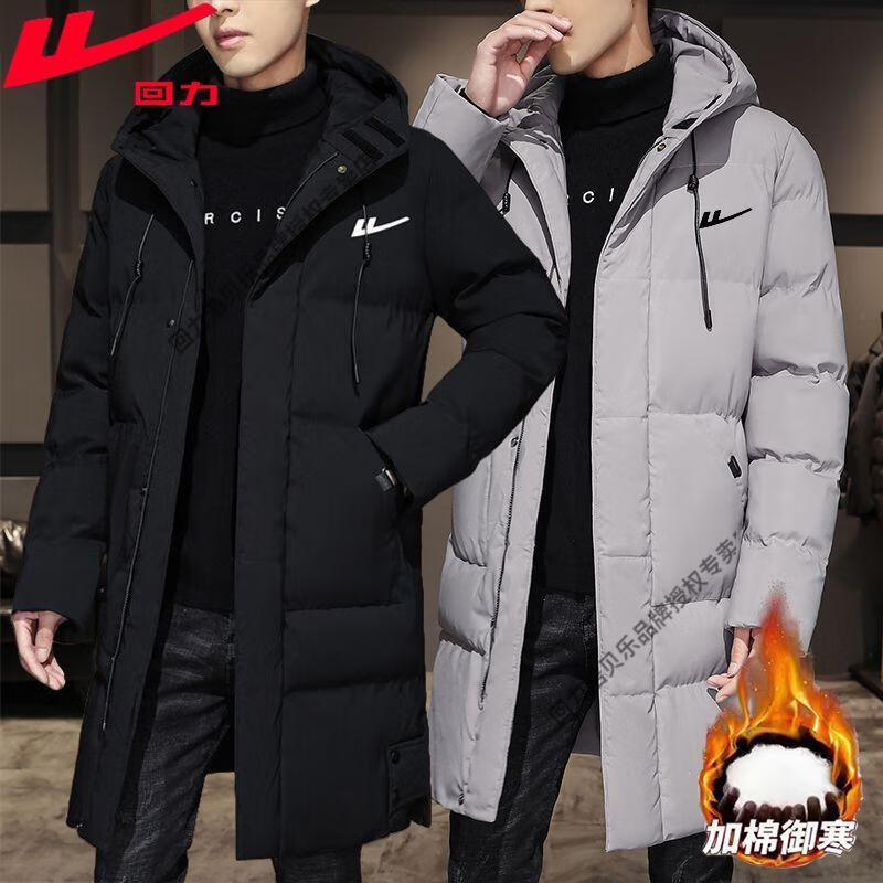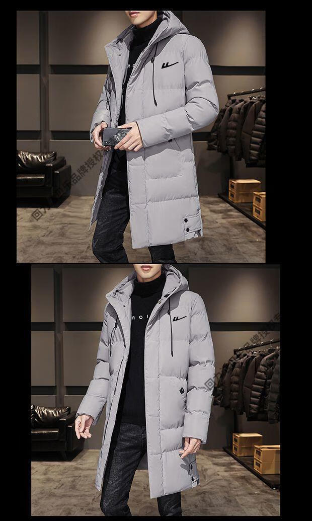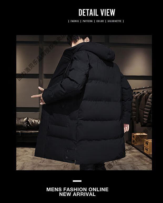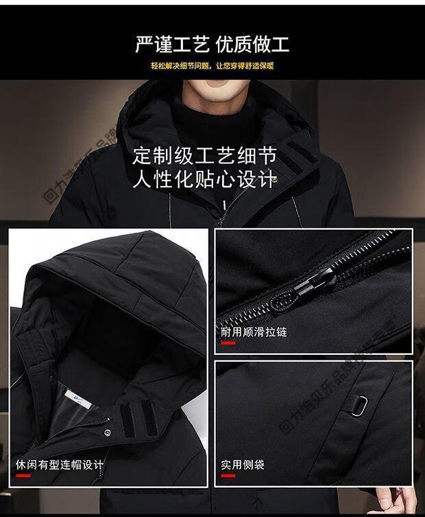 Warrior winter thickened windproof men's casual cold-proof long hooded cotton jacket mid-length new white duck down cotton jacket black thickened warm mid-length XL recommended 130-145Jin Jin equals 0.5 kg