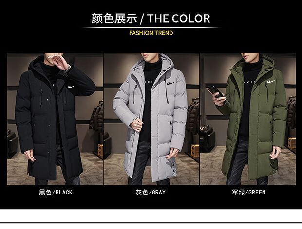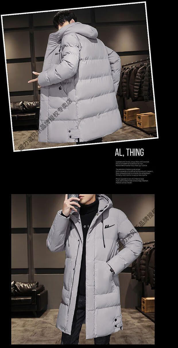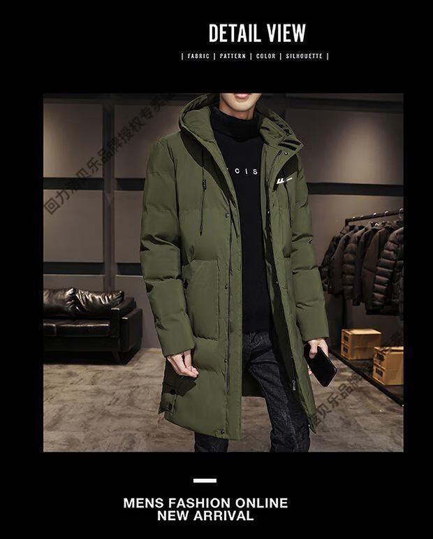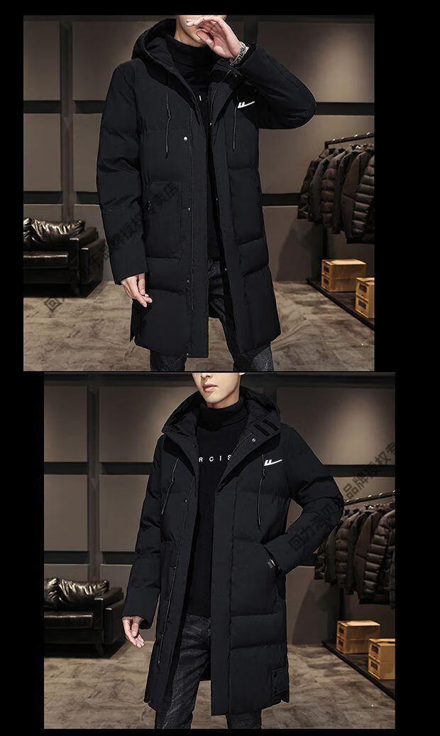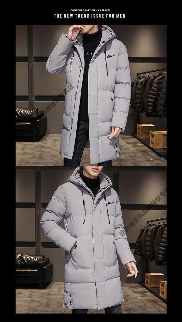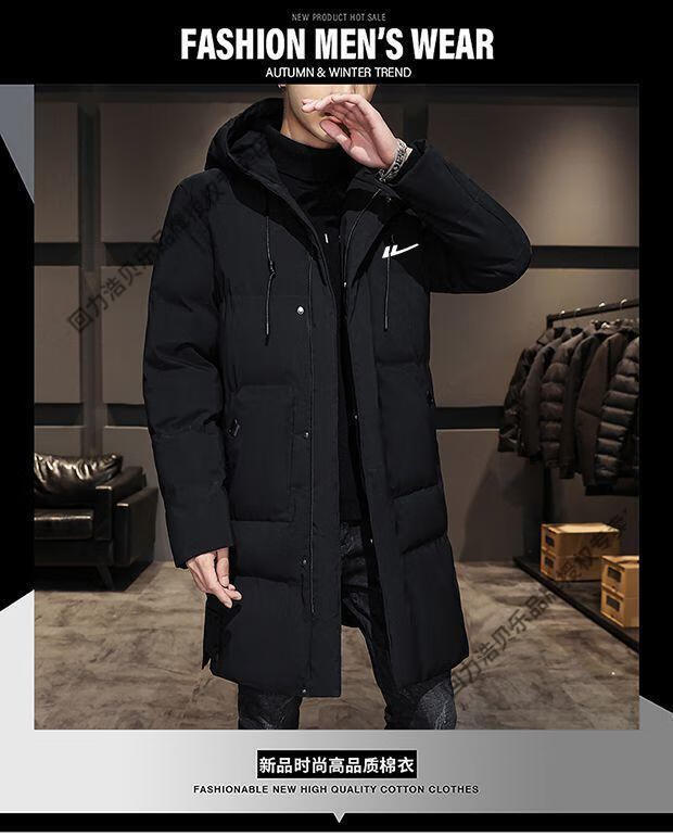 Warrior winter thickened windproof men's casual cold-proof long hooded cotton jacket mid-length new white duck down cotton jacket black thickened warm mid-length XL recommended 130-145Jin Jin equals 0.5 kg