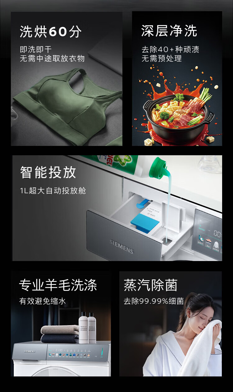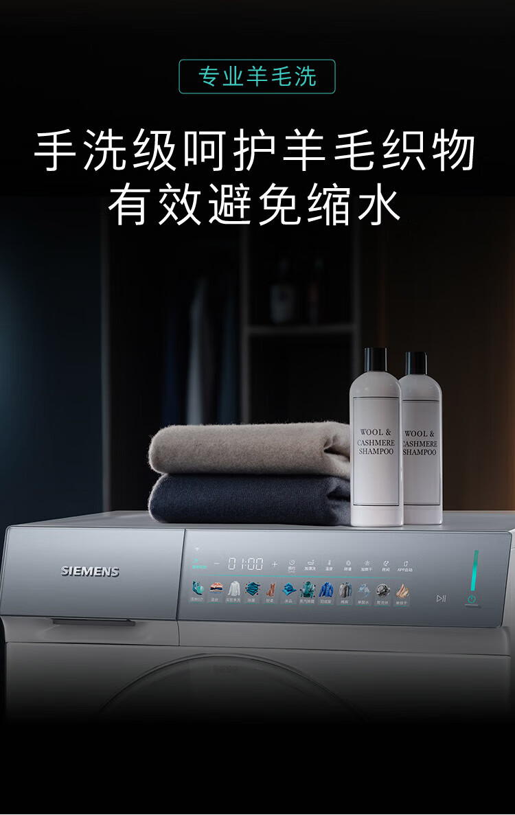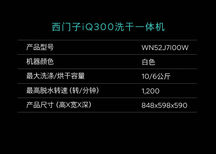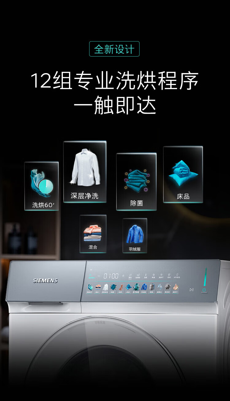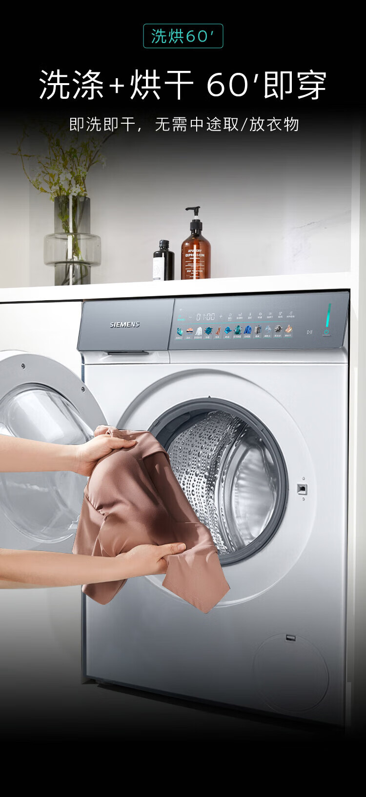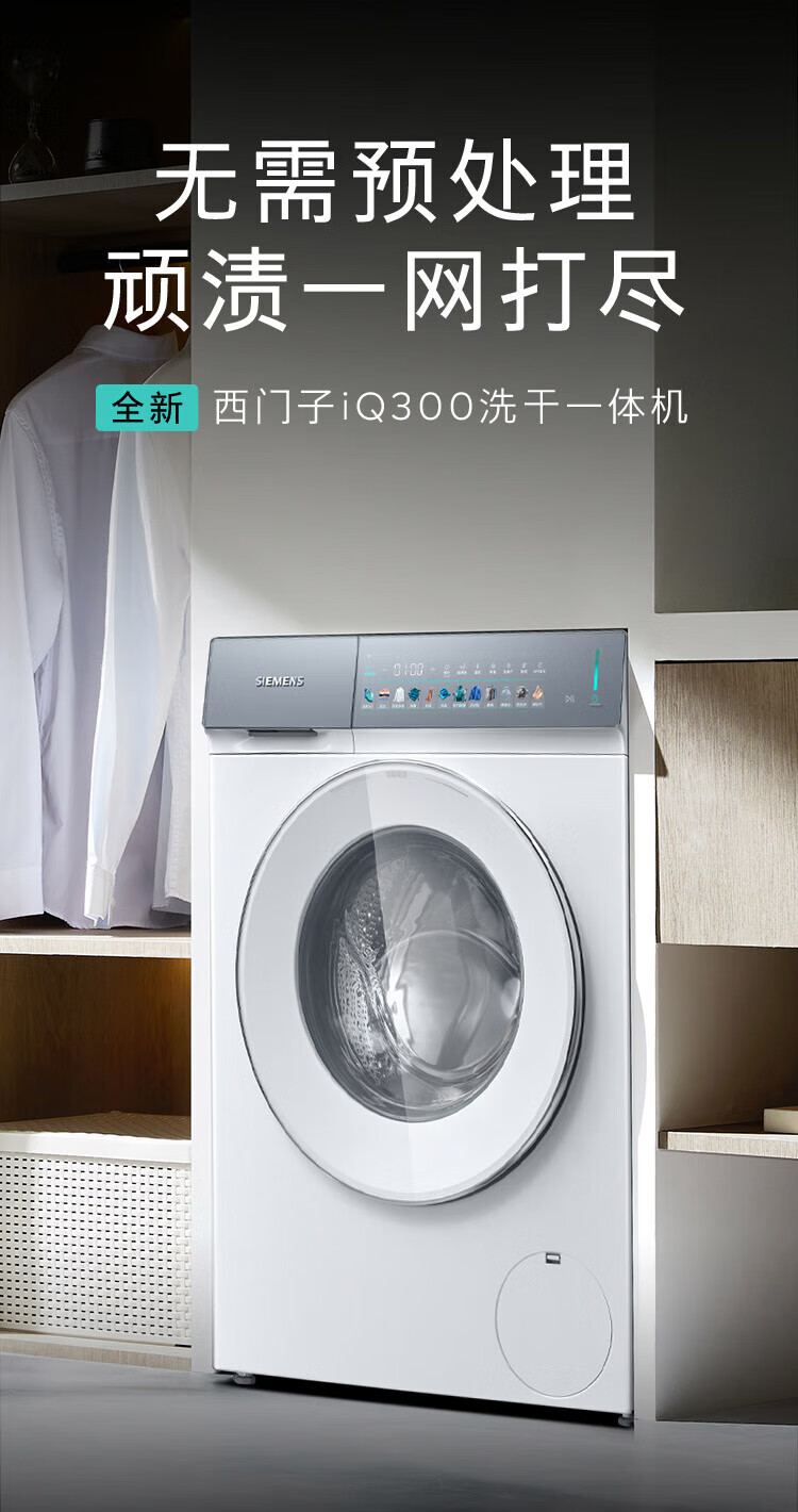 西门子(SIEMENS)小幸熨iQ300 10公斤洗烘一体机全自动变频滚筒洗衣机大容量 深层净洗 蒸汽除菌 智能投放 WN52J7I00W