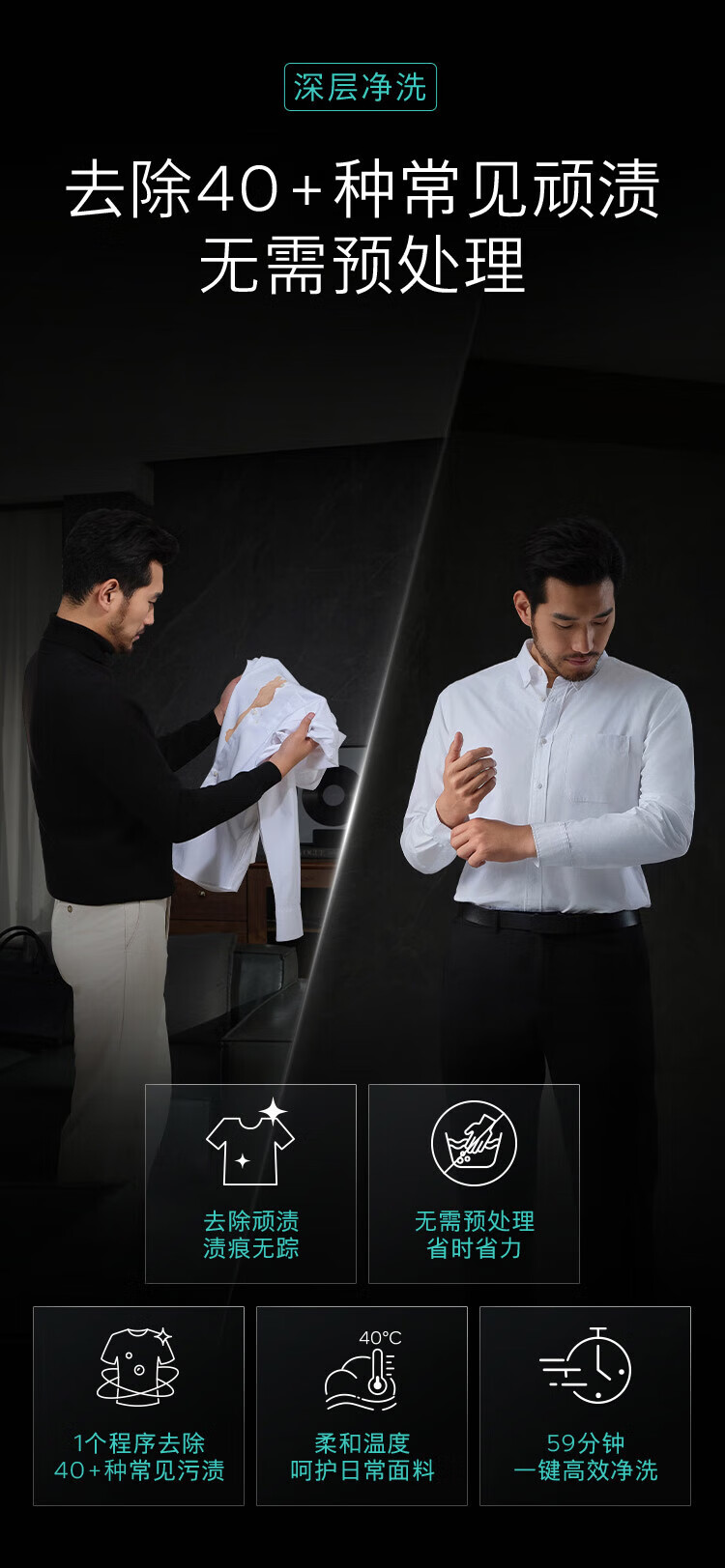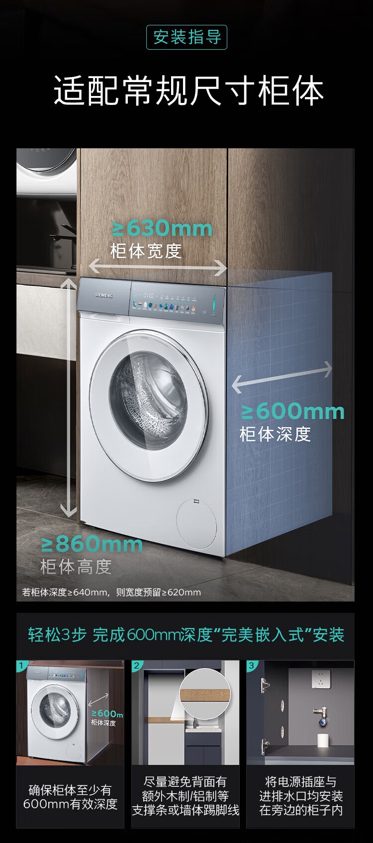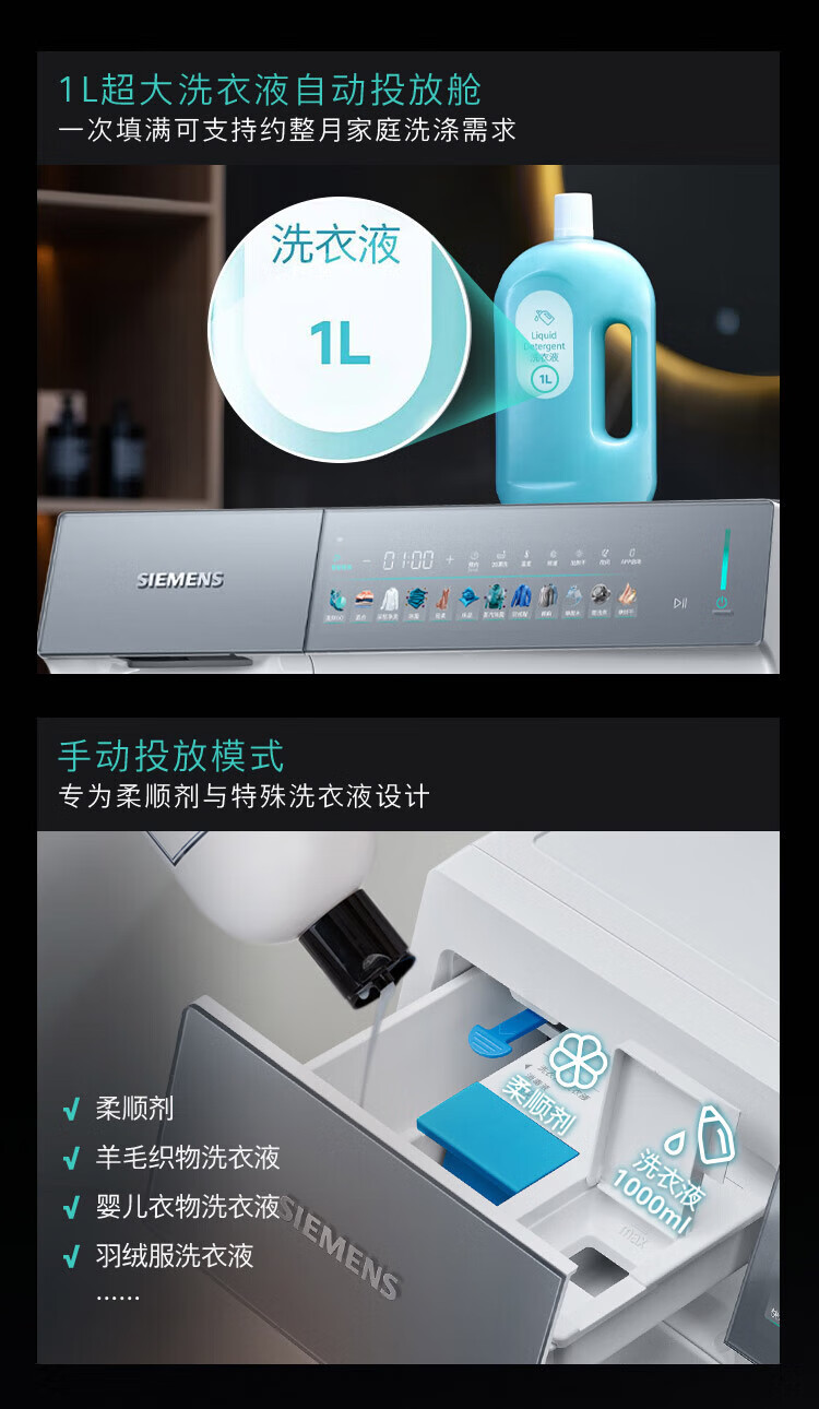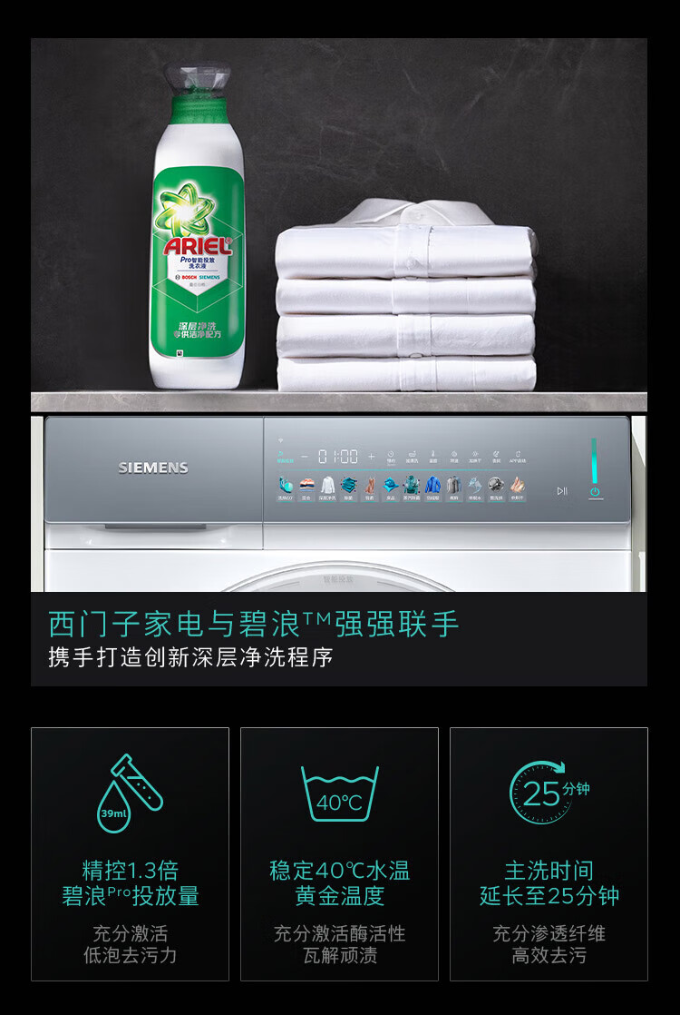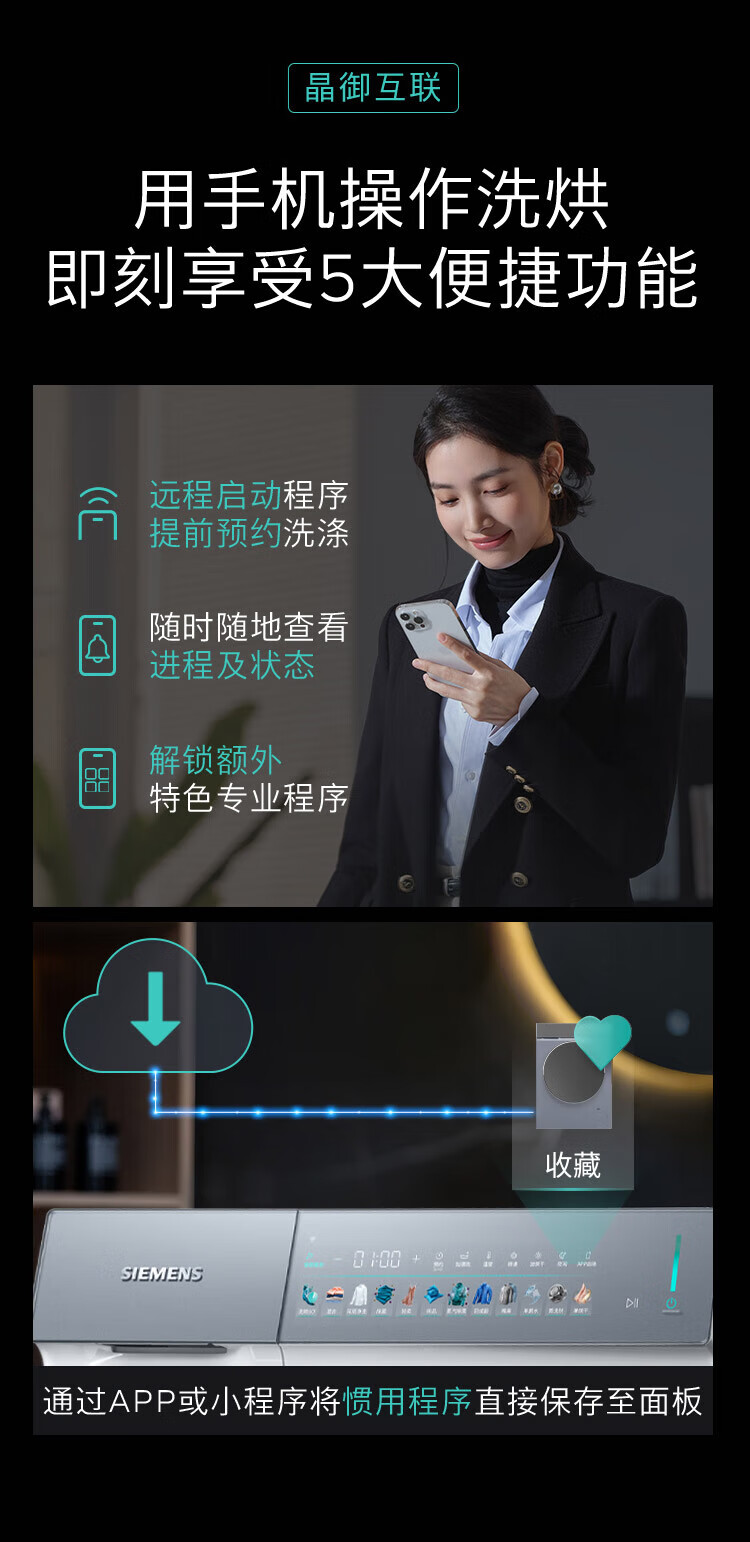 西门子(SIEMENS)小幸熨iQ300 10公斤洗烘一体机全自动变频滚筒洗衣机大容量 深层净洗 蒸汽除菌 智能投放 WN52J7I00W