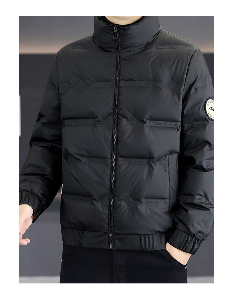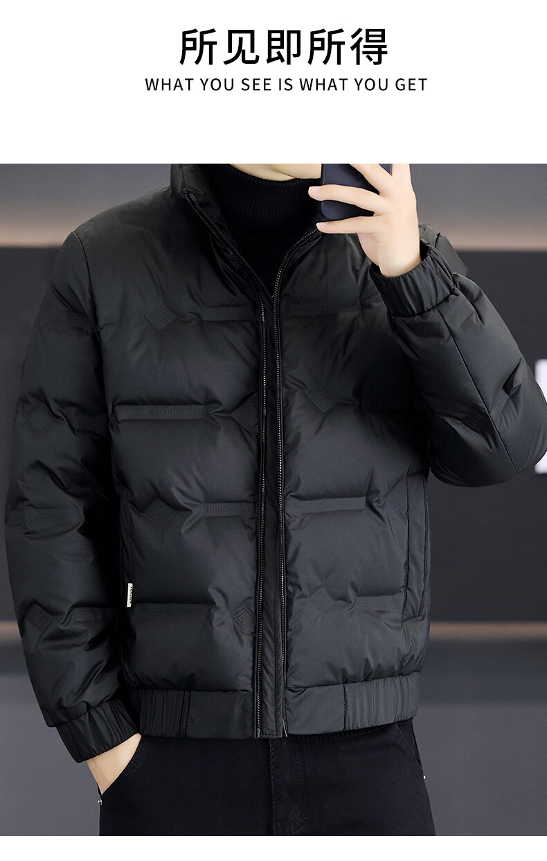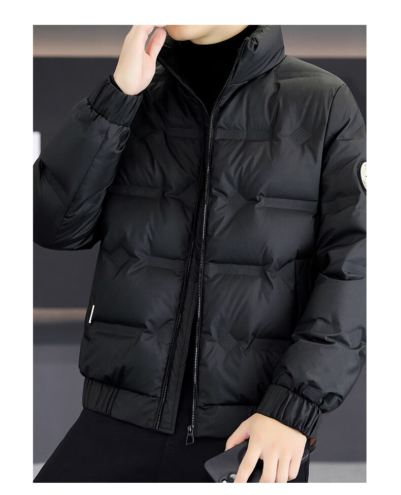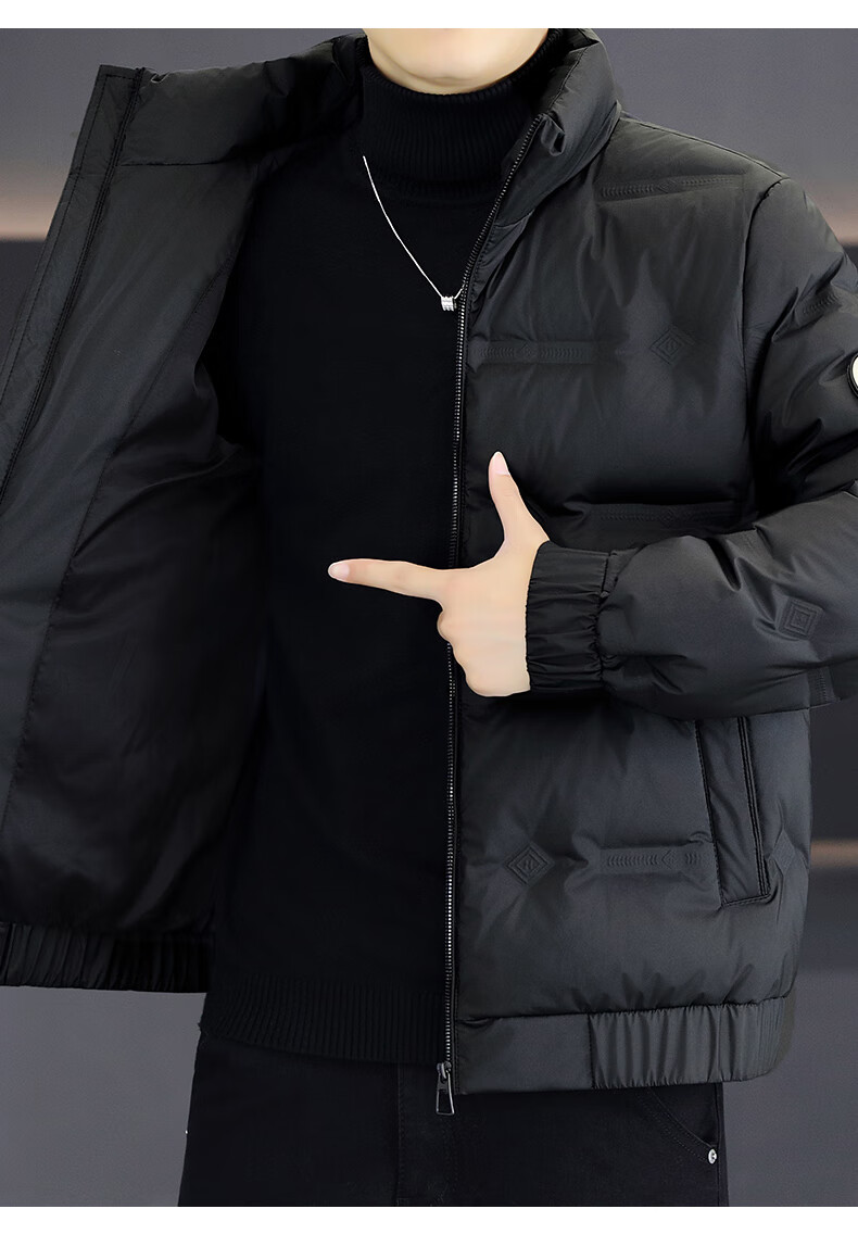 JEEP SPIRIT Lightweight Down Jacket Men's Winter 2025 New Simple Stand-up Collar Jacket Trendy Casual Coldproof Wear Youth Top Black XL