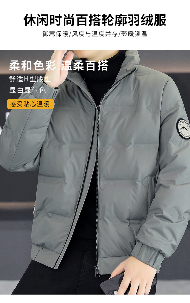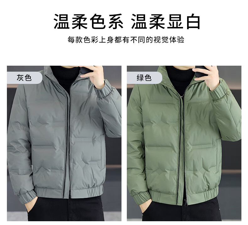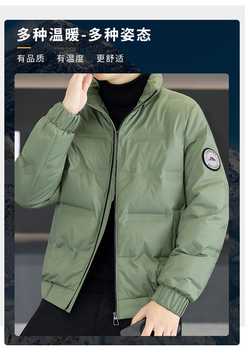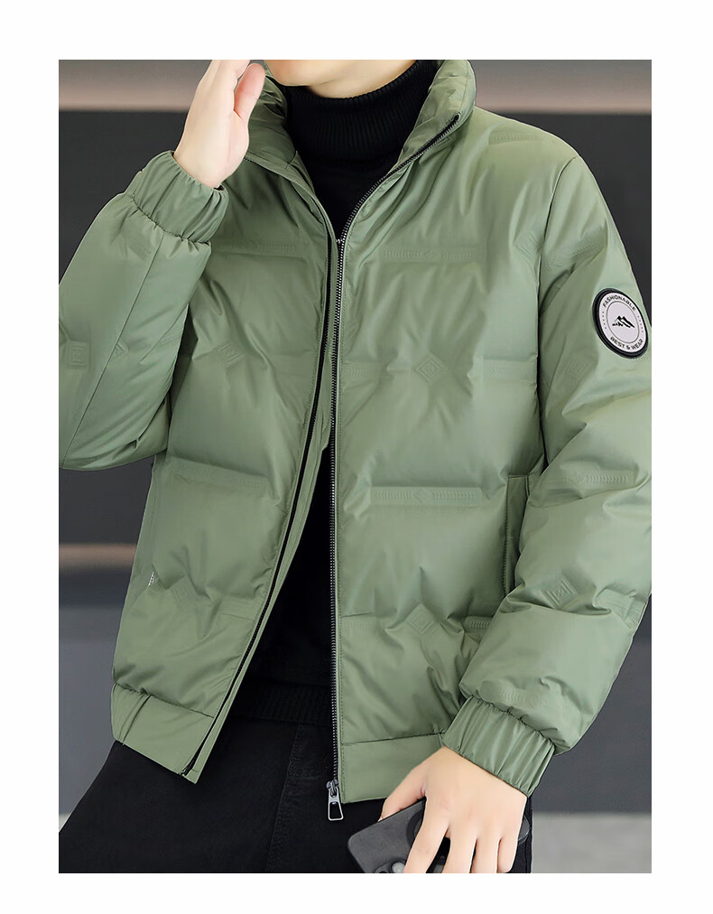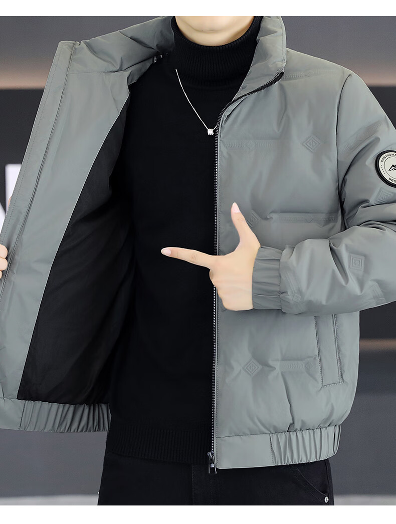 JEEP SPIRIT Lightweight Down Jacket Men's Winter 2025 New Simple Stand-up Collar Jacket Trendy Casual Coldproof Wear Youth Top Black XL