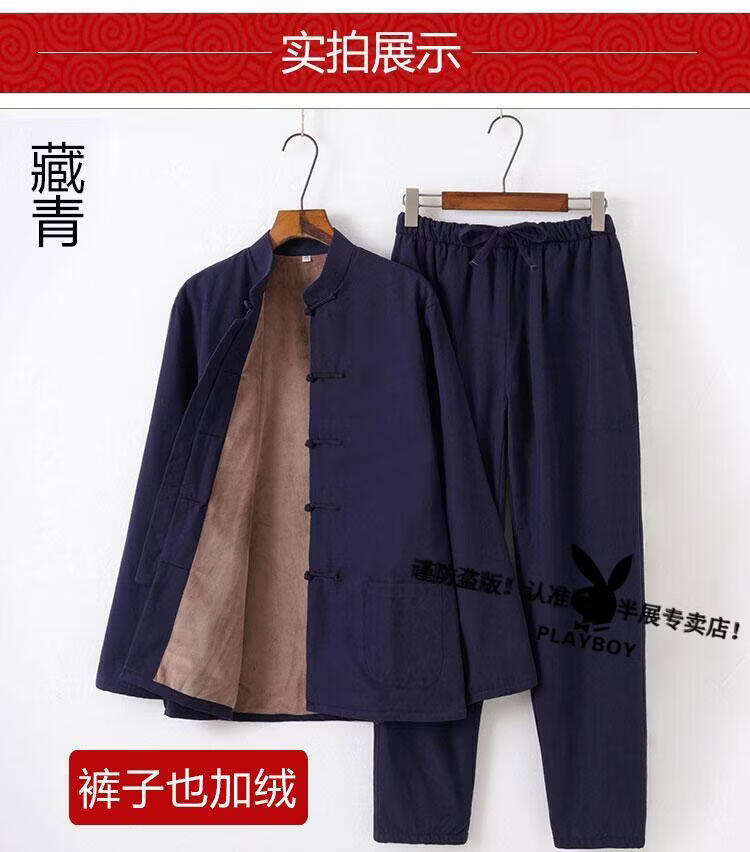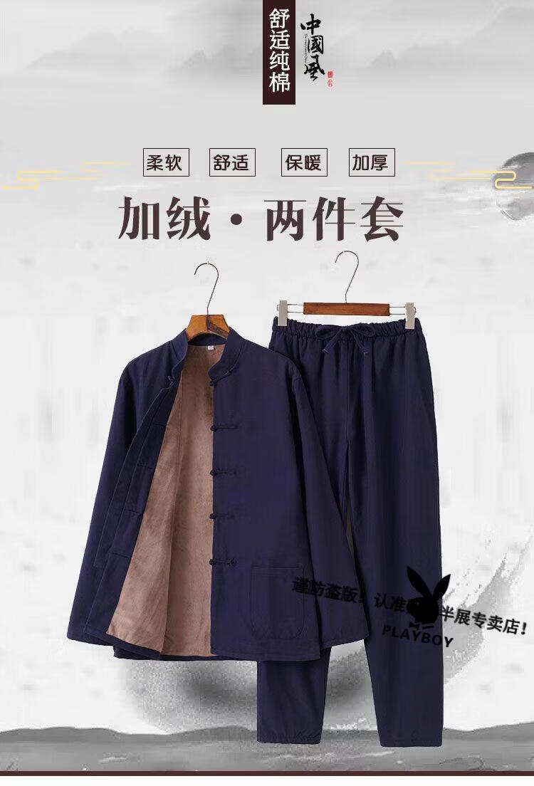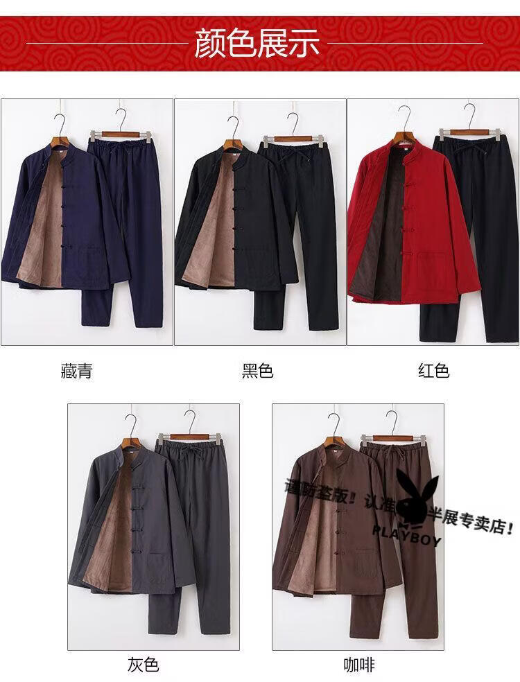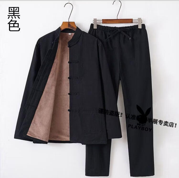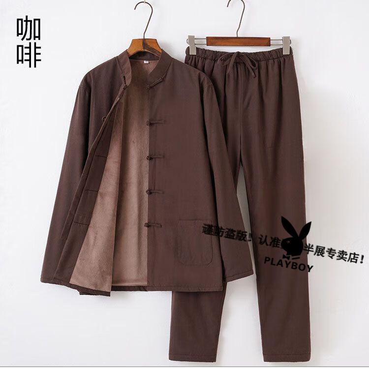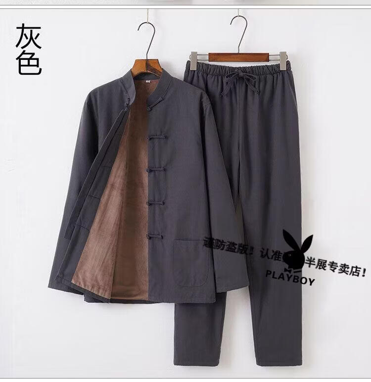 Playboy (PLAYBOY) autumn and winter cotton, linen and velvet Tai Chi suits for men, thickened cotton coats and trousers, middle-aged and elderly retro Tang suits, Tai Chi exercises, morning exercises, gray XL