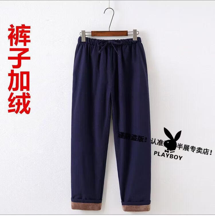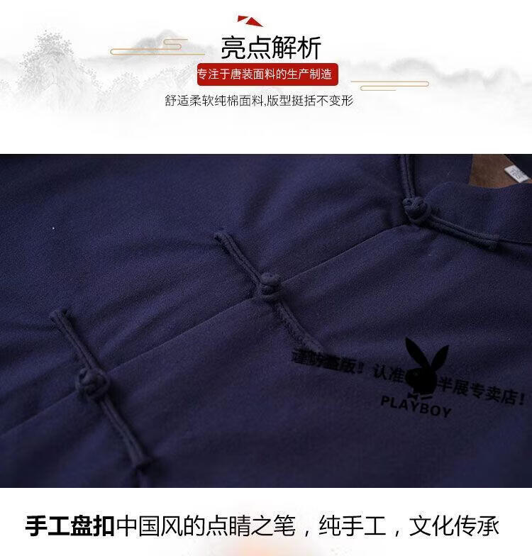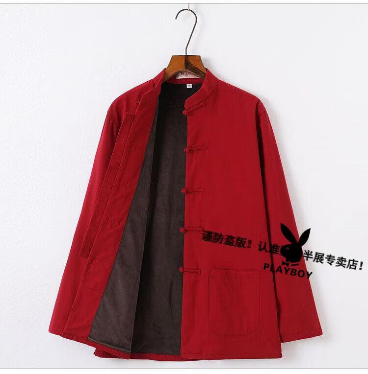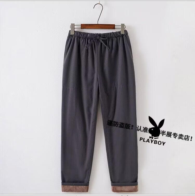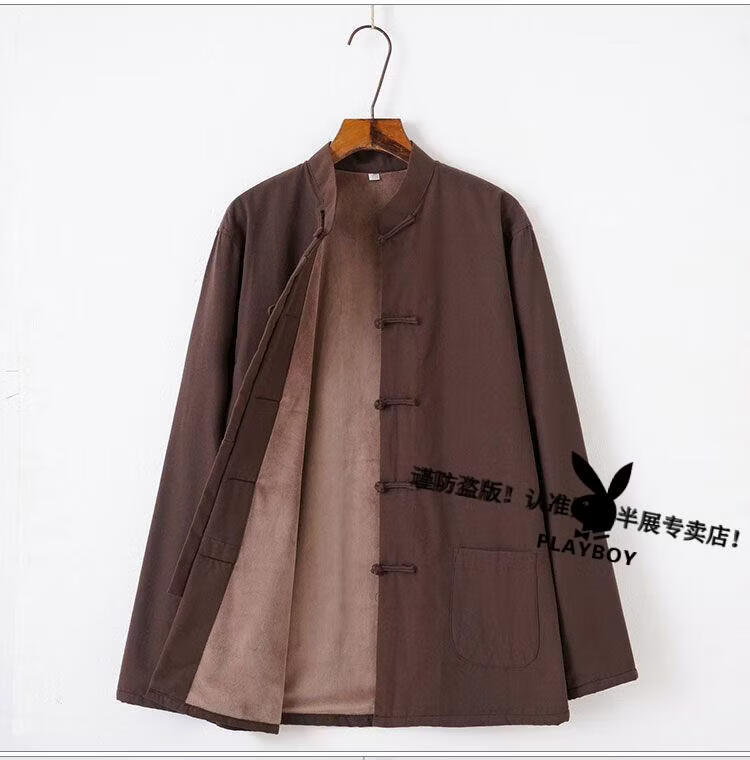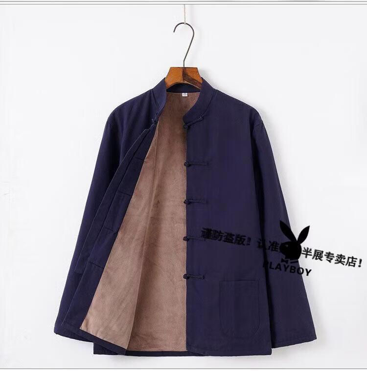 Playboy (PLAYBOY) autumn and winter cotton, linen and velvet Tai Chi suits for men, thickened cotton coats and trousers, middle-aged and elderly retro Tang suits, Tai Chi exercises, morning exercises, gray XL