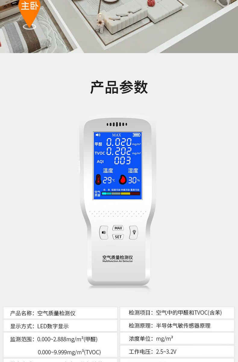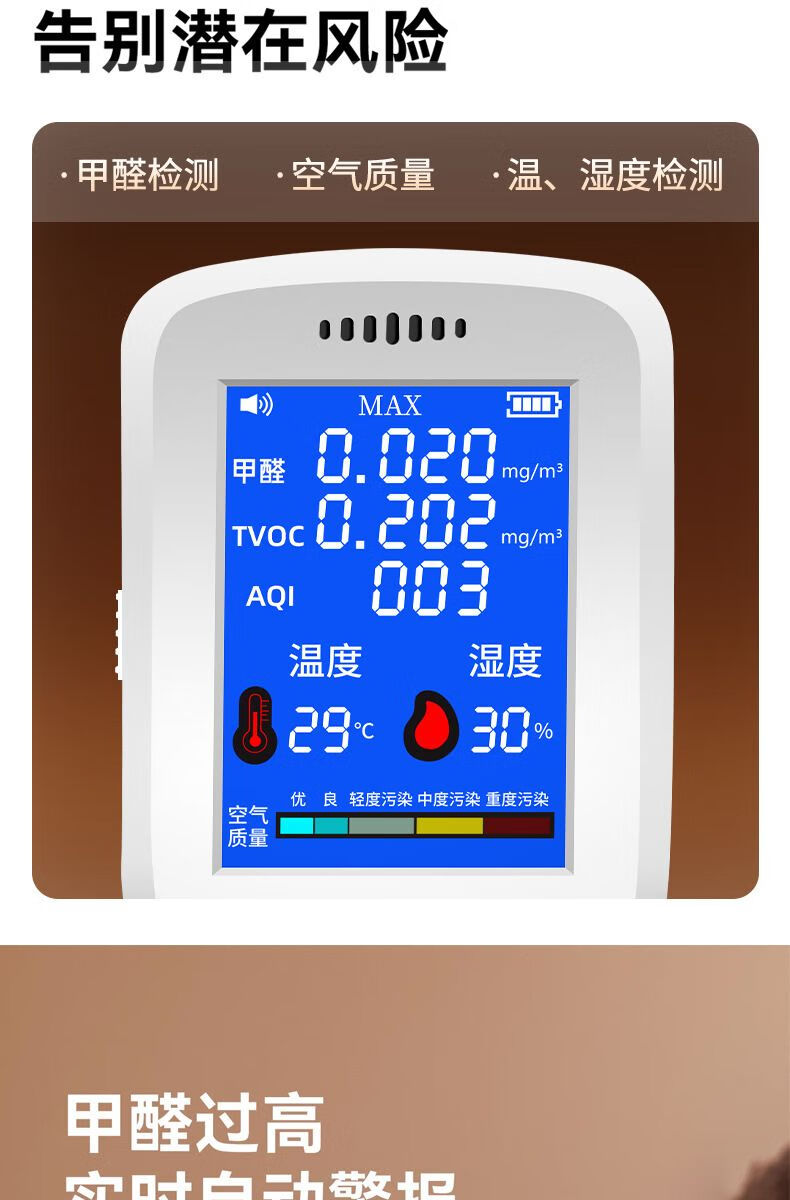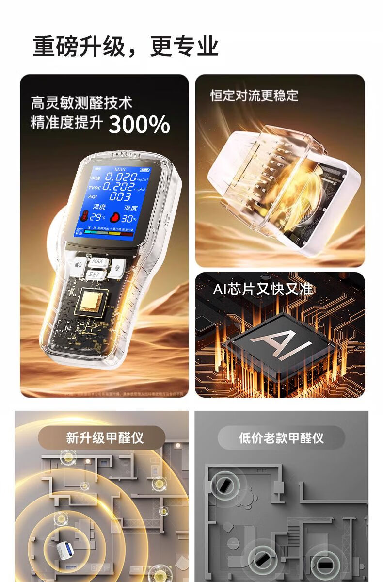 Shantou Lincun high-precision formaldehyde detector for home new house air quality self-test high-precision temperature and humidity detector rechargeable model