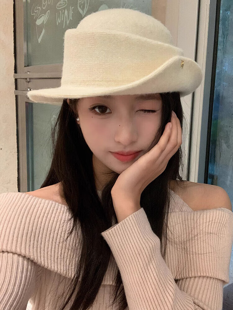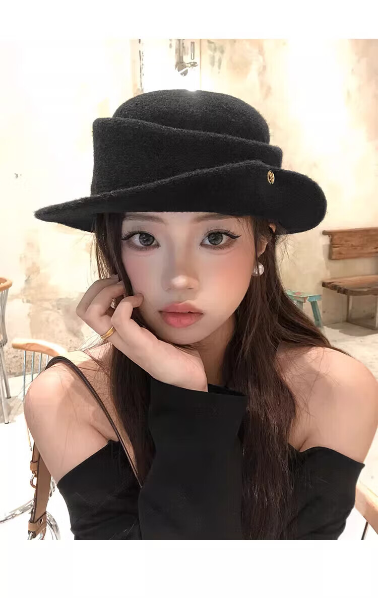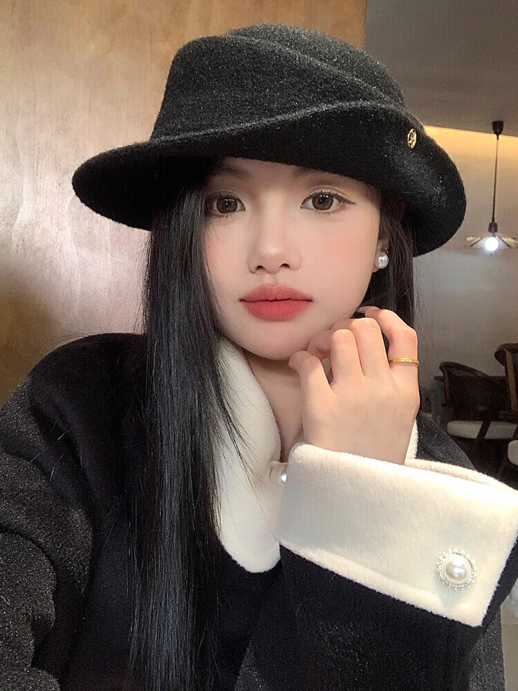 Yunpo Hepburn style hat black top hat female daughter style hat winter retro girls birthday gift box dome curling French daughter style curling black top hat