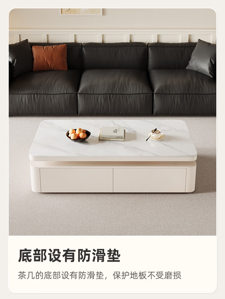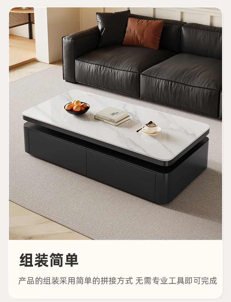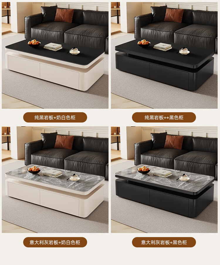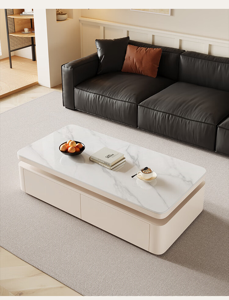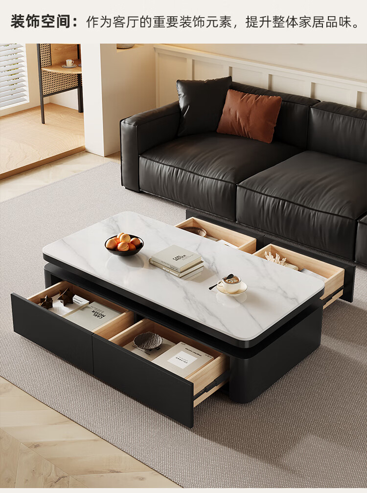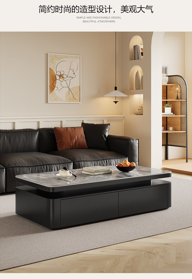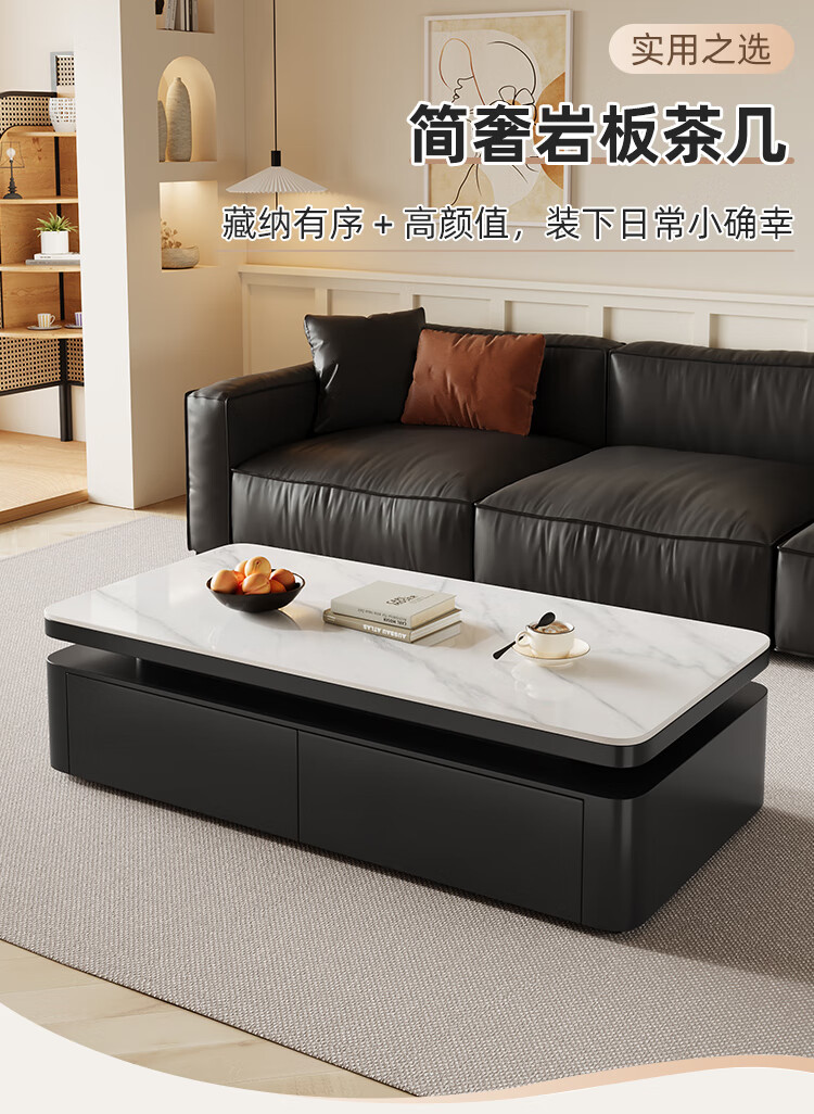 Hua Beisen slate coffee table living room household small apartment modern light luxury high-end rectangular table new high-end coffee table black cabinet 120CM snow mountain white slate