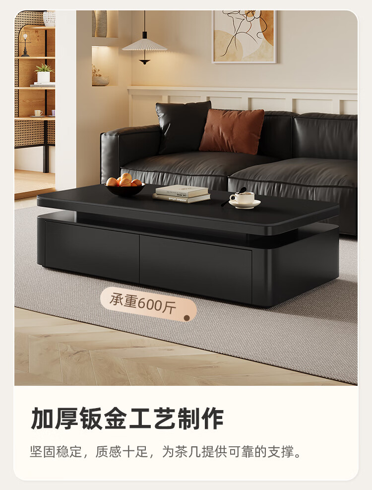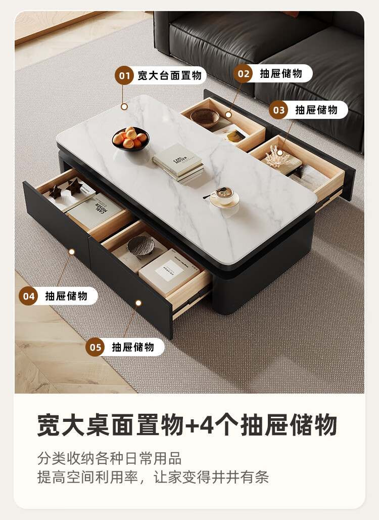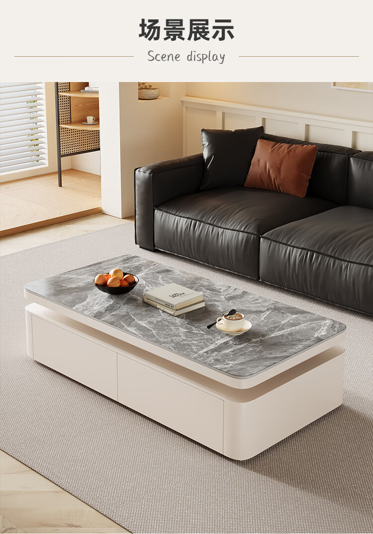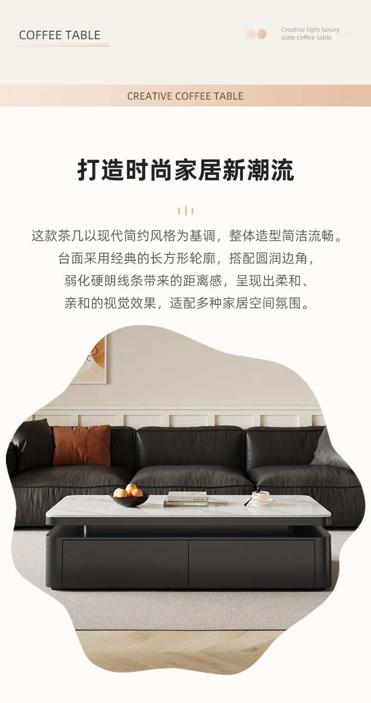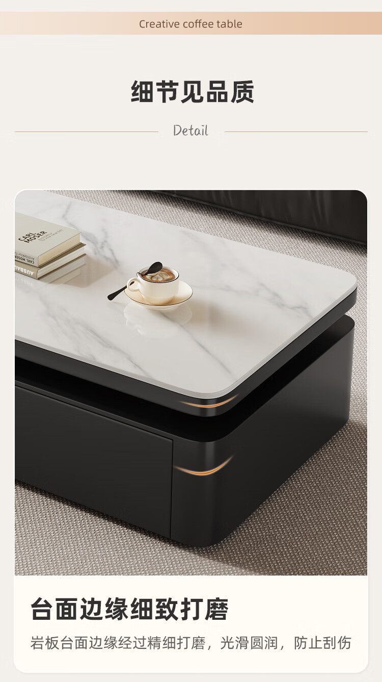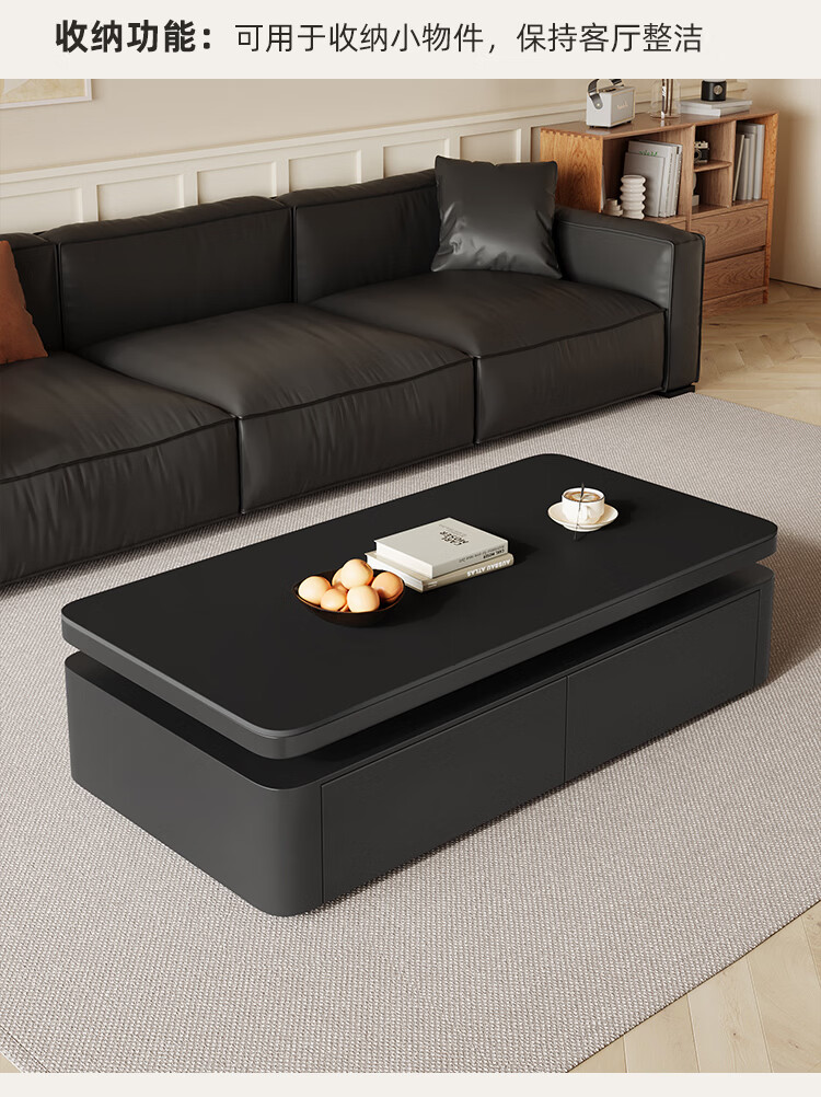 Hua Beisen slate coffee table living room household small apartment modern light luxury high-end rectangular table new high-end coffee table black cabinet 120CM snow mountain white slate