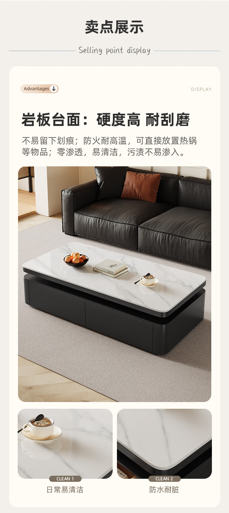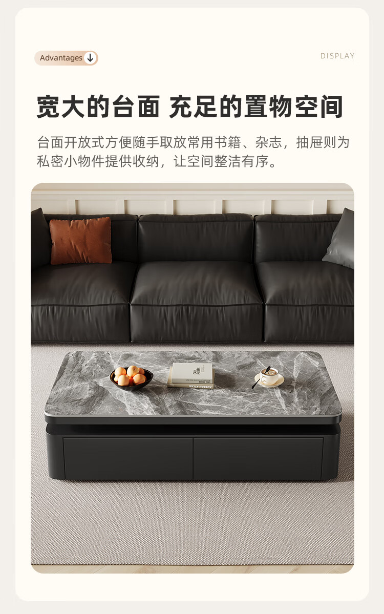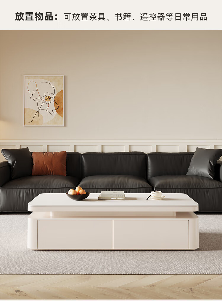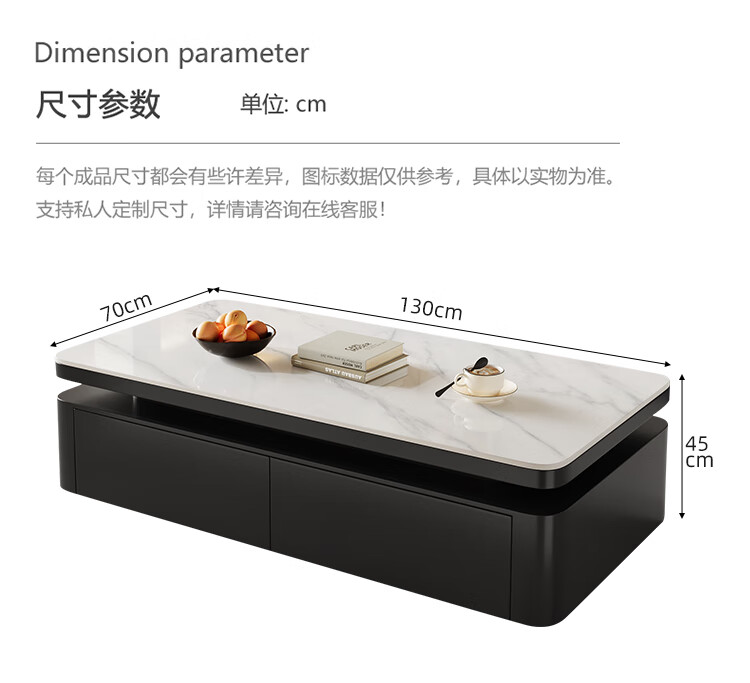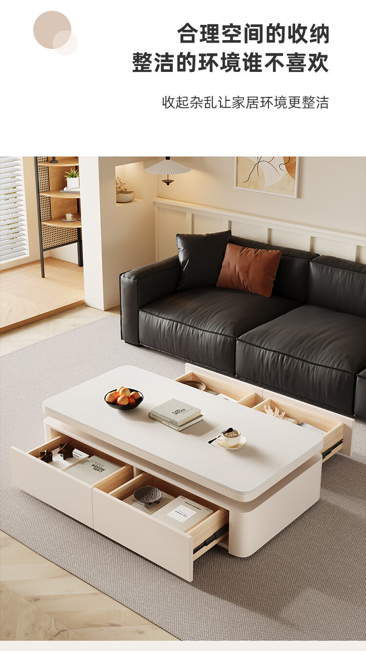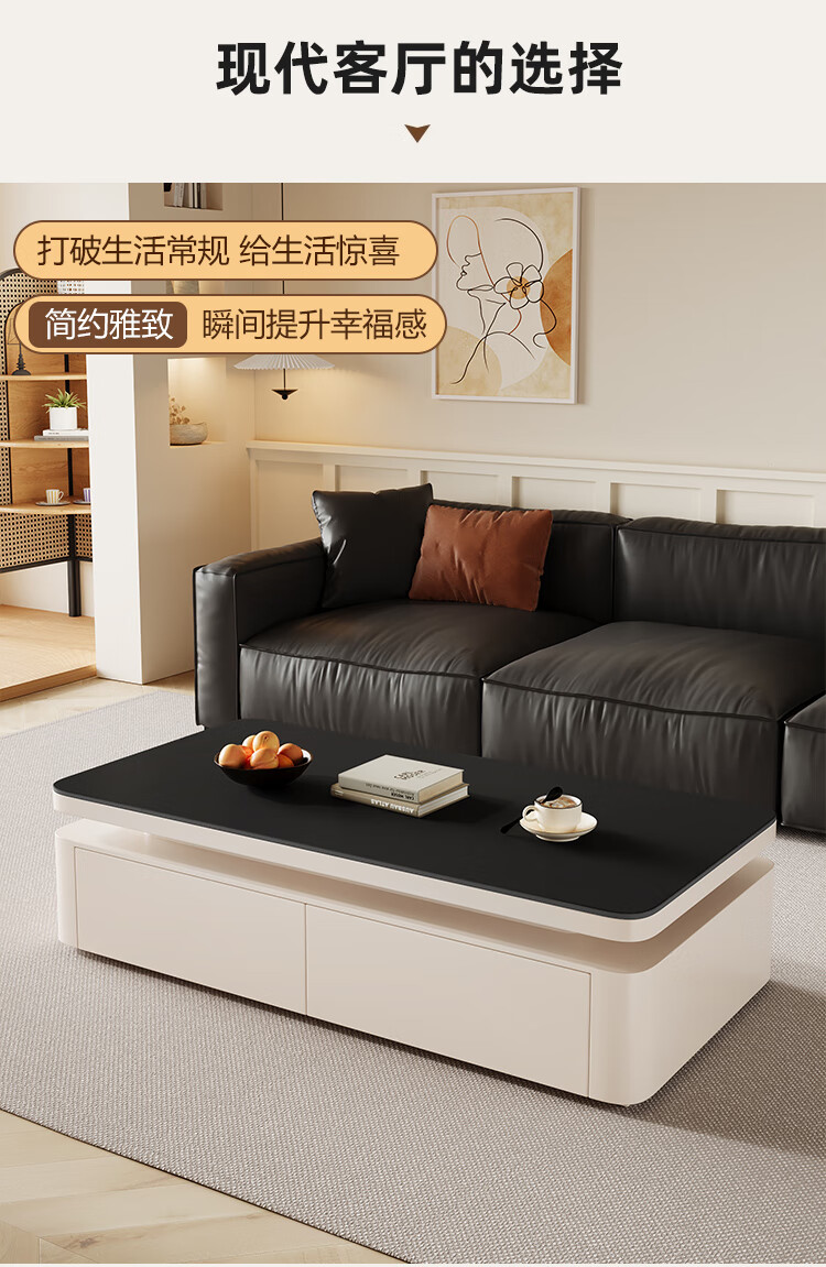 Hua Beisen slate coffee table living room household small apartment modern light luxury high-end rectangular table new high-end coffee table black cabinet 120CM snow mountain white slate