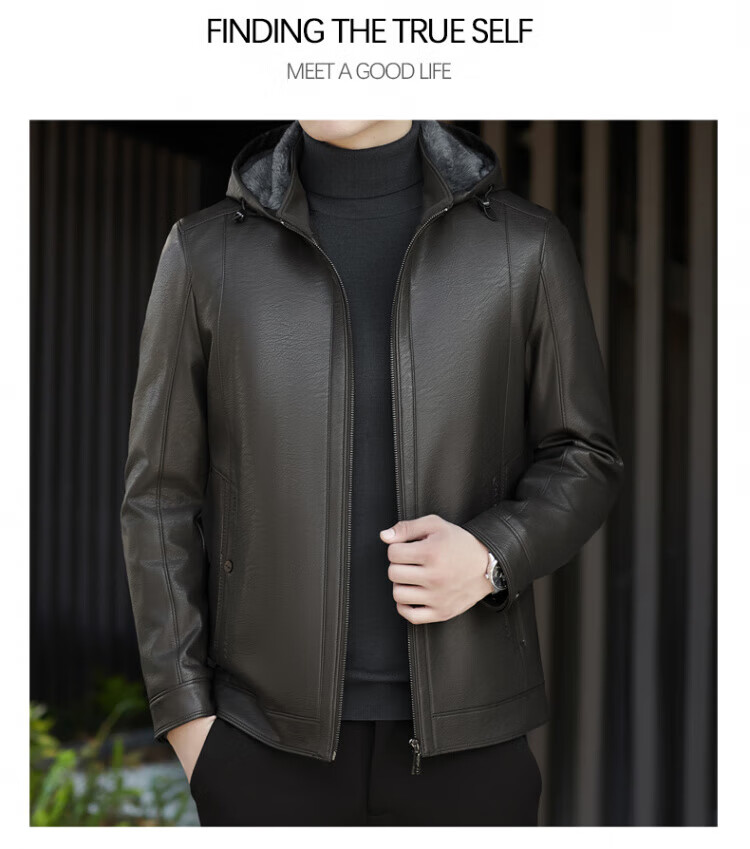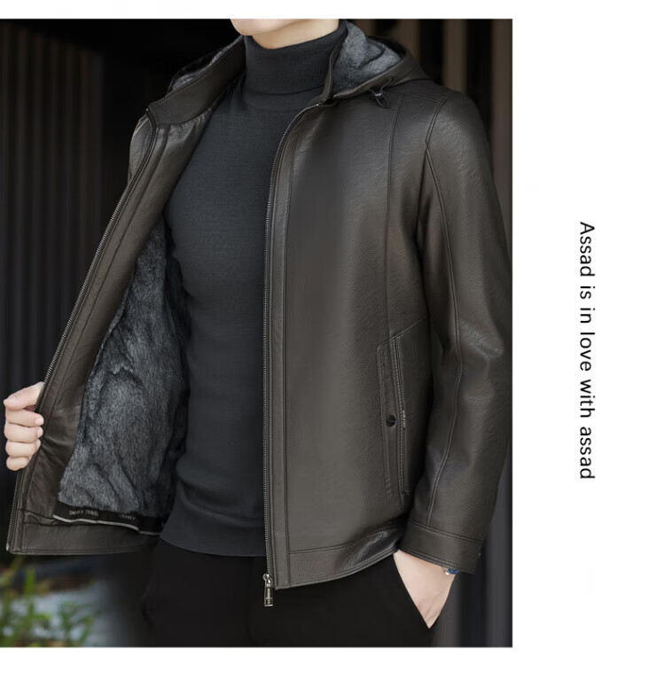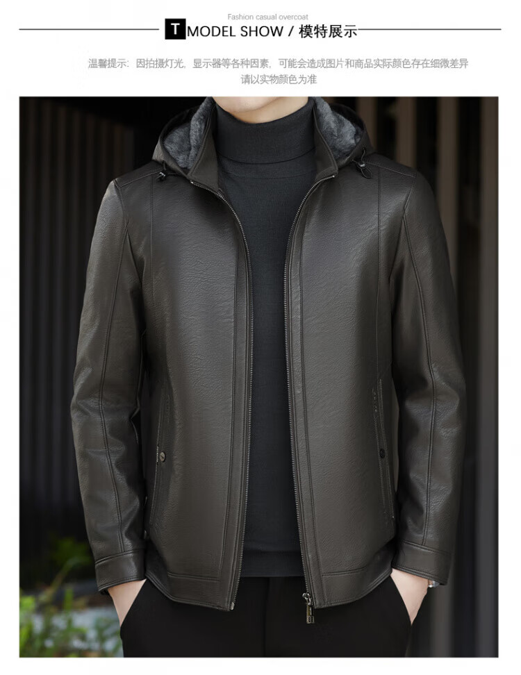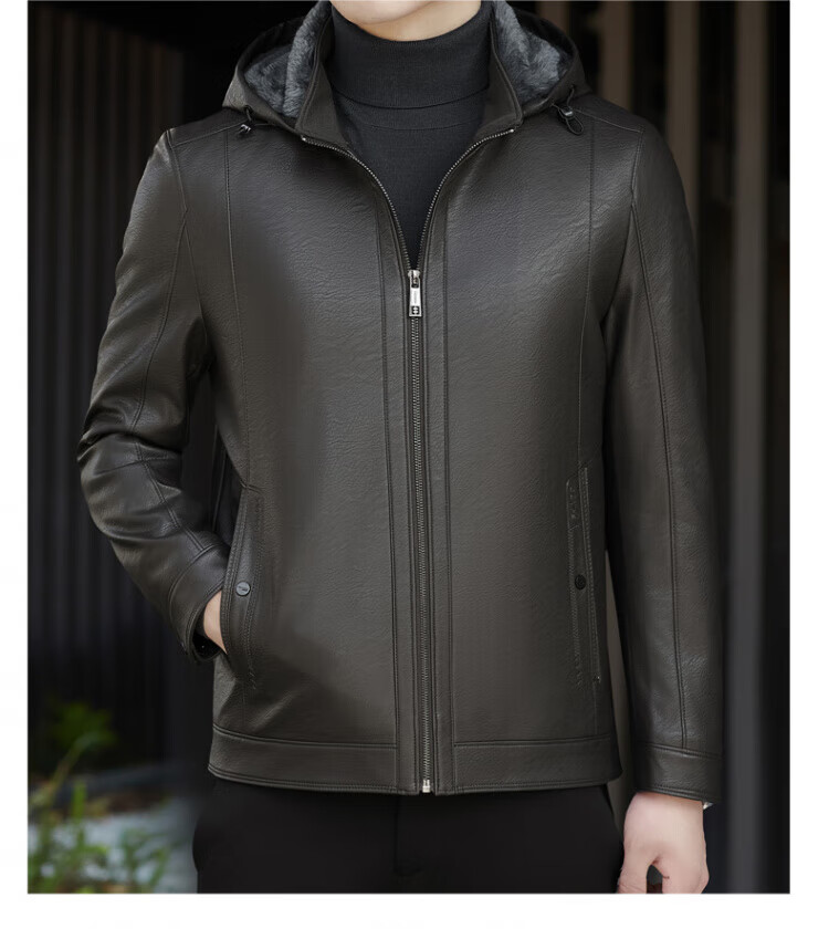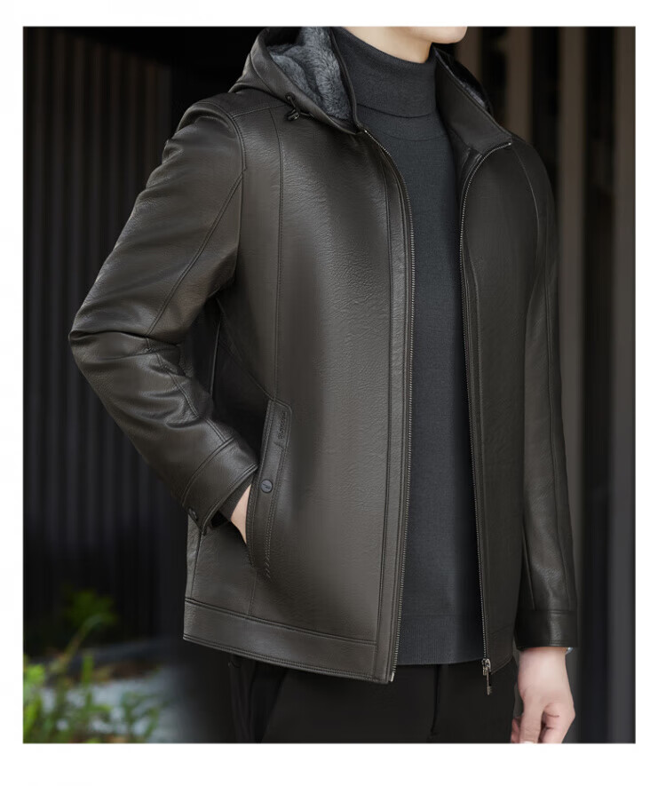 ROMON giant thick velvet detachable hood leather jacket for men in autumn and winter business casual high-end jacket dad wear cold and warm jacket brown XL / recommended 140-160Jin Jin equals 0.5 kg