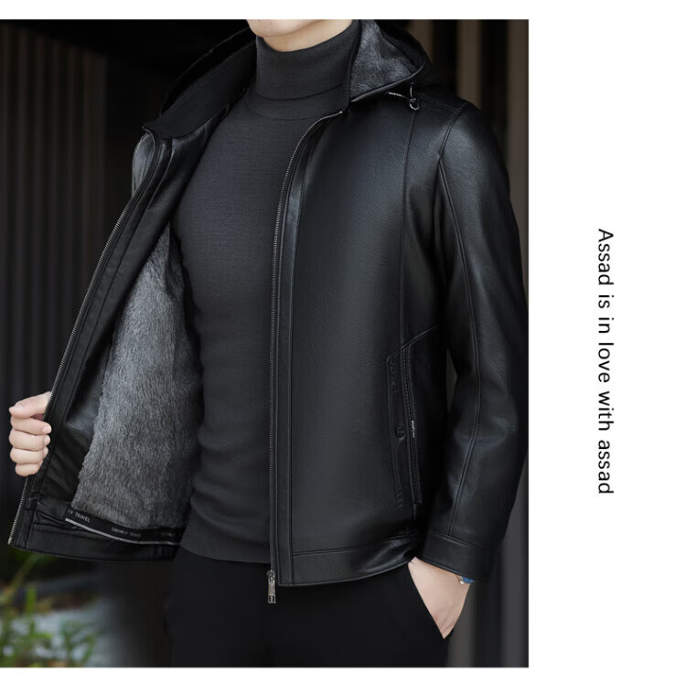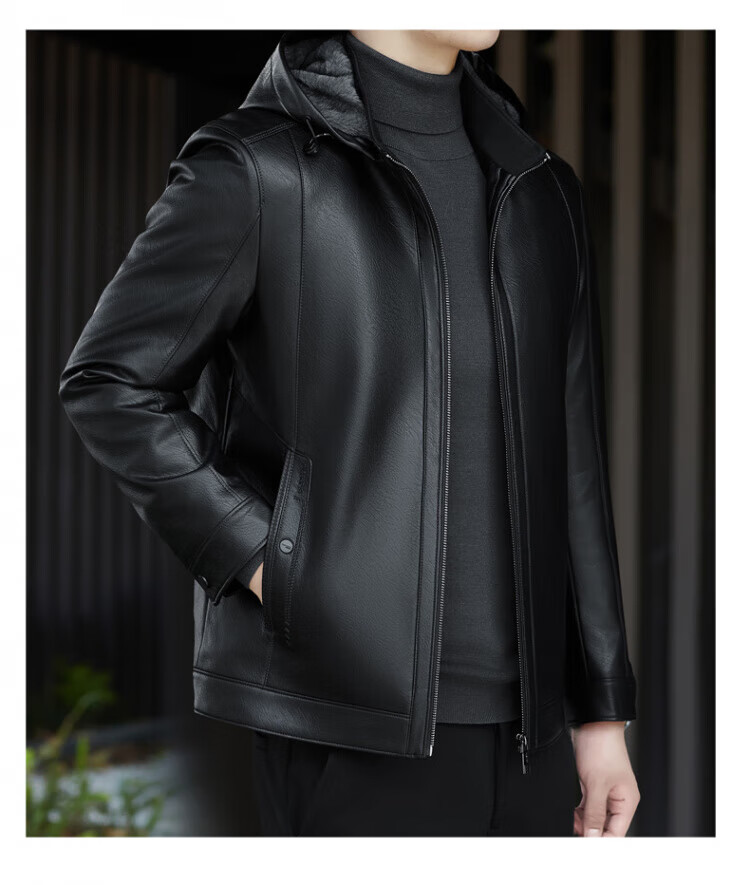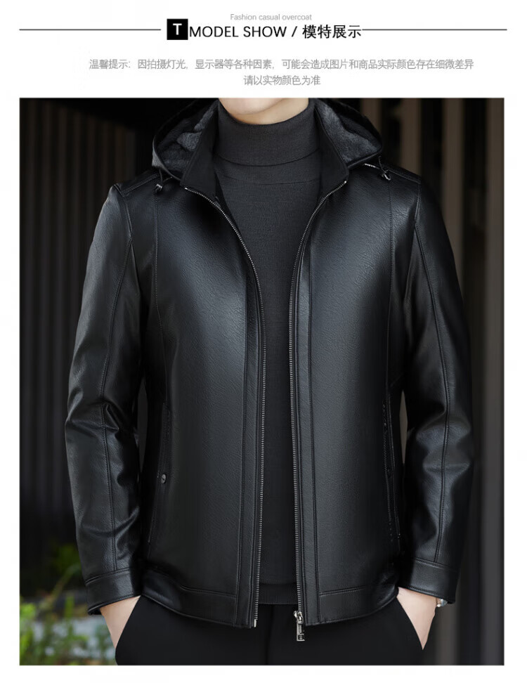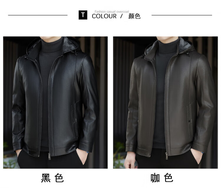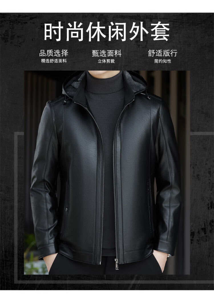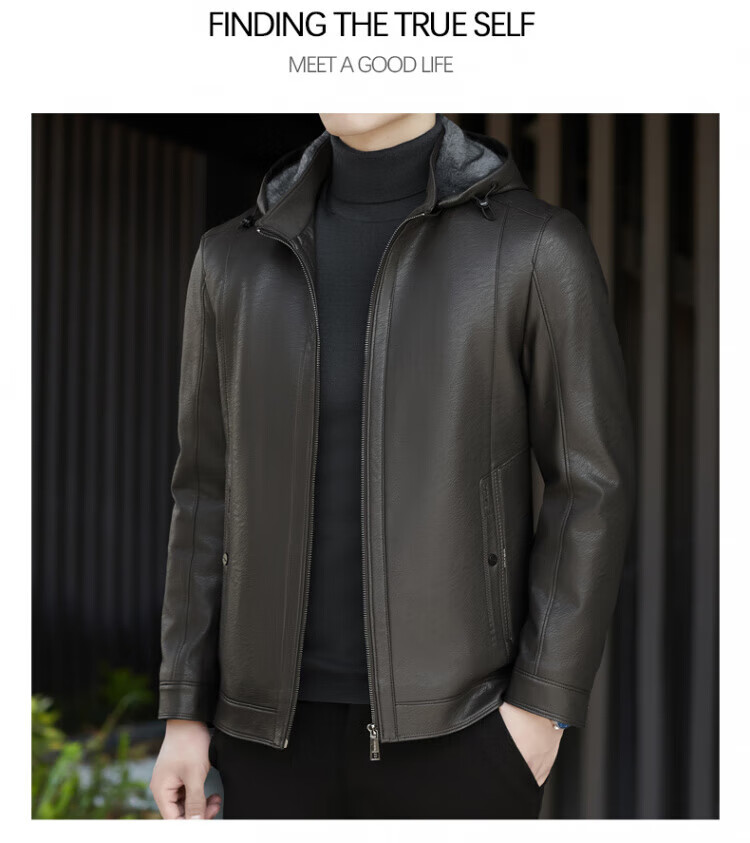 ROMON giant thick velvet detachable hood leather jacket for men in autumn and winter business casual high-end jacket dad wear cold and warm jacket brown XL / recommended 140-160Jin Jin equals 0.5 kg