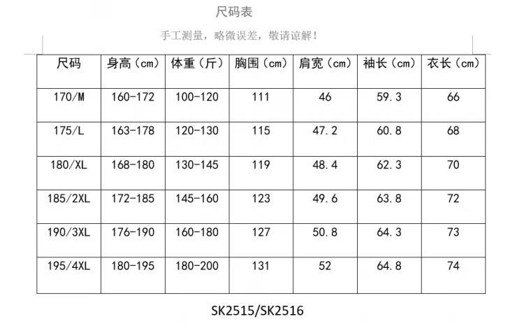 China (cm) 165 / 88-90 170 / 96-98 175 / 108-110 180 / 118-122 185 / 126-130