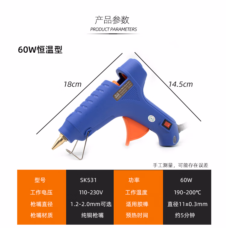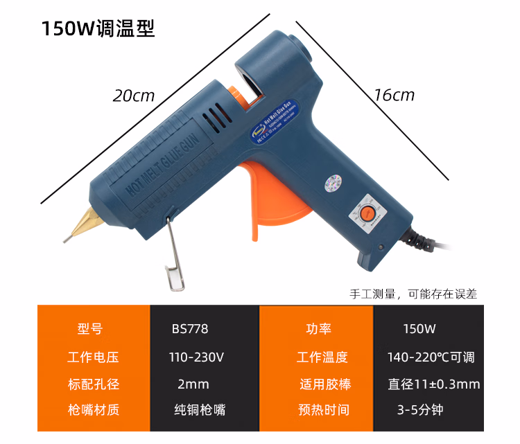 Fine hole hot melt glue gun 60W 150W manual glue gun 1mm small hole fine dispensing 11mm glue stick small mouth glue gun 1 150W temperature adjustment (1mm aperture) mouth with glue stick