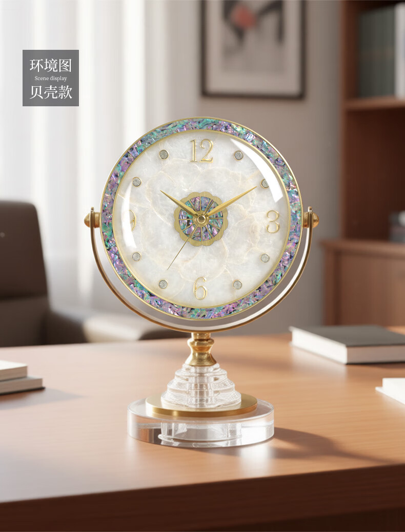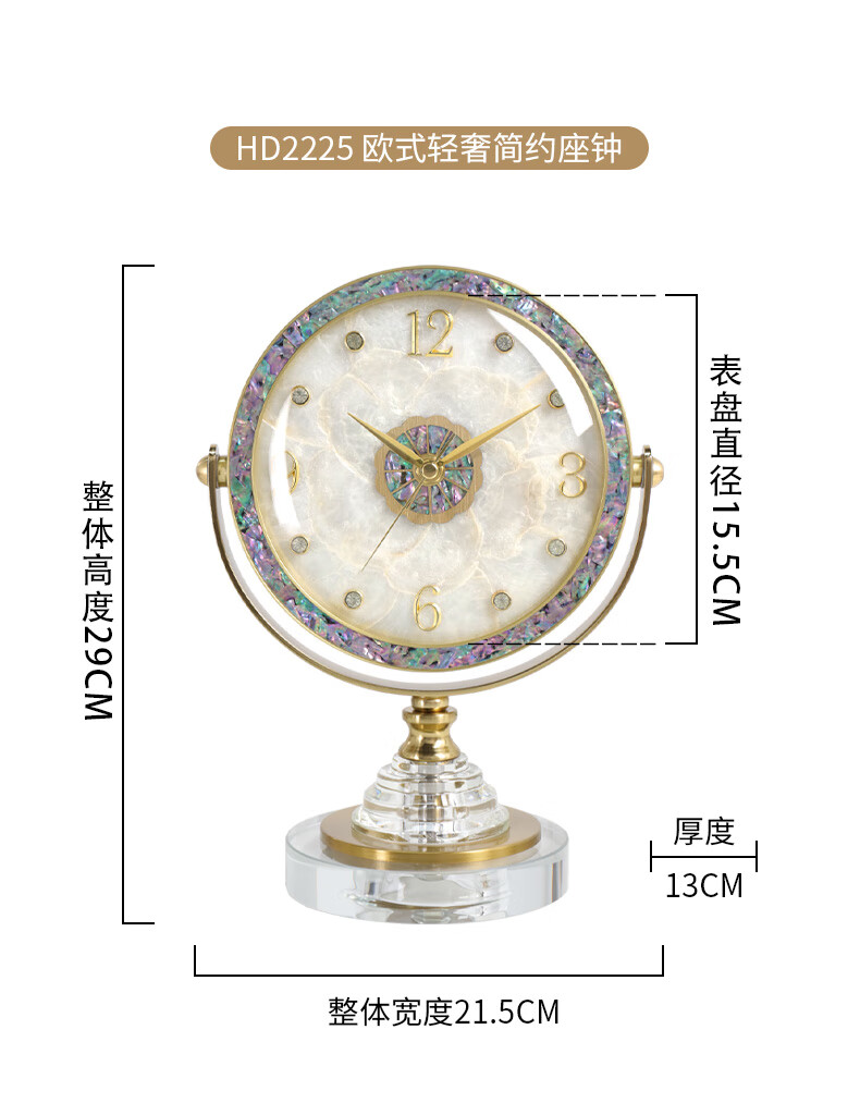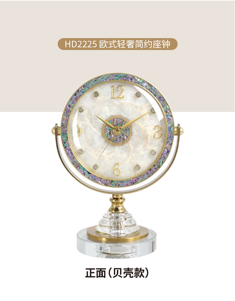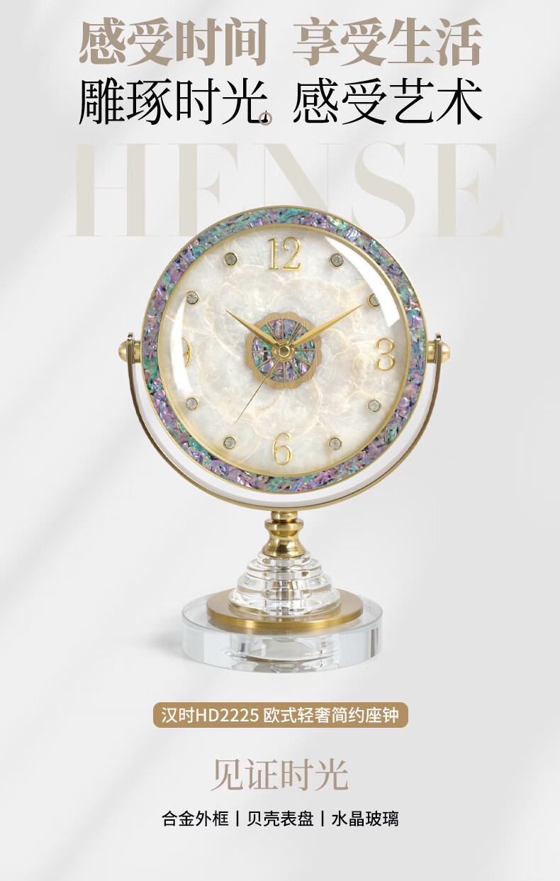 Hanshi (Hense) European light luxury living room table clock desktop high-end clock alloy table clock TV cabinet quartz clock HD2225 shell plate + abalone shell