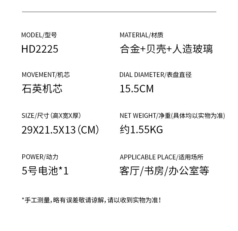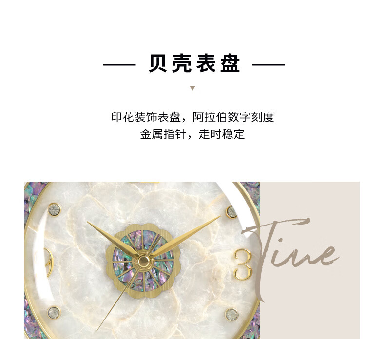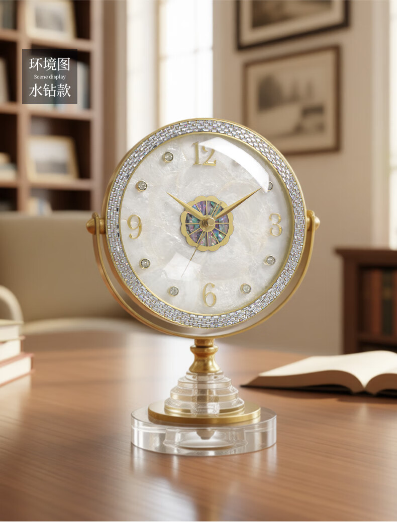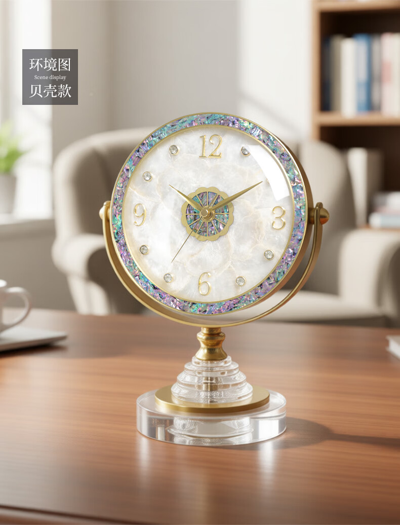 Hanshi (Hense) European light luxury living room table clock desktop high-end clock alloy table clock TV cabinet quartz clock HD2225 shell plate + abalone shell