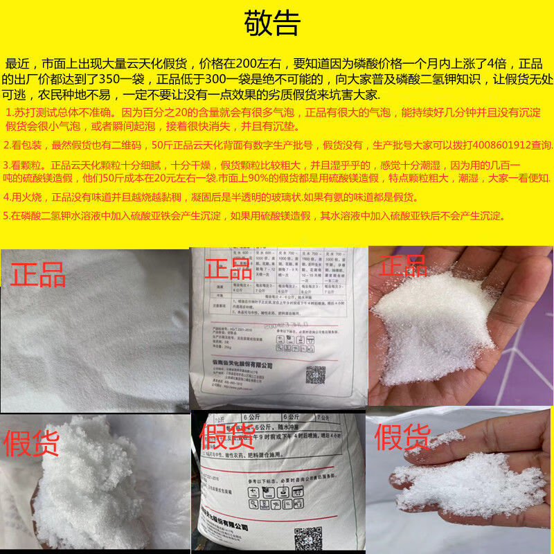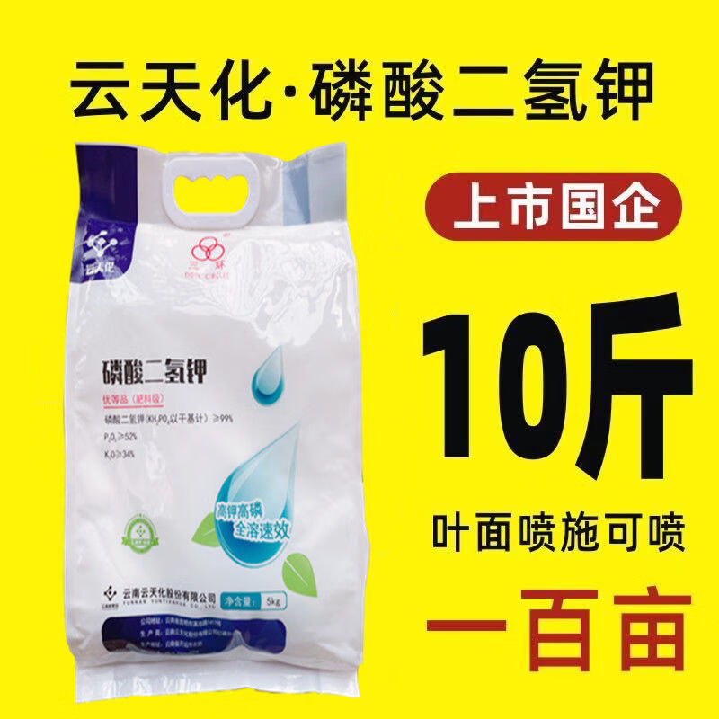 Yuntianhua Potassium Dihydrogen Phosphate High Purity 99 Foliar Fertilizer Agricultural Potassium Dihydrogen Phosphate Phosphorus Potassium Fertilizer Water-soluble Fertilizer Potassium Fertilizer SN5040 Yuntianhua Premium Product 50Jin Jin is equal to 0.5 kg, a whole bag