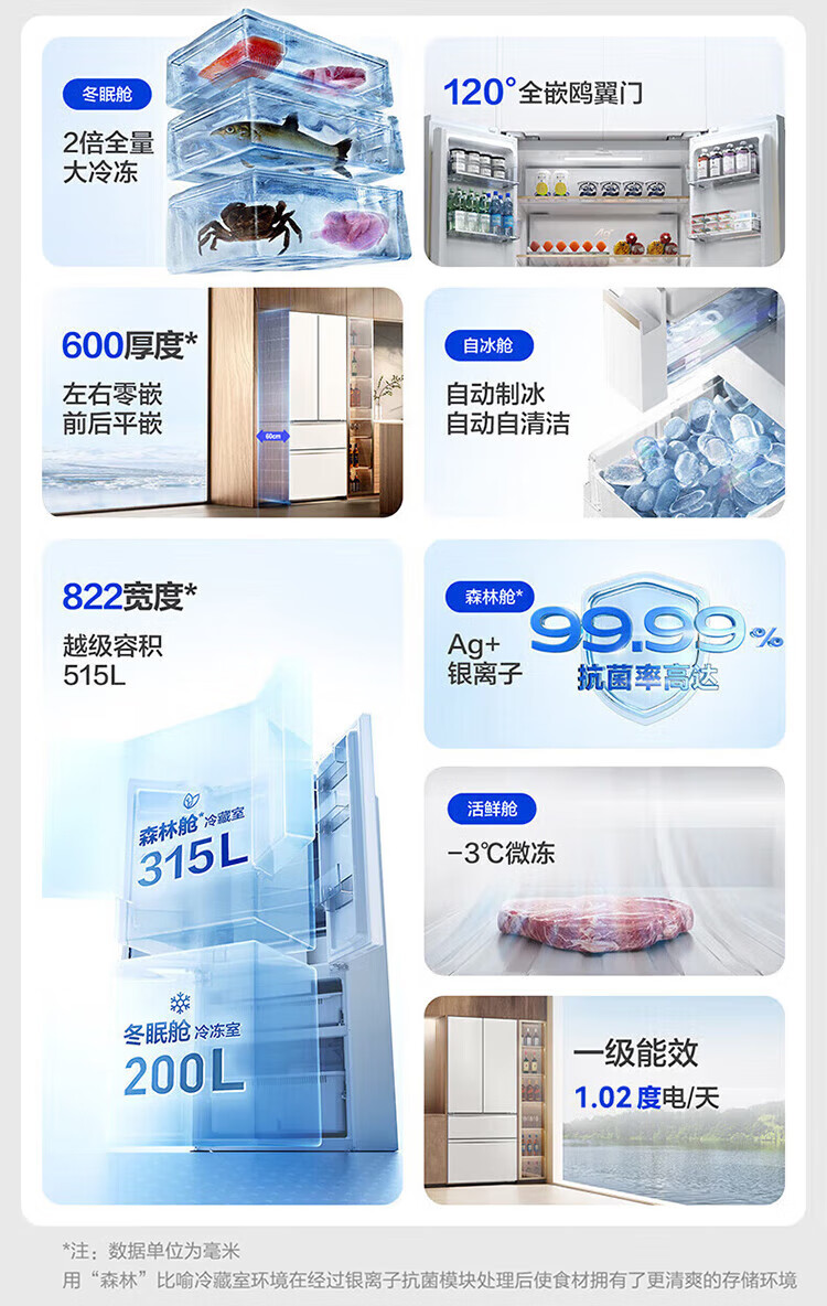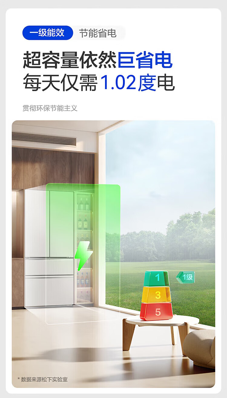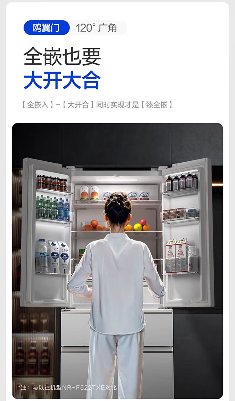 Panasonic's new subsidy Big Seal series refrigerator 515L large capacity ultra-thin zero-embedded multi-door French refrigerator automatic ice making air-cooled frost-free micro-freezing freshness ED52WPA Spring Snow White 515L automatic cleaning ice making ED52WPA