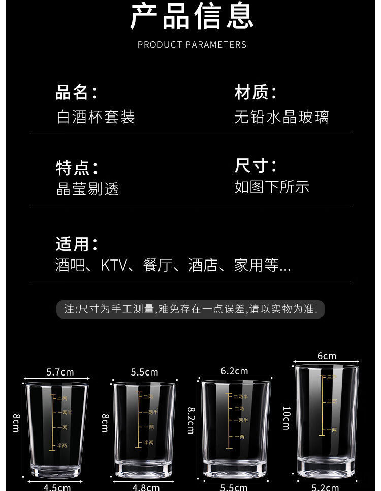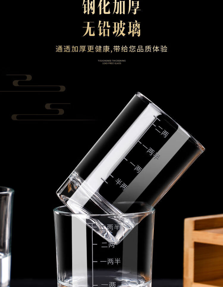Huaxing tempered glass cup tempered glass 2 liang white wine glass with scale 2 liang glass wine glass large wine set spirit cup gold 2 liang half scale cup 12 pieces
