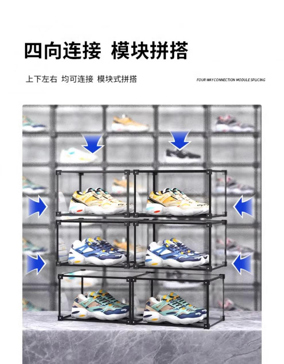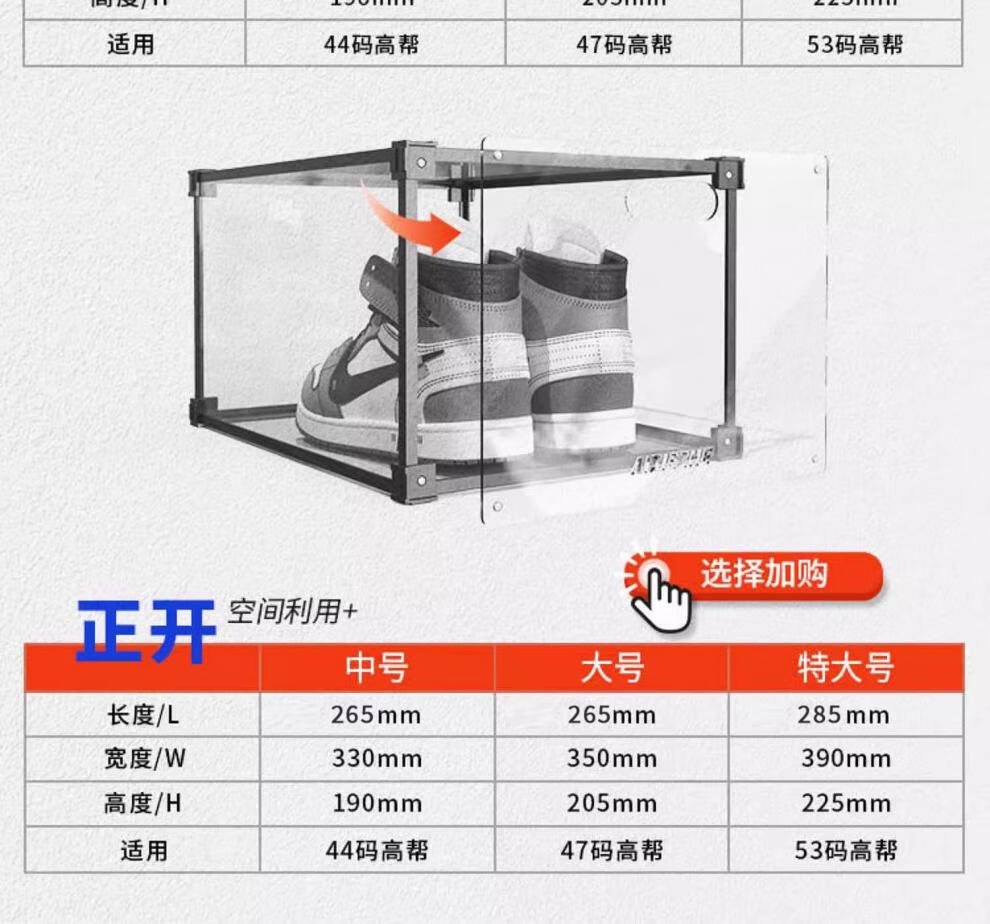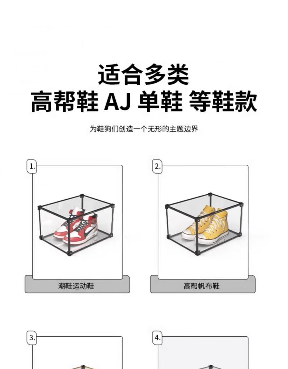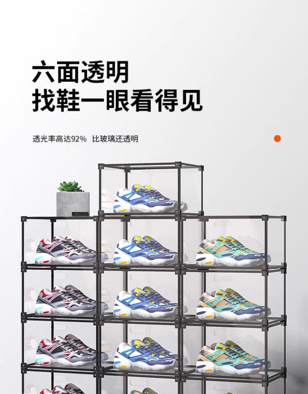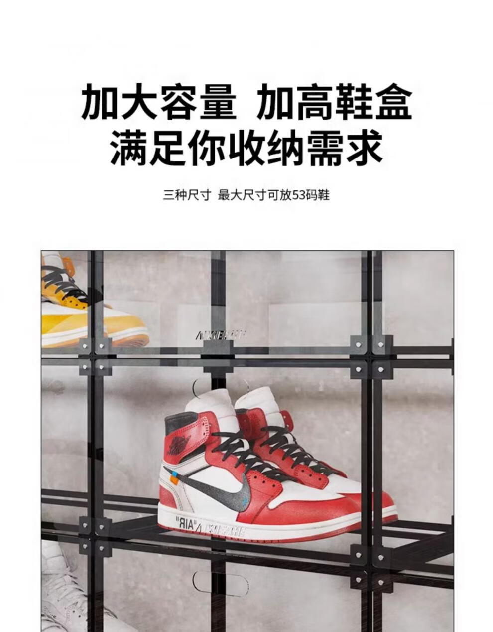 Shoe cabinet fully see-through transparent acrylic shoe box shoe wall display cabinet a sneaker storage box j internet celebrity shoe rack collection side classic black 8 pieces 325x270x190mm