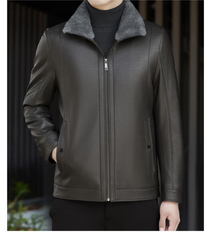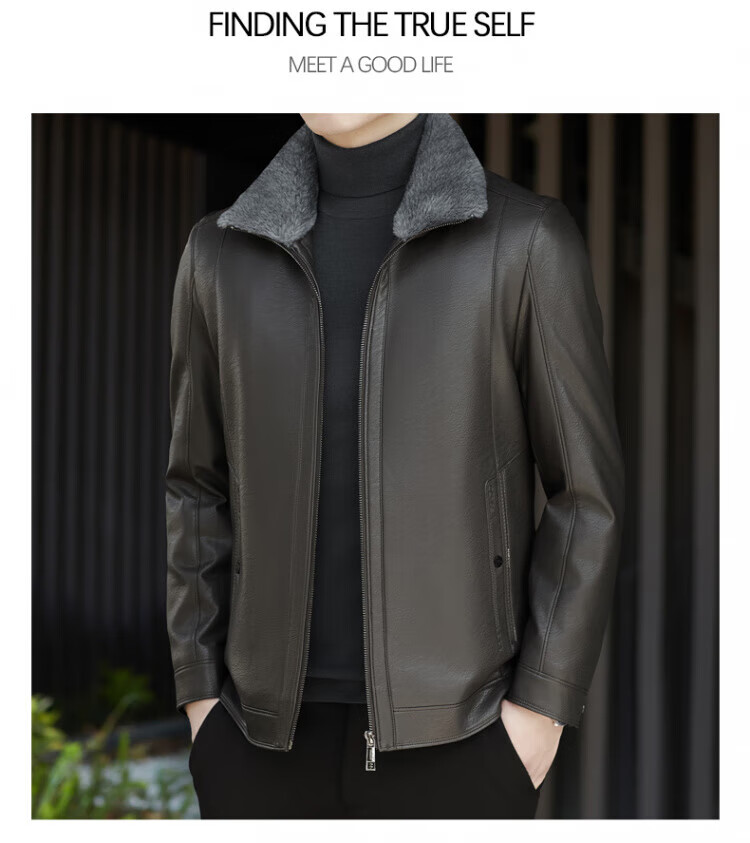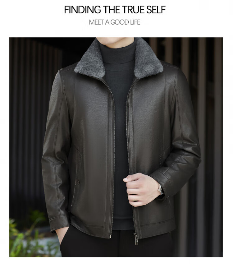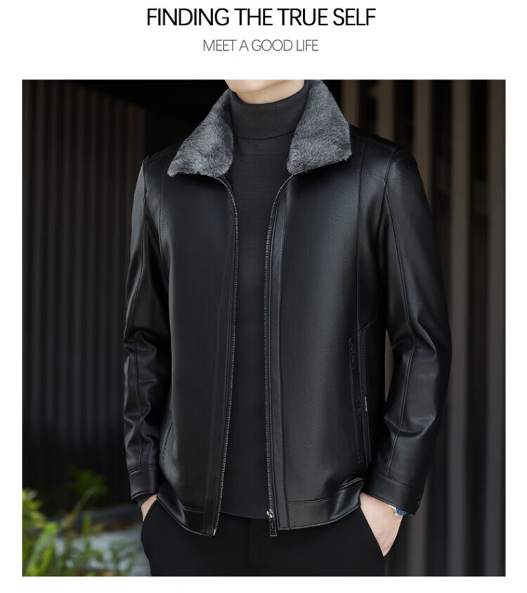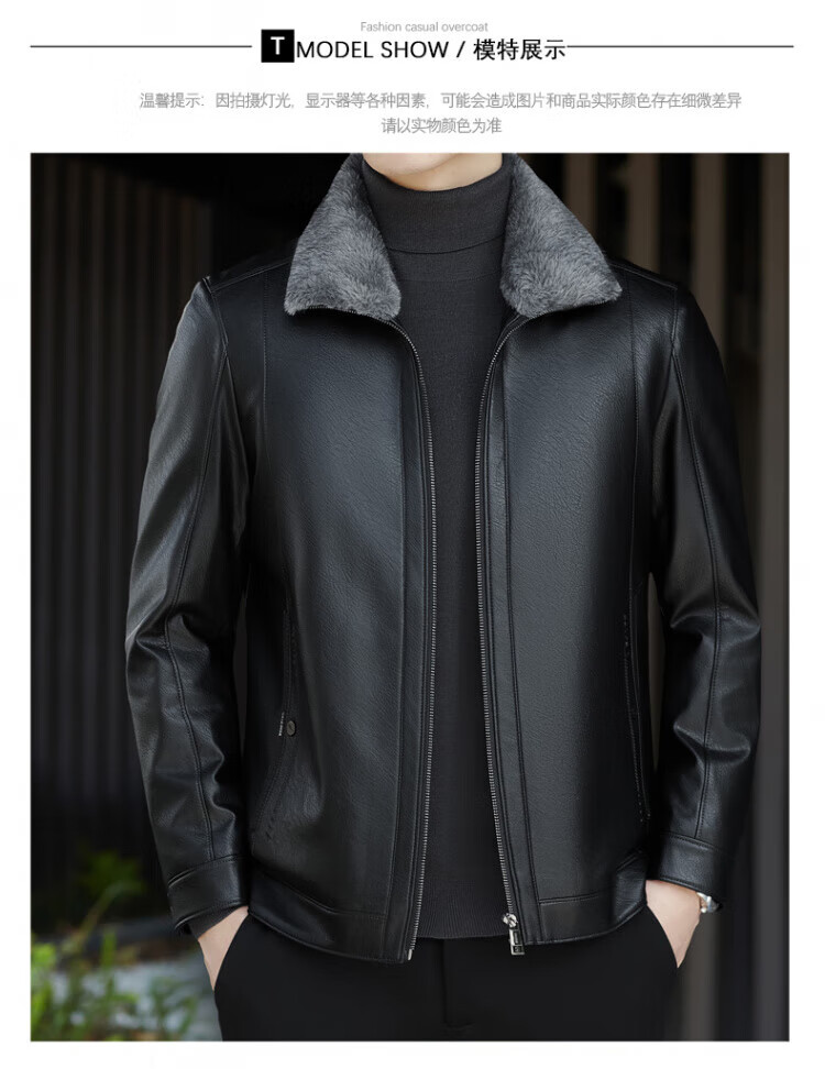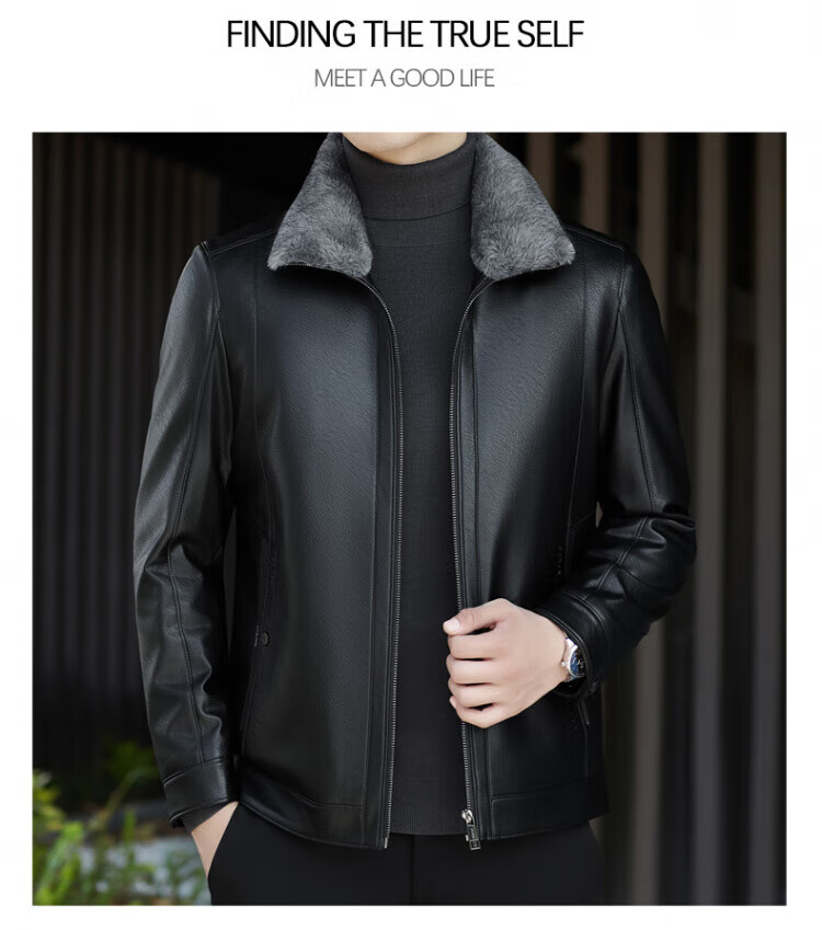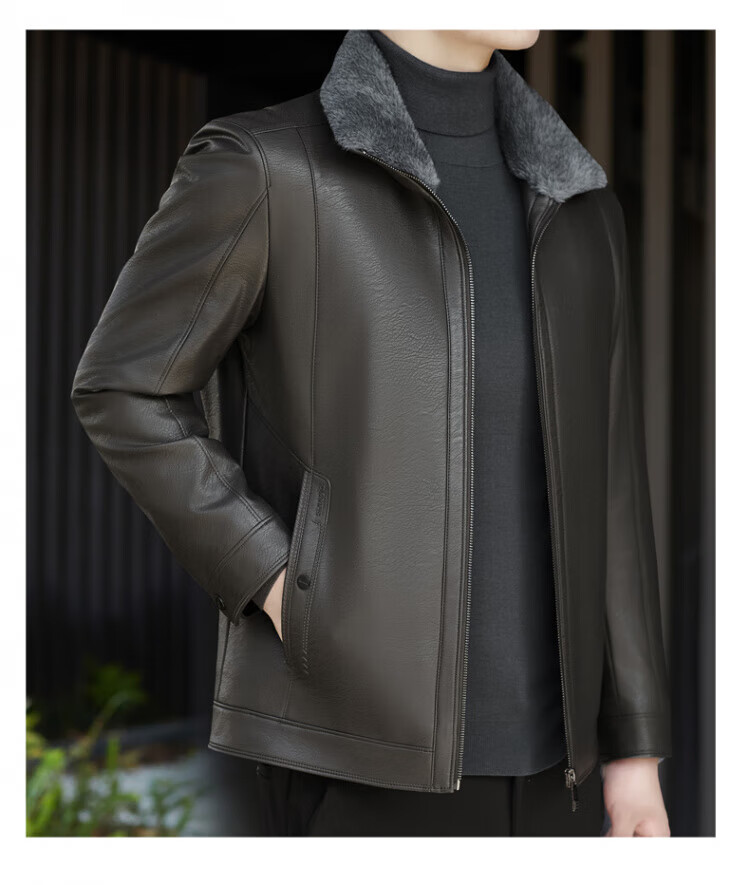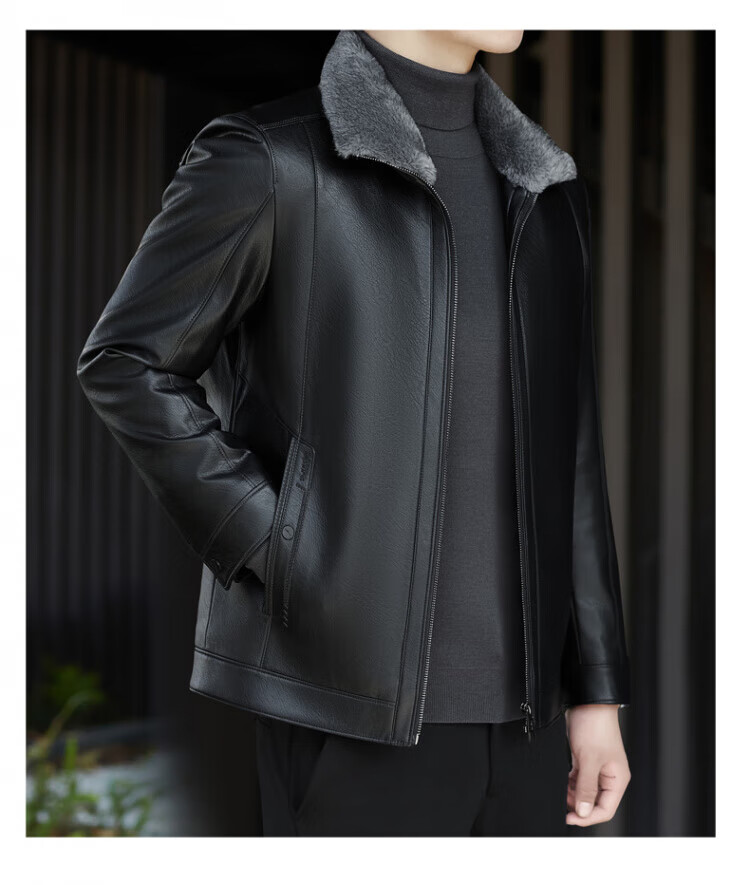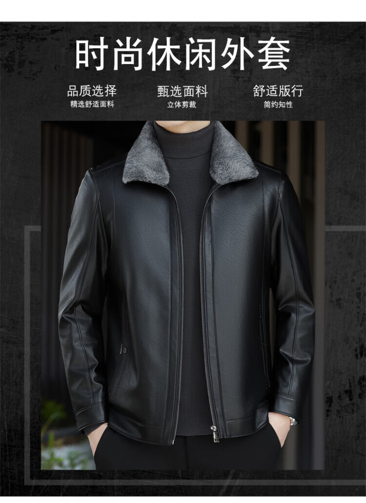 ROMON fur integrated velvet thickened leather jacket for men in autumn and winter heat storage and cold-resistant jacket for middle-aged and young people high-end casual jacket black XL / recommended 135-150Jin Jin is equal to 0.5 kg