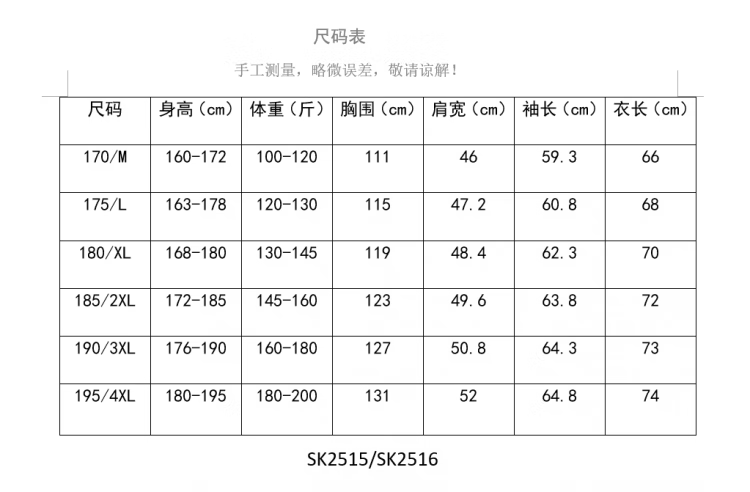 China (cm) 165 / 88-90 170 / 96-98 175 / 108-110 180 / 118-122 185 / 126-130