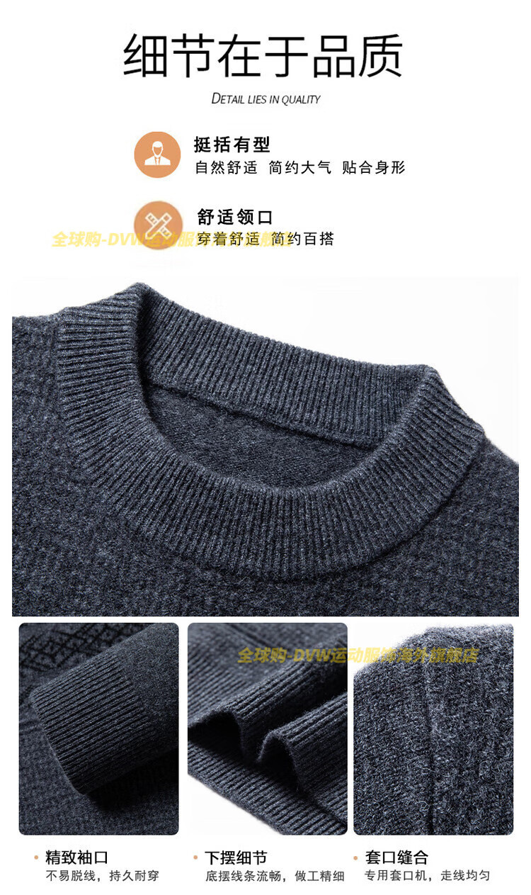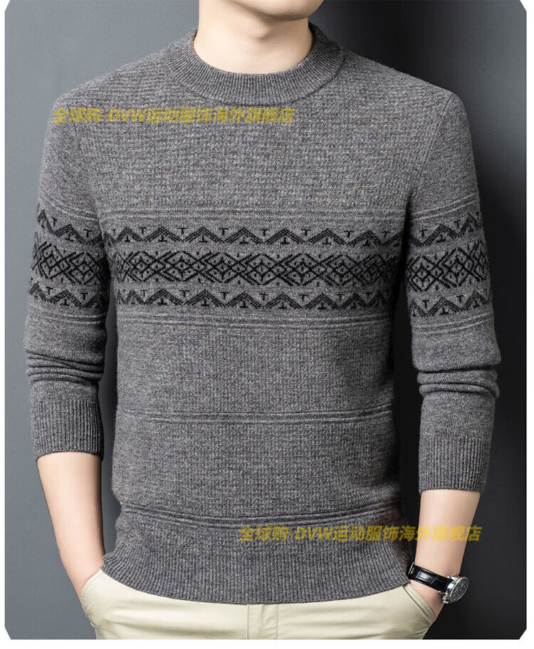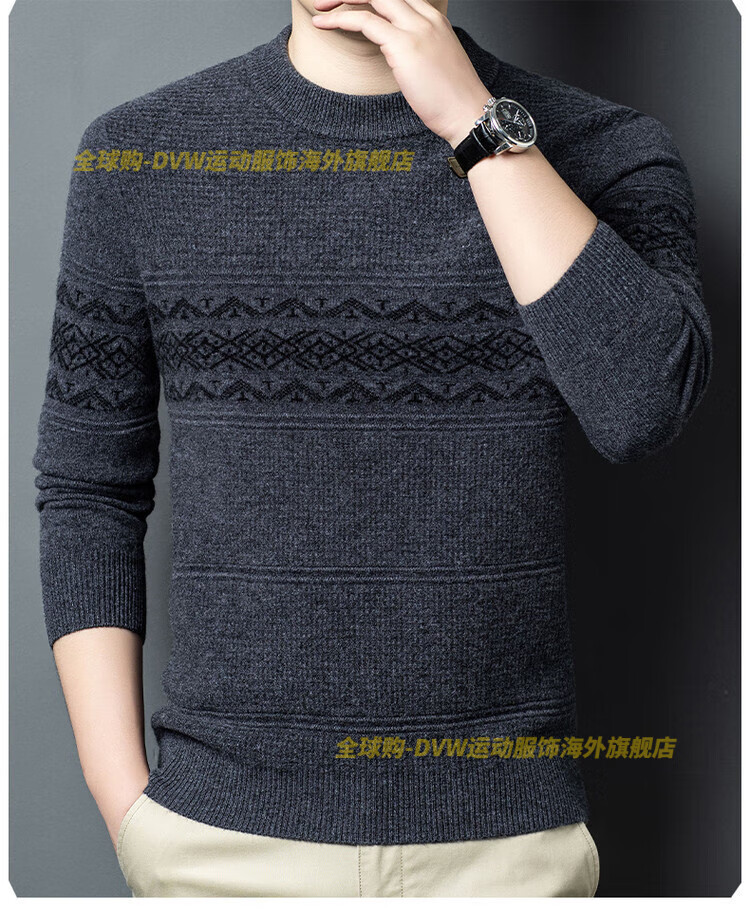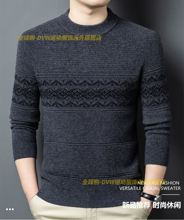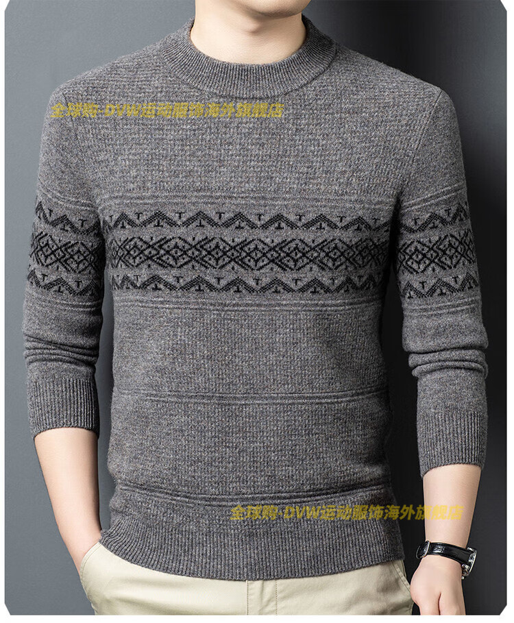 DVW international brand men's wool sweater winter new round neck thickened warm pure wool loose casual bottoming sweater high-end gray M 165 suitable for 90-110 Jin Jin equals 0.5 kg