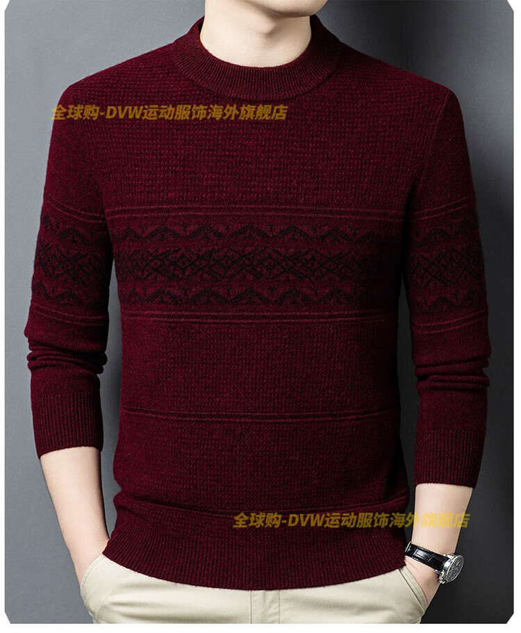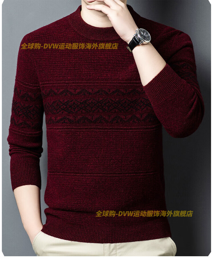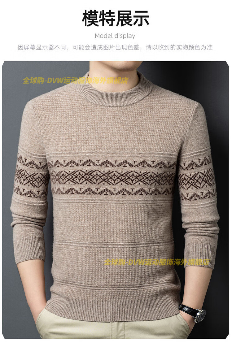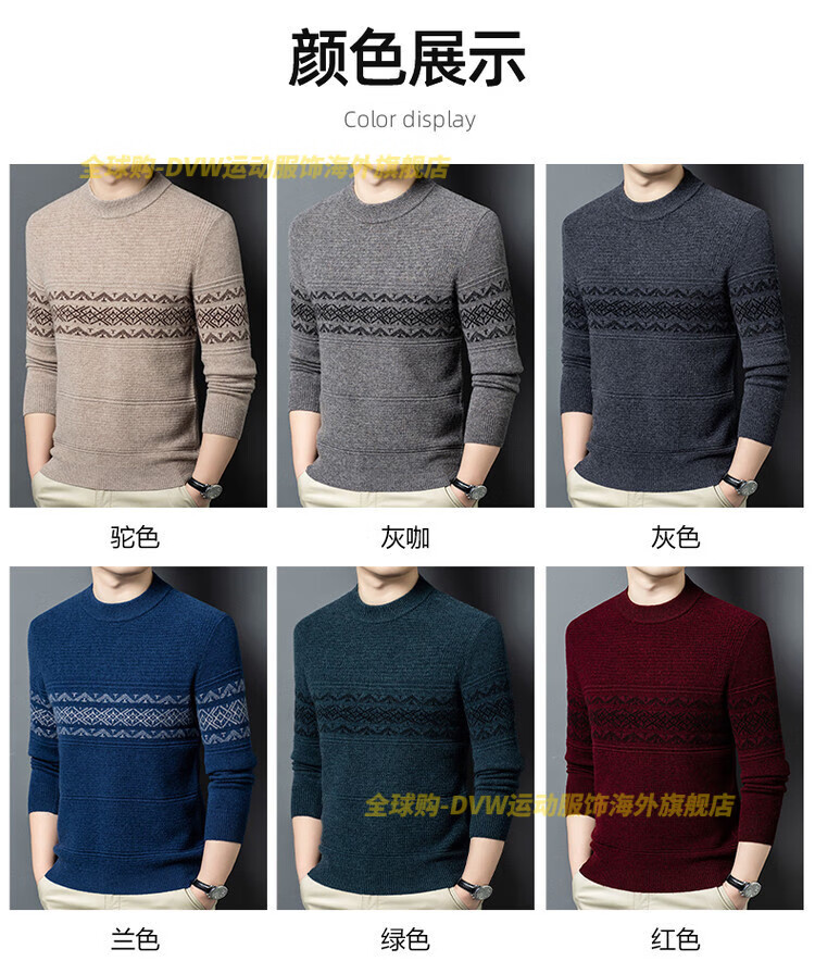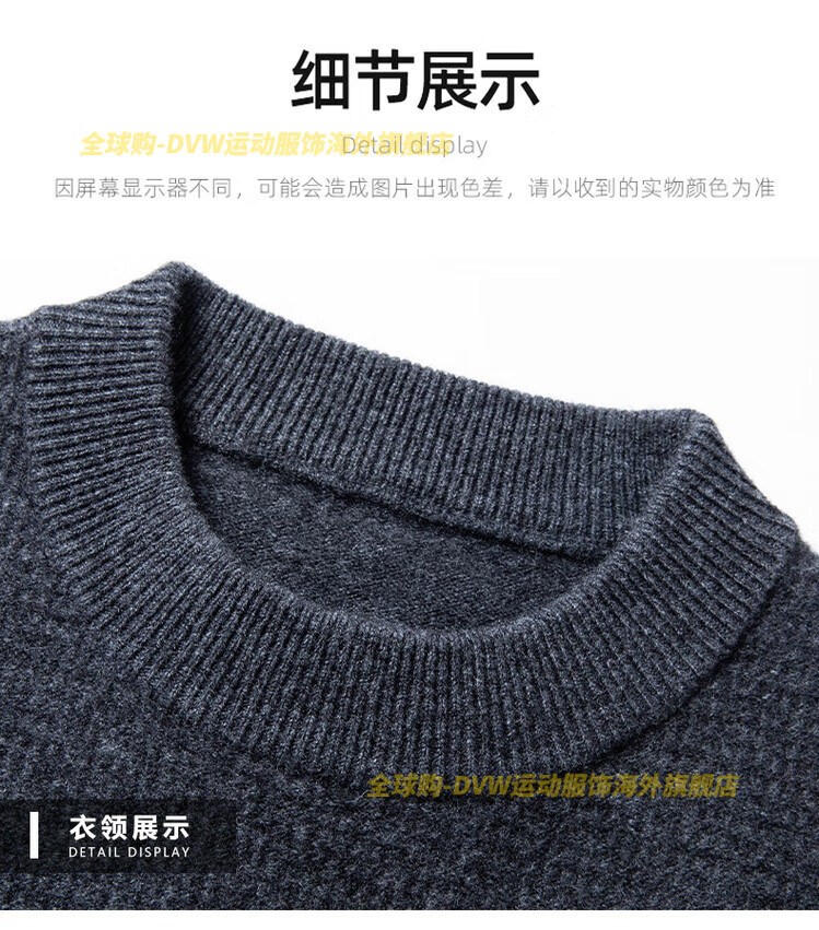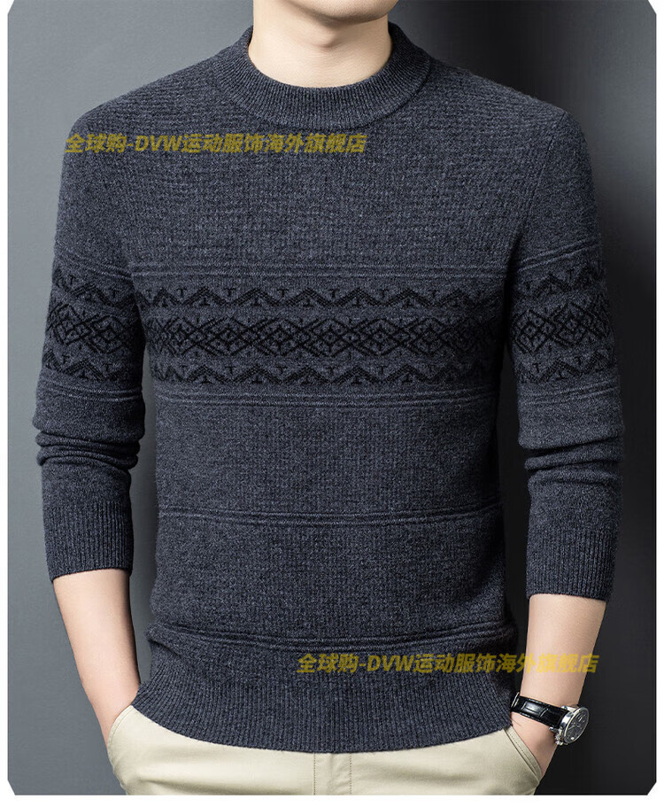 DVW international brand men's wool sweater winter new round neck thickened warm pure wool loose casual bottoming sweater high-end gray M 165 suitable for 90-110 Jin Jin equals 0.5 kg