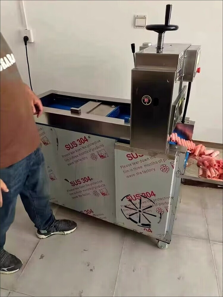 Yonghuan CNC beef and mutton slicer cutting and rolling machine commercial fully automatic pork belly fat beef frozen meat donkey hide gelatin rice cake slicing machine CNC double roll - single screw - affordable and durable version