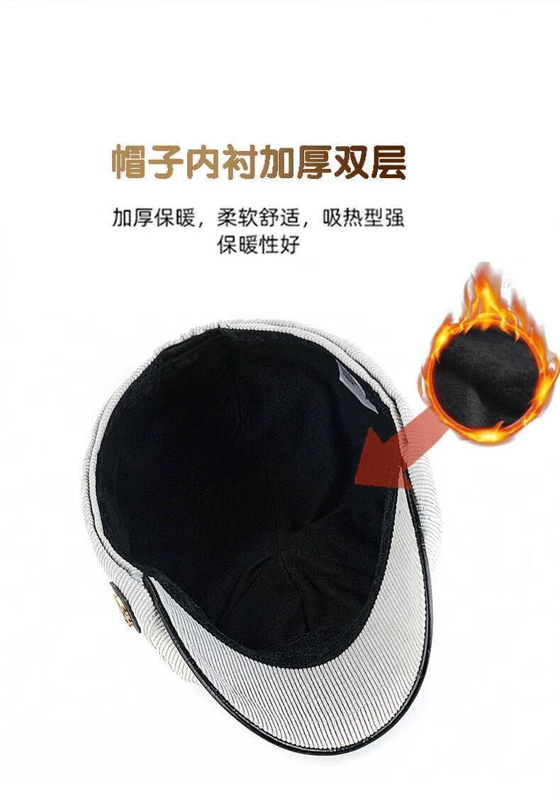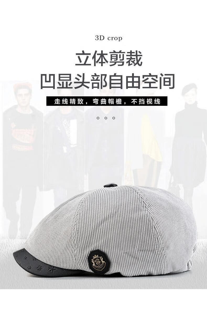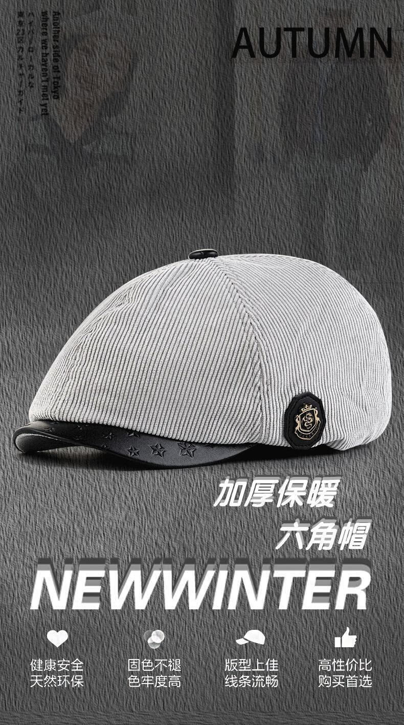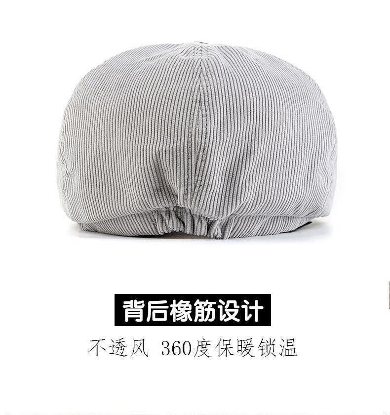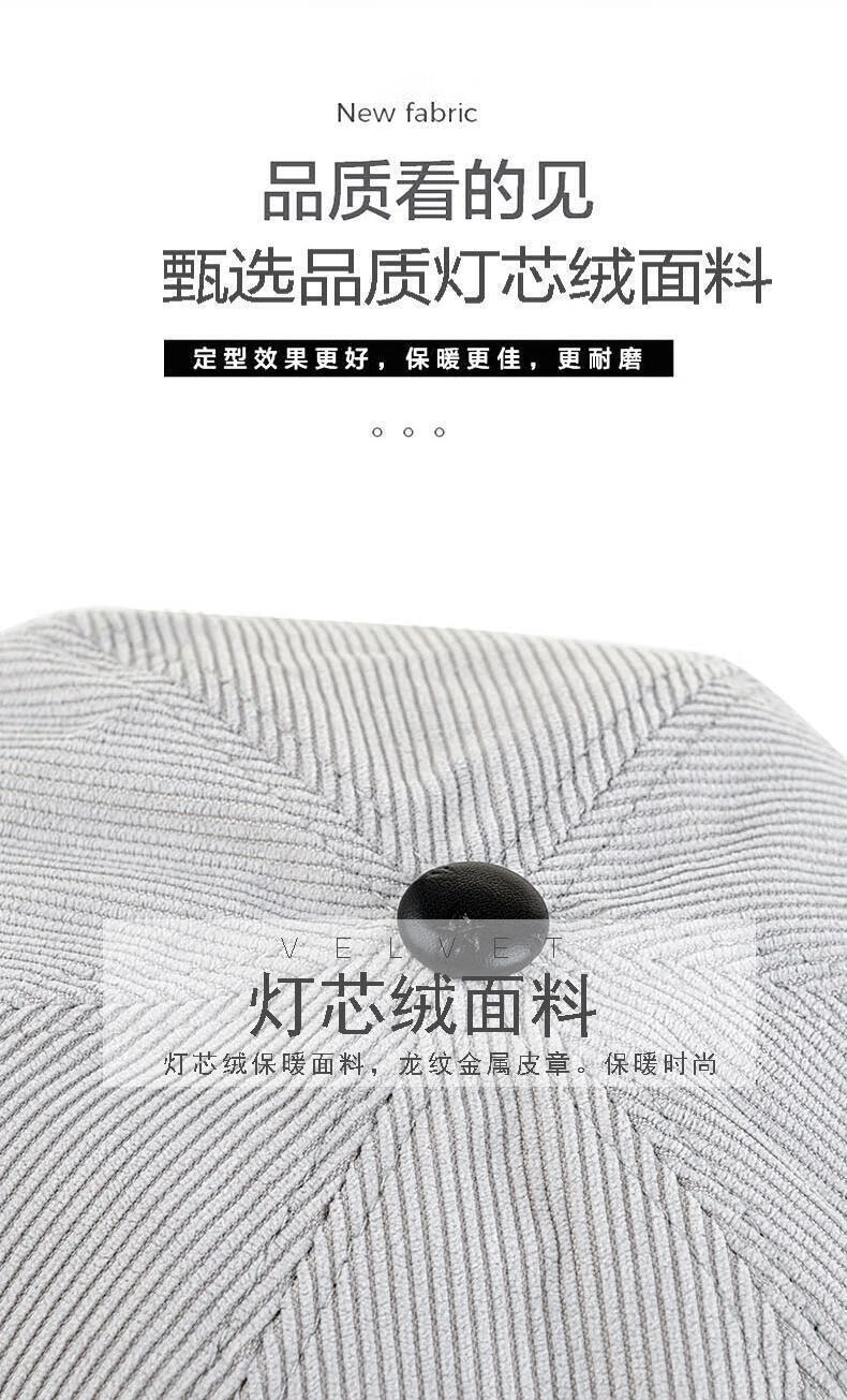 Yunqiang newsboy hat men's retro corduroy newsboy hat men's autumn and winter British versatile painter's octagonal hat plus velvet to keep warm, light gray, one size fits all, suitable for head sizes 57-59