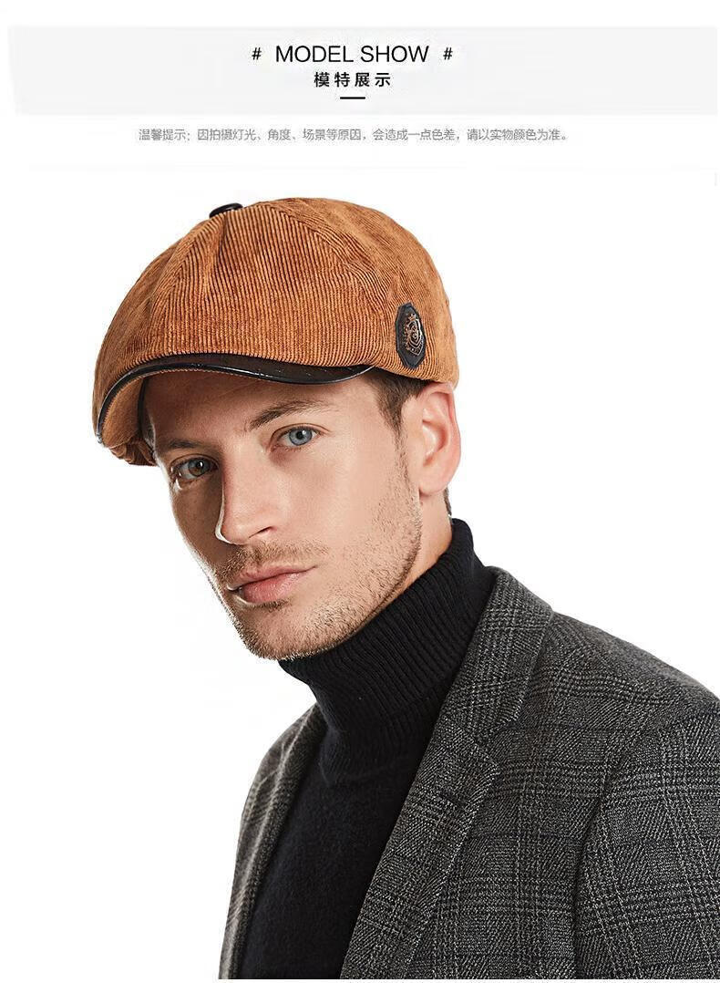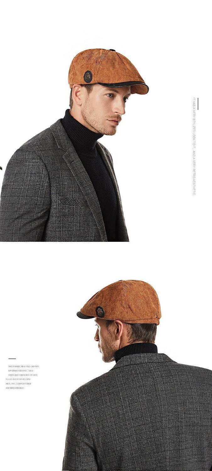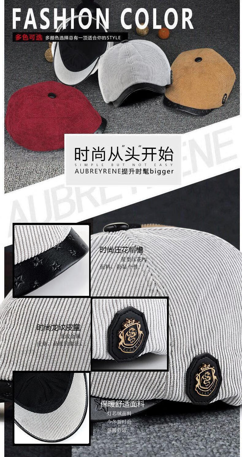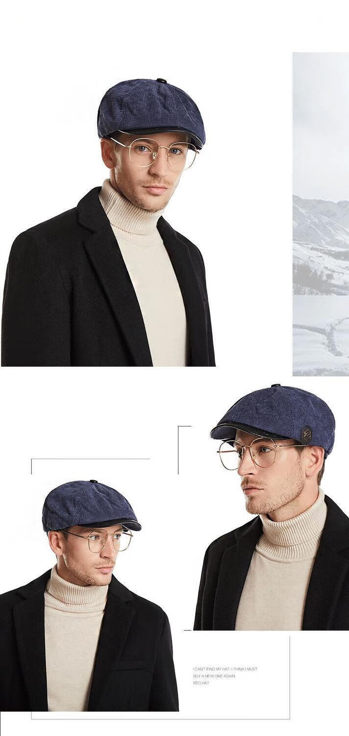 Yunqiang newsboy hat men's retro corduroy newsboy hat men's autumn and winter British versatile painter's octagonal hat plus velvet to keep warm, light gray, one size fits all, suitable for head sizes 57-59