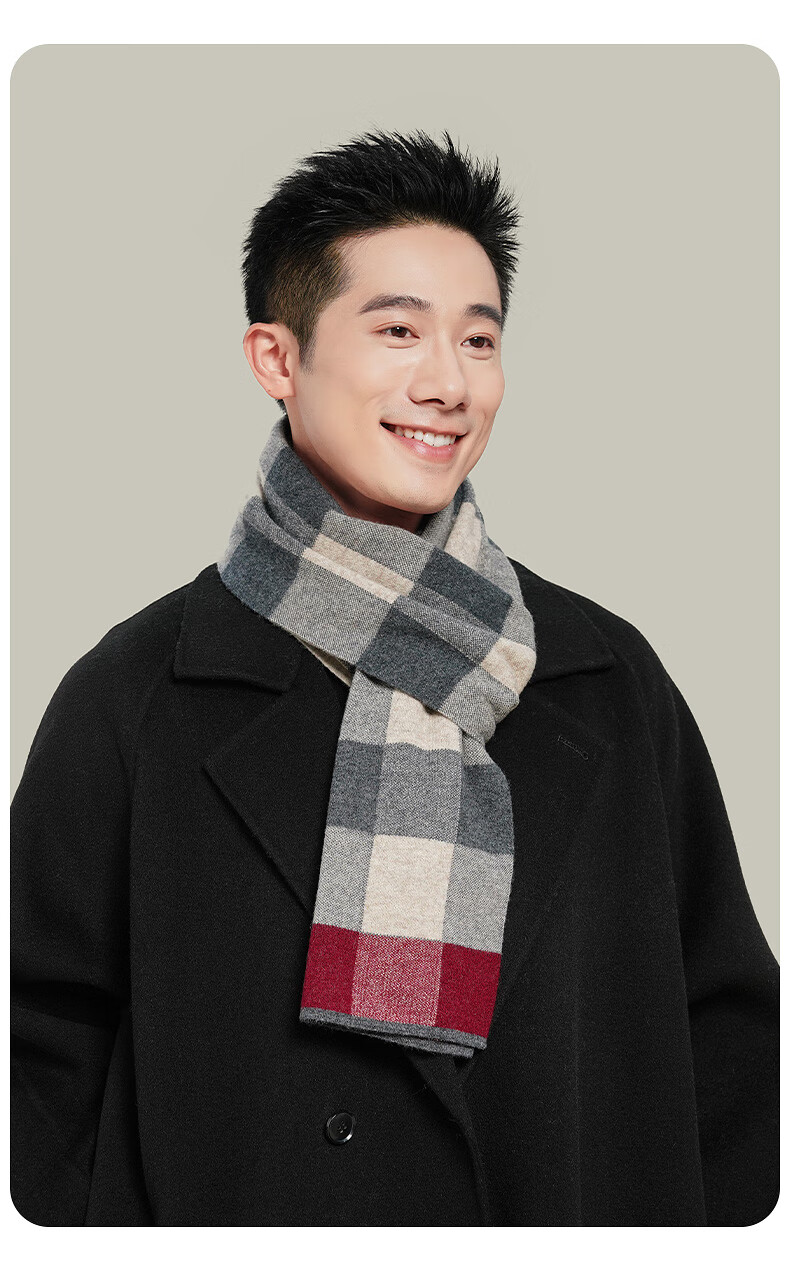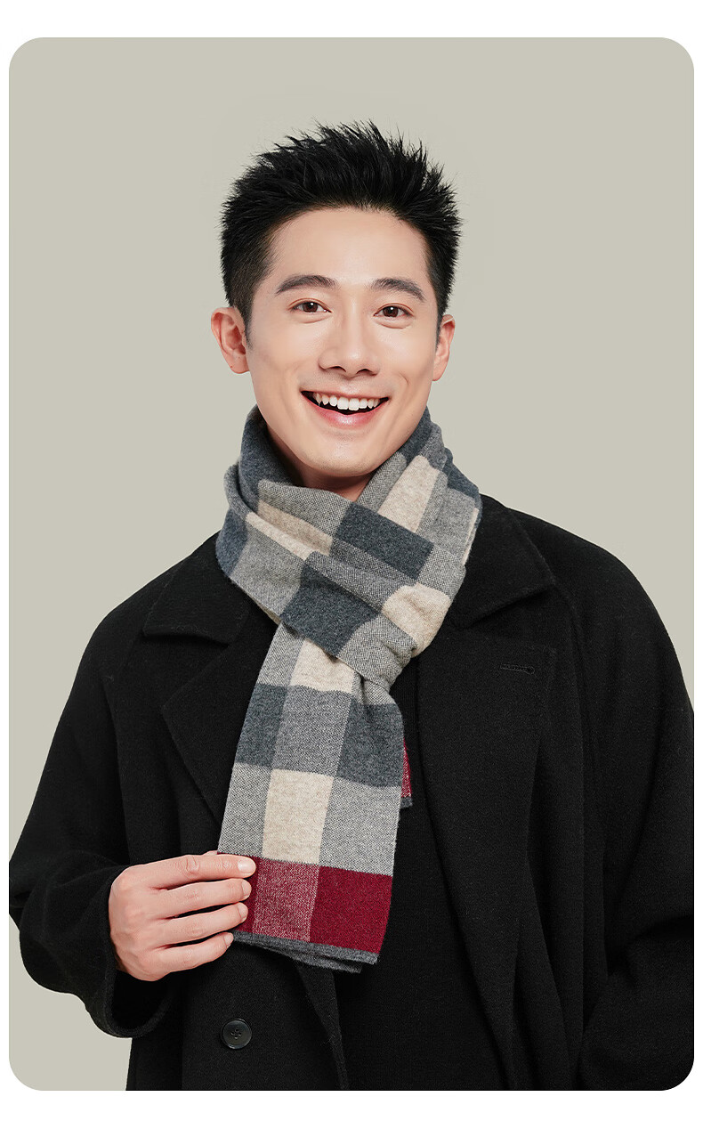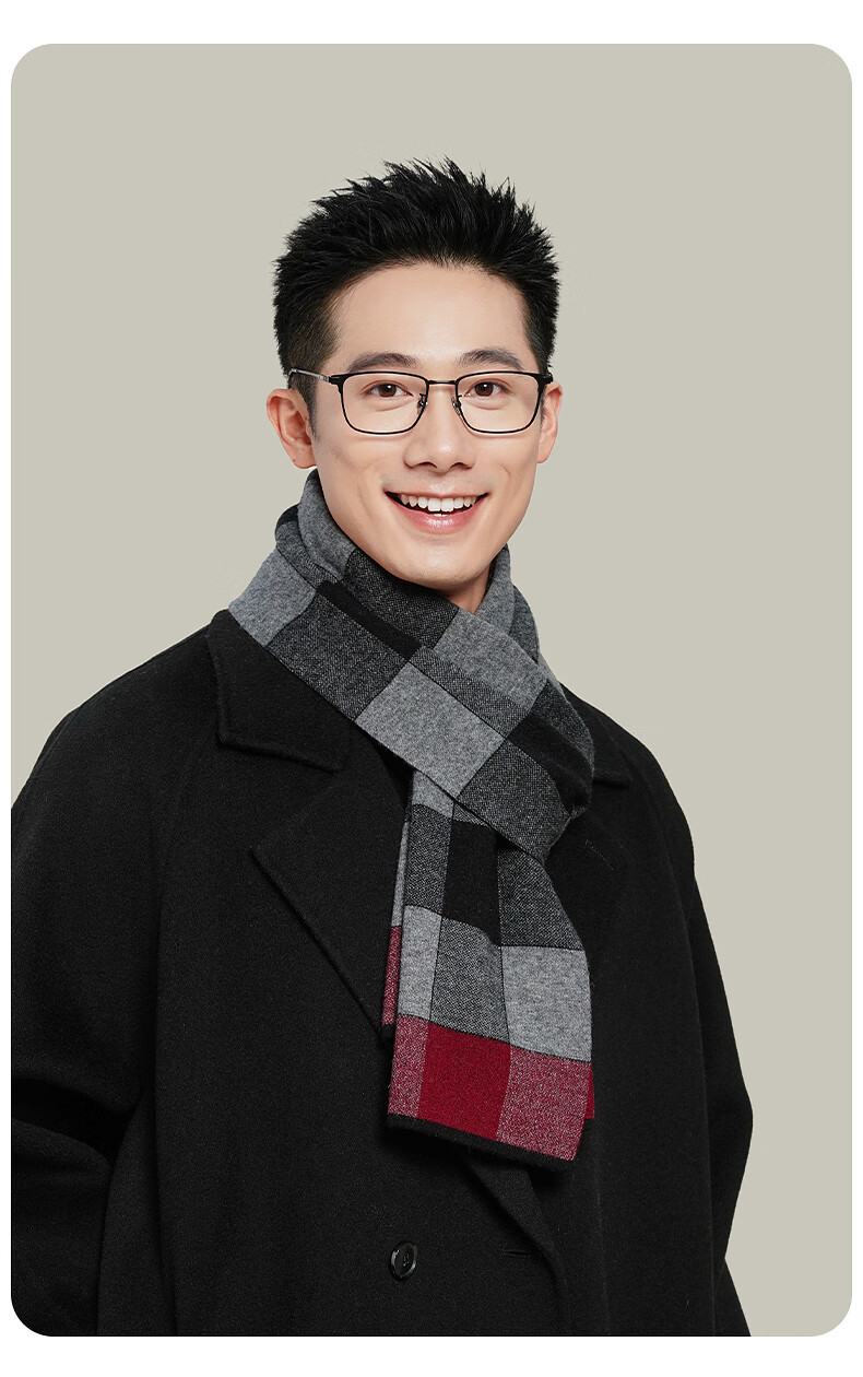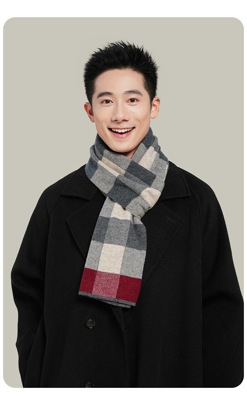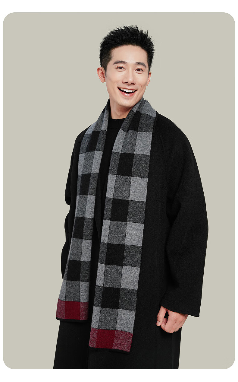 Hengyuan Xiangmian шарф, мужской зимний клетчатый шарф контрастного цвета, теплый шарф для пожилых людей, подарочная коробка, черный, серый, красный