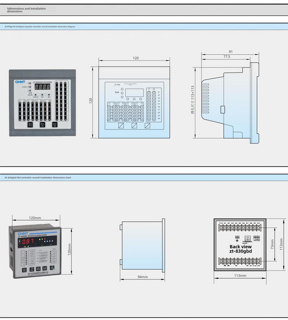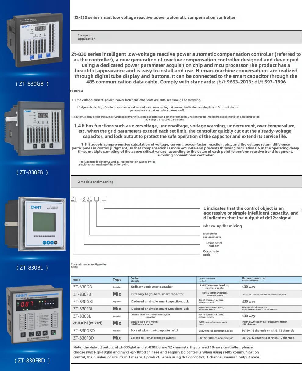 Chint Bagb intelligent capacitor Zt-830Gb low voltage continuous compensation controller 830Fb total compensation ZT-830GBL