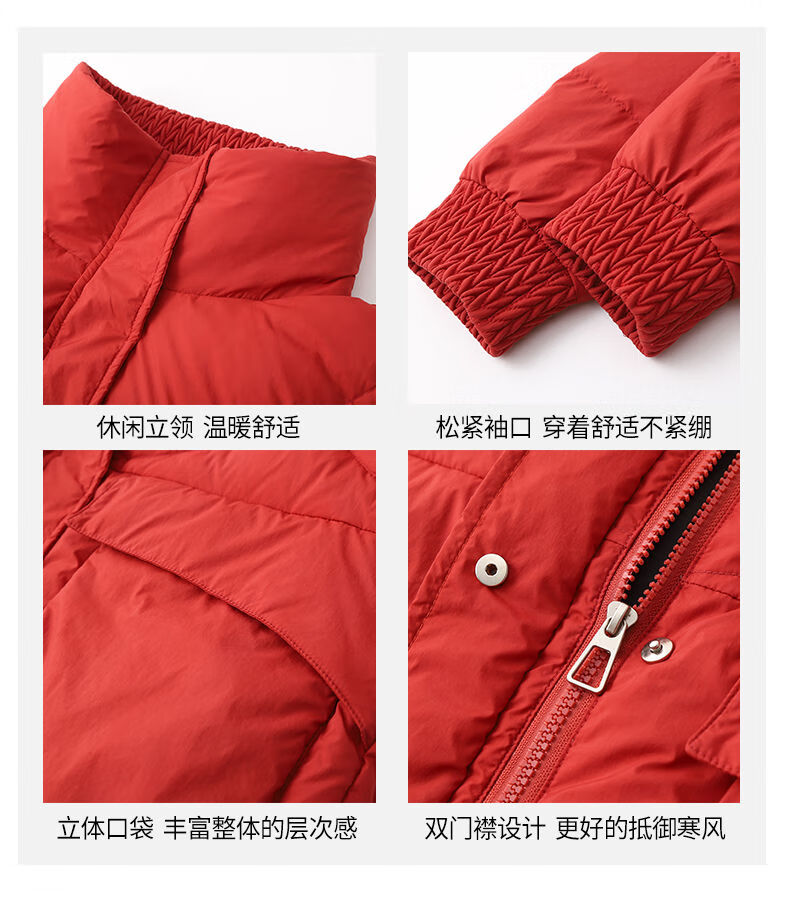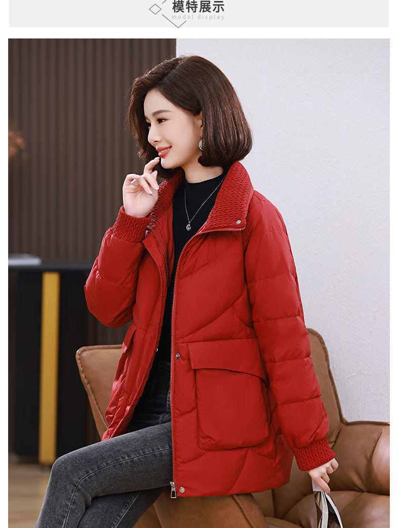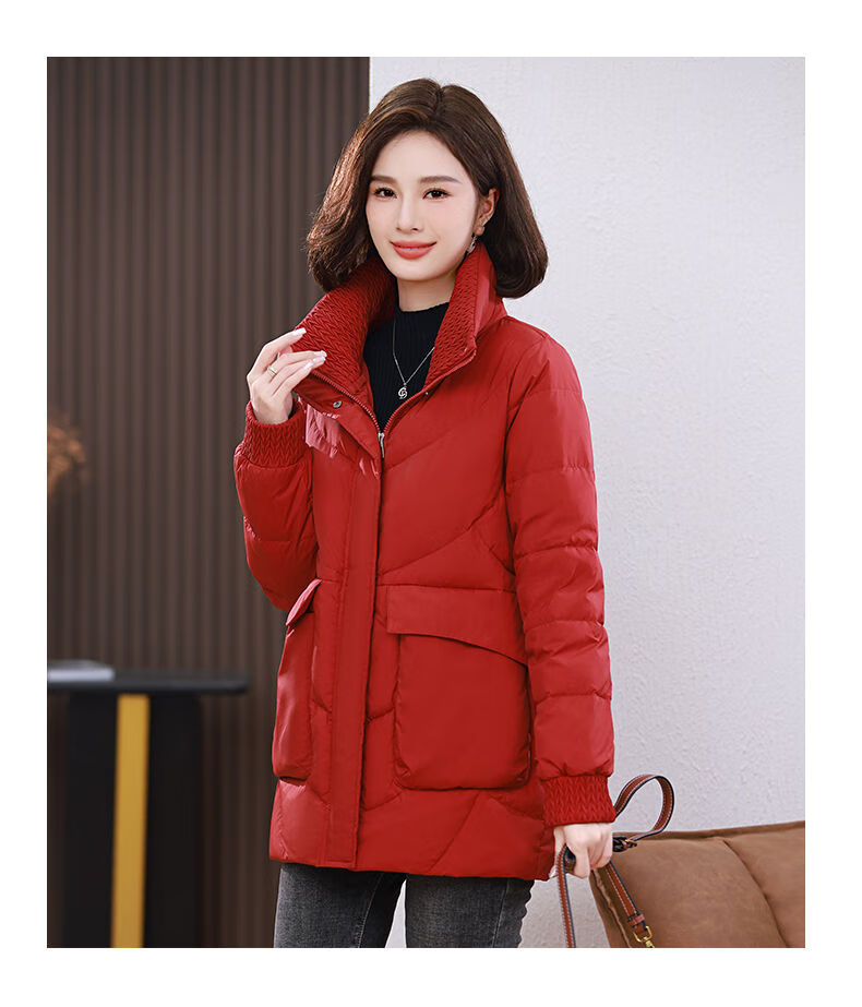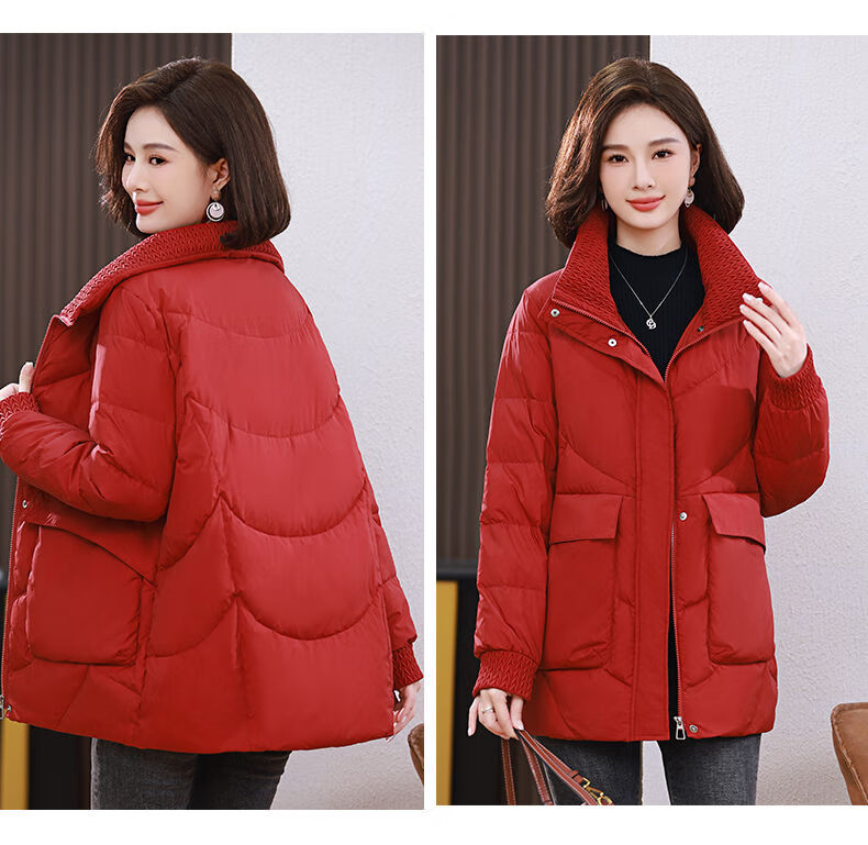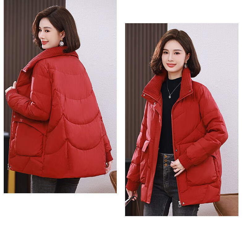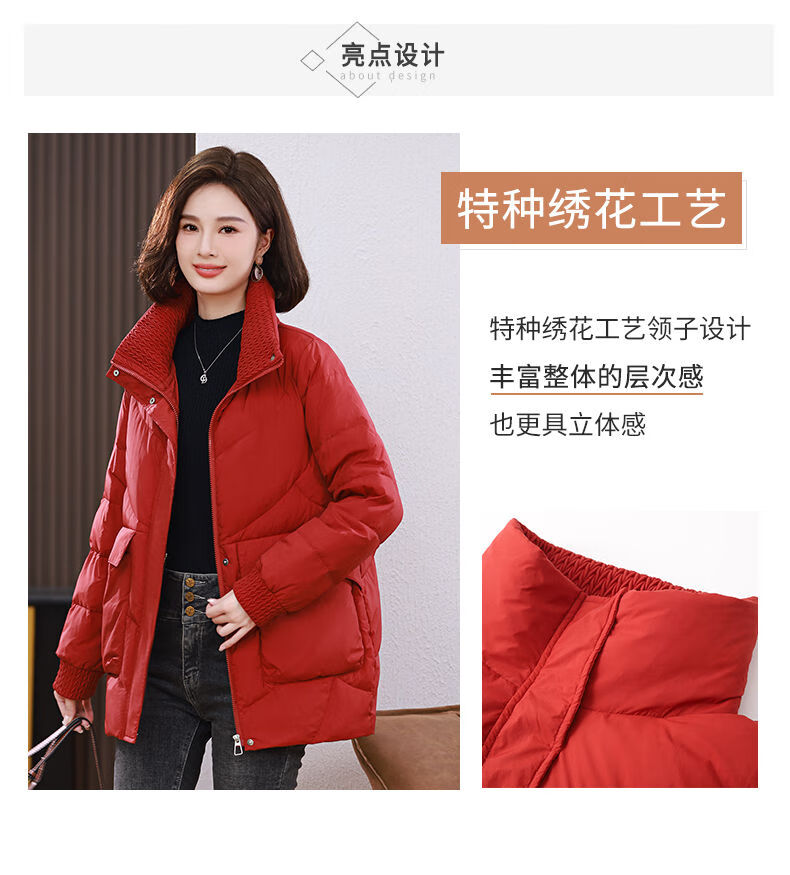 LISM shopping mall same style high-end down jacket white duck down jacket women stand collar hoodless loose large size medium mother white red 2XL XXL suitable for weight 146b