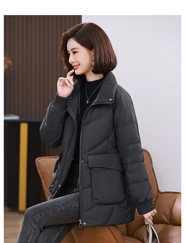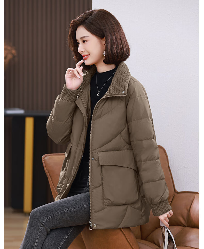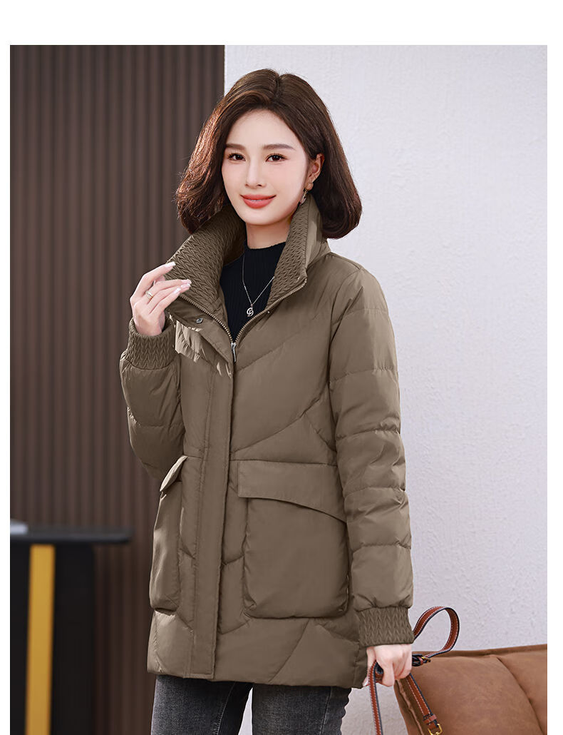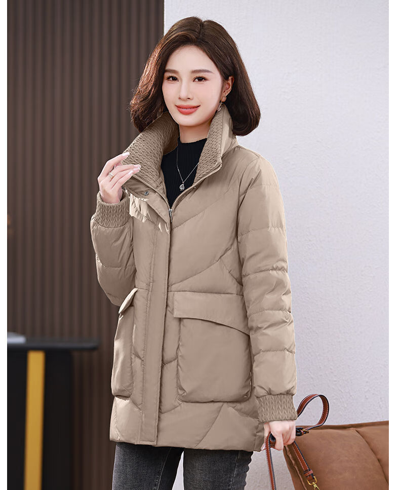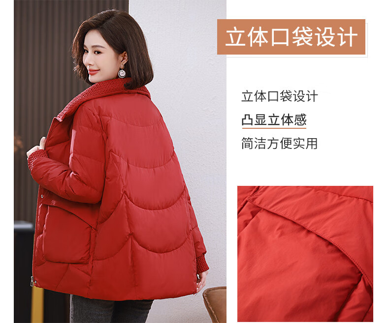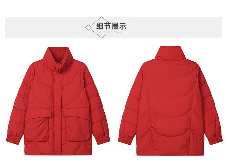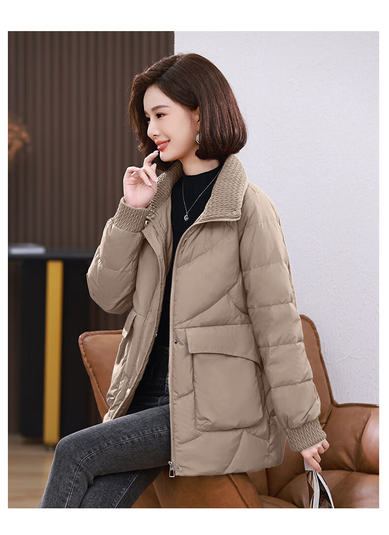 LISM shopping mall same style high-end down jacket white duck down jacket women stand collar hoodless loose large size medium mother white red 2XL XXL suitable for weight 146b