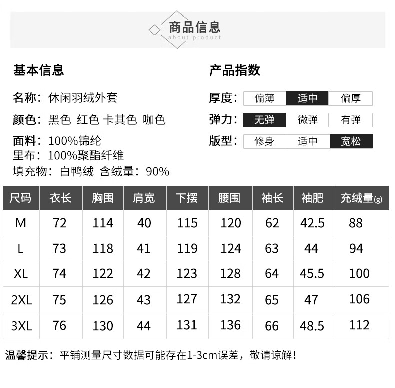 China (cm) 165 / 88-90 170 / 96-98 175 / 108-110 180 / 118-122 185 / 126-130