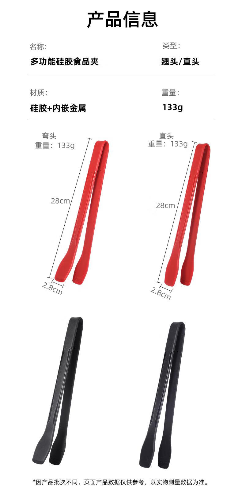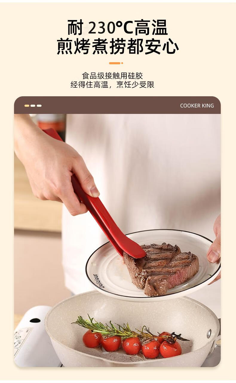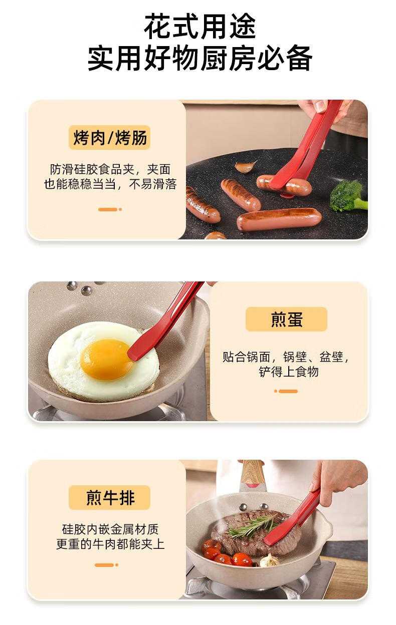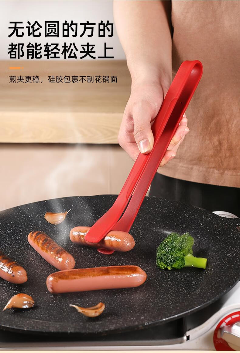 FVFH German steak clip silicone food clip anti-scalding food-grade tilt-up kitchen stir-fry barbecue steak non-stick pan tilt-up silicone clip-black