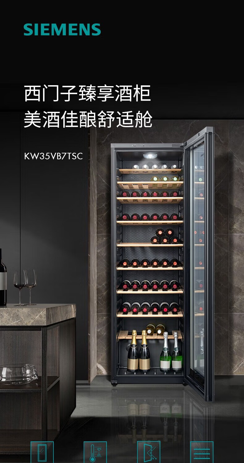 SIEMENS wine cabinet wine red wine cabinet KW35VB7TSC/KW3MVB8TSC constant temperature refrigeration imported oak wine rack KW3MVB8TSC 96 bottles