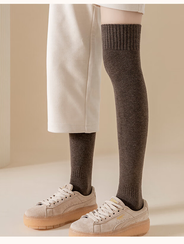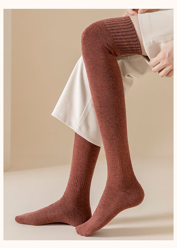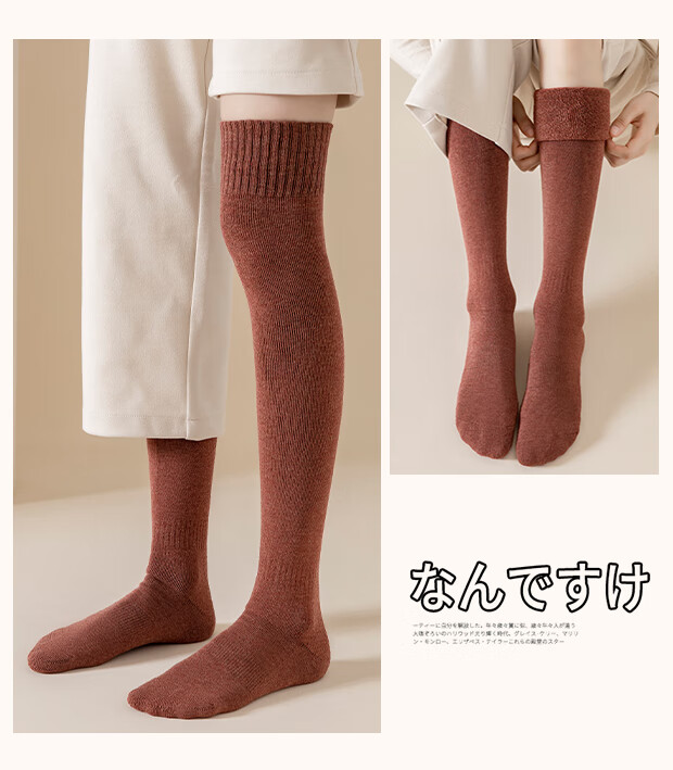 LangSha Socks Women's Spring and Autumn Mid-calf Socks Plus Velvet Thickened Winter Over-the-Knee Socks Knee-Paper Terry Warm Long Socks Pack Black 2, Deep Camel 2 4 Pairs One Size