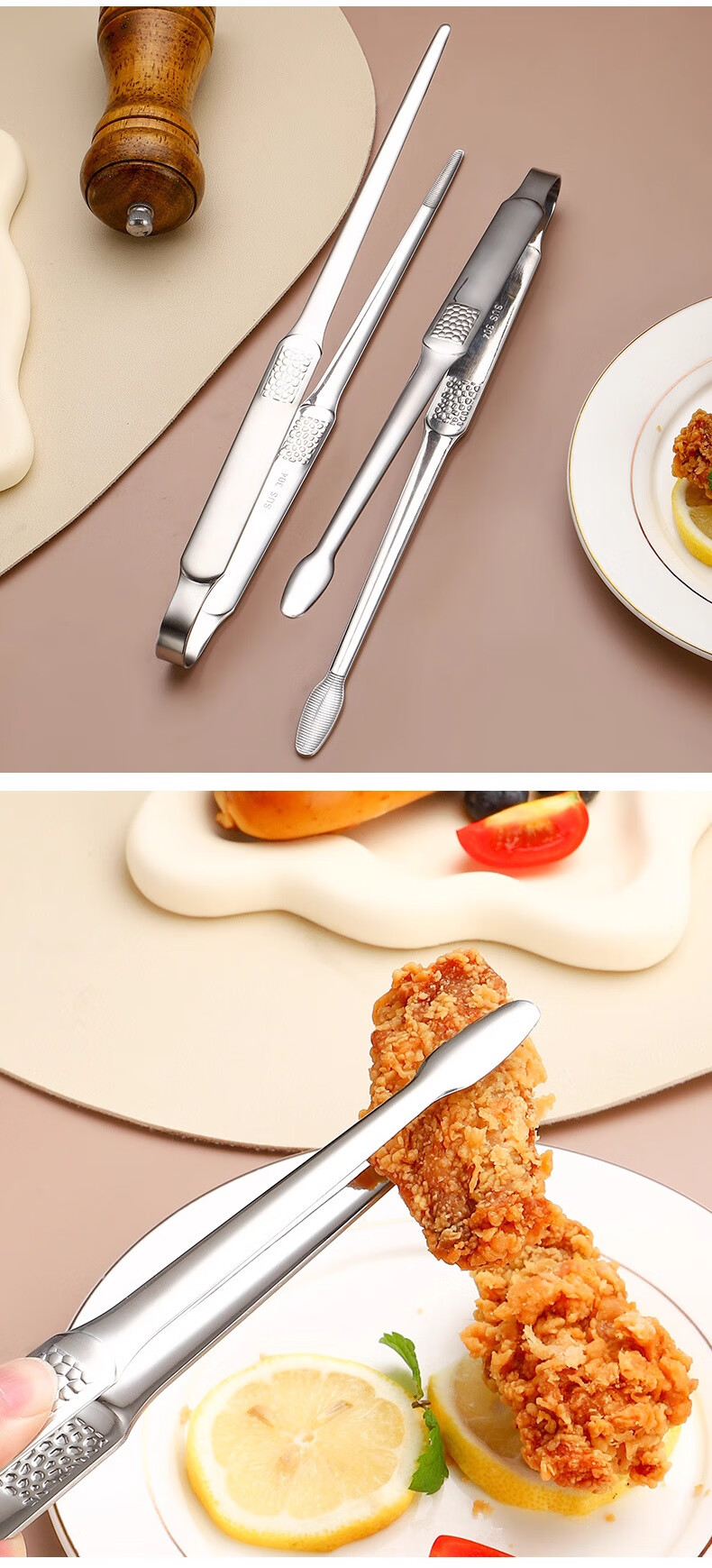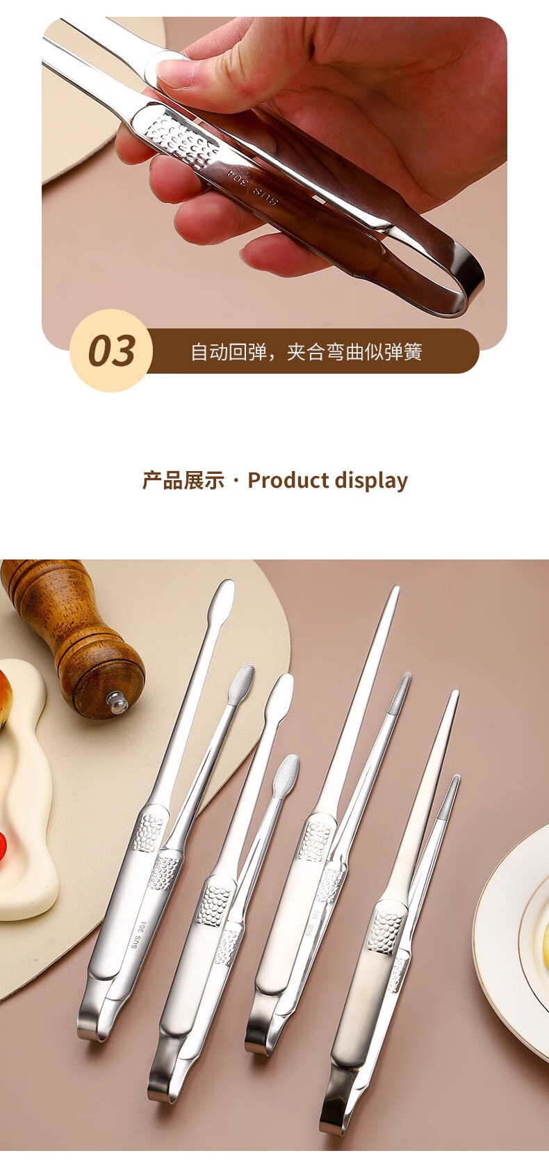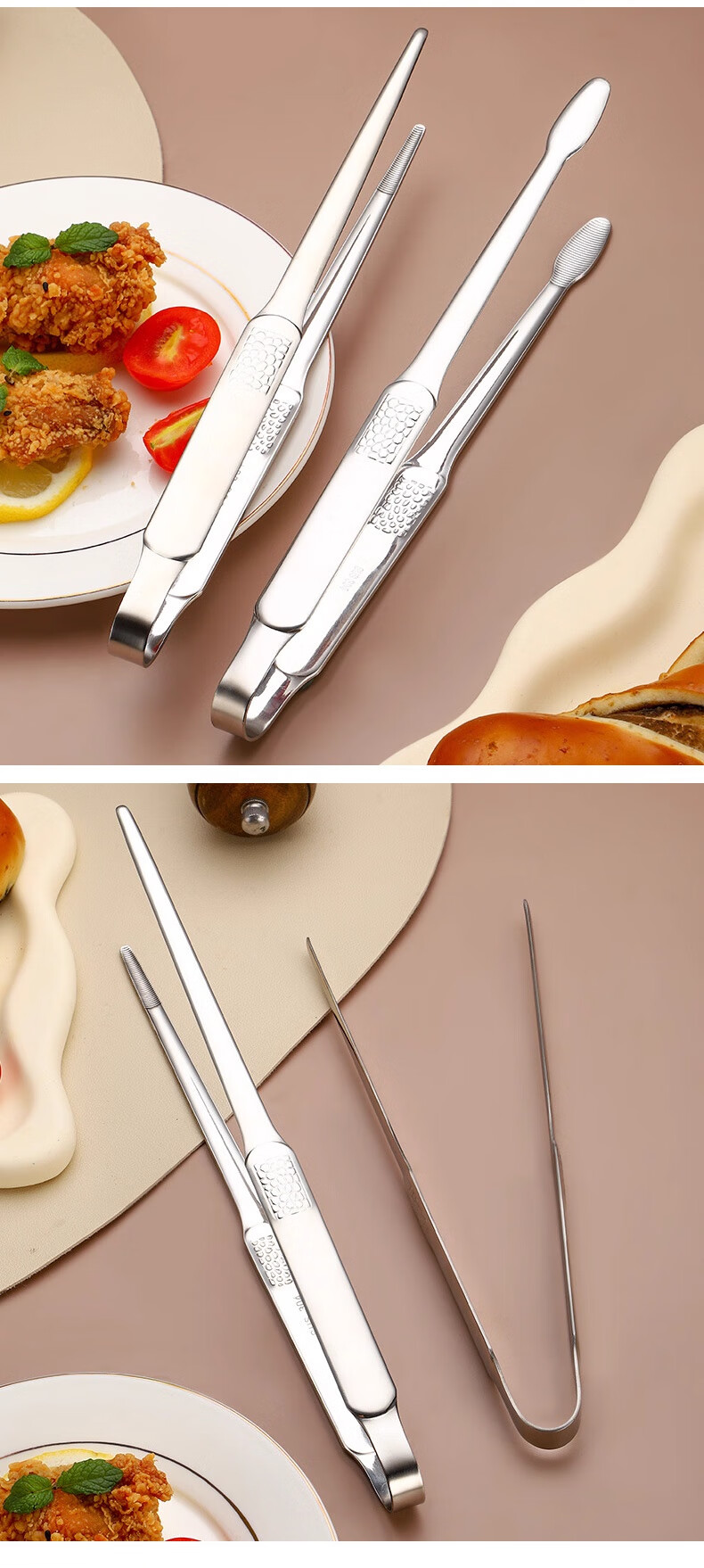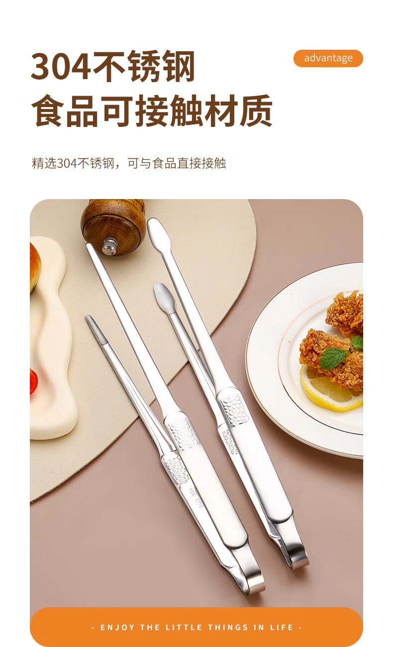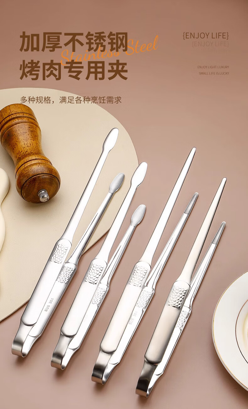 FVFH German extra thick stainless steel barbecue clip household steak outdoor barbecue bread food kitchen food anti-scalding clip 304 round head small size