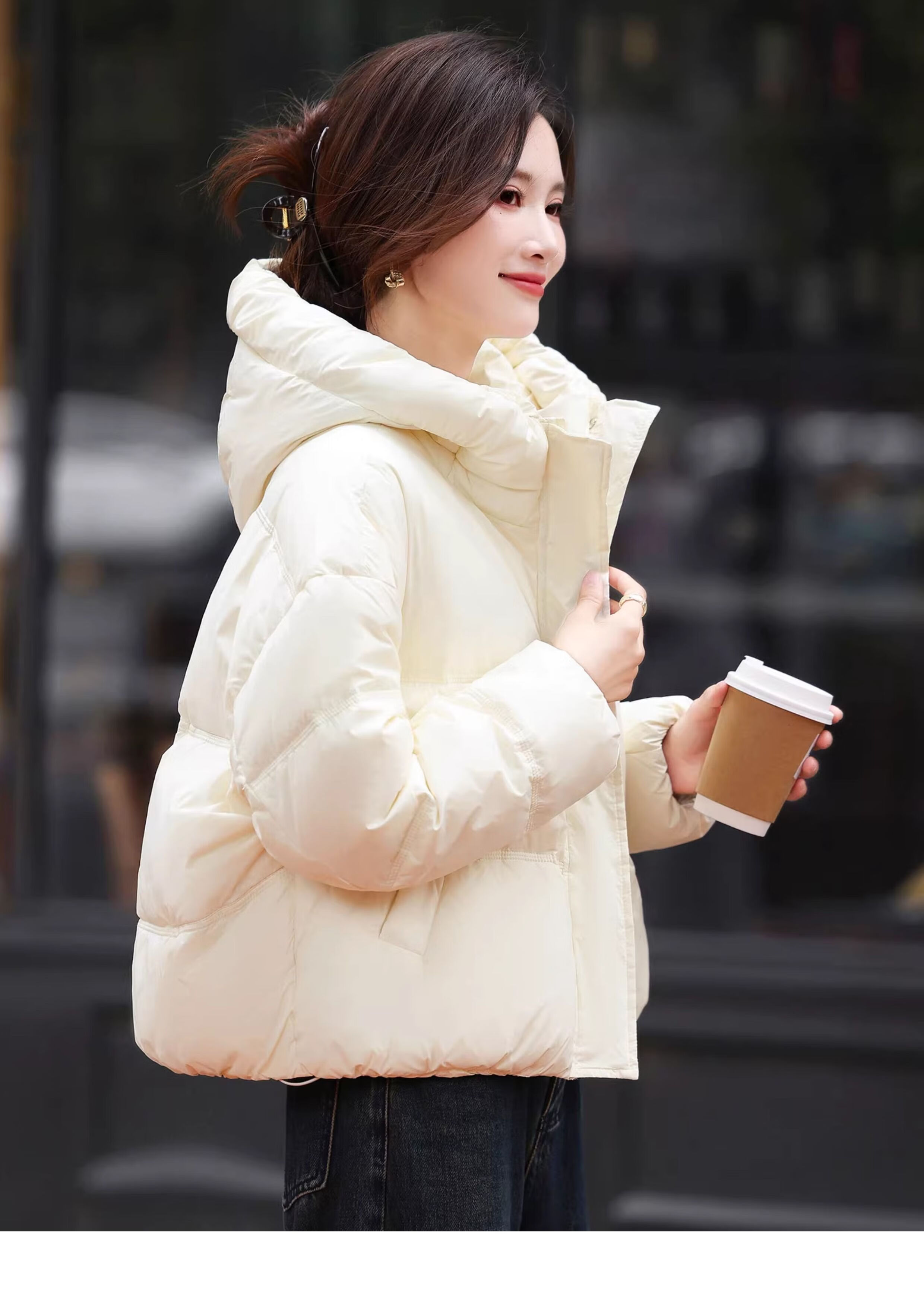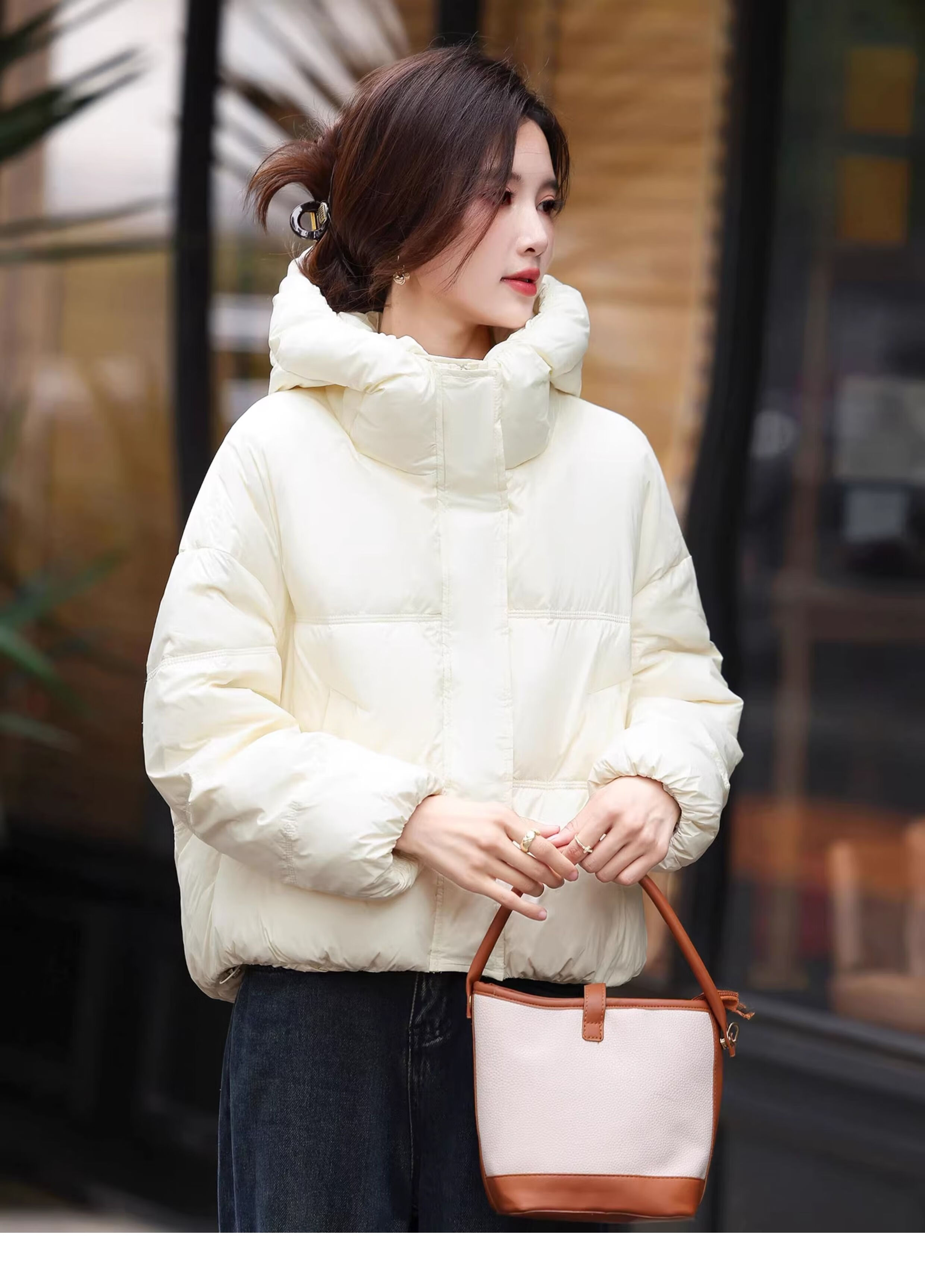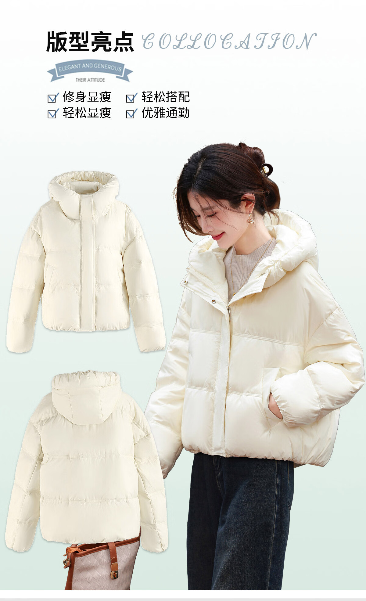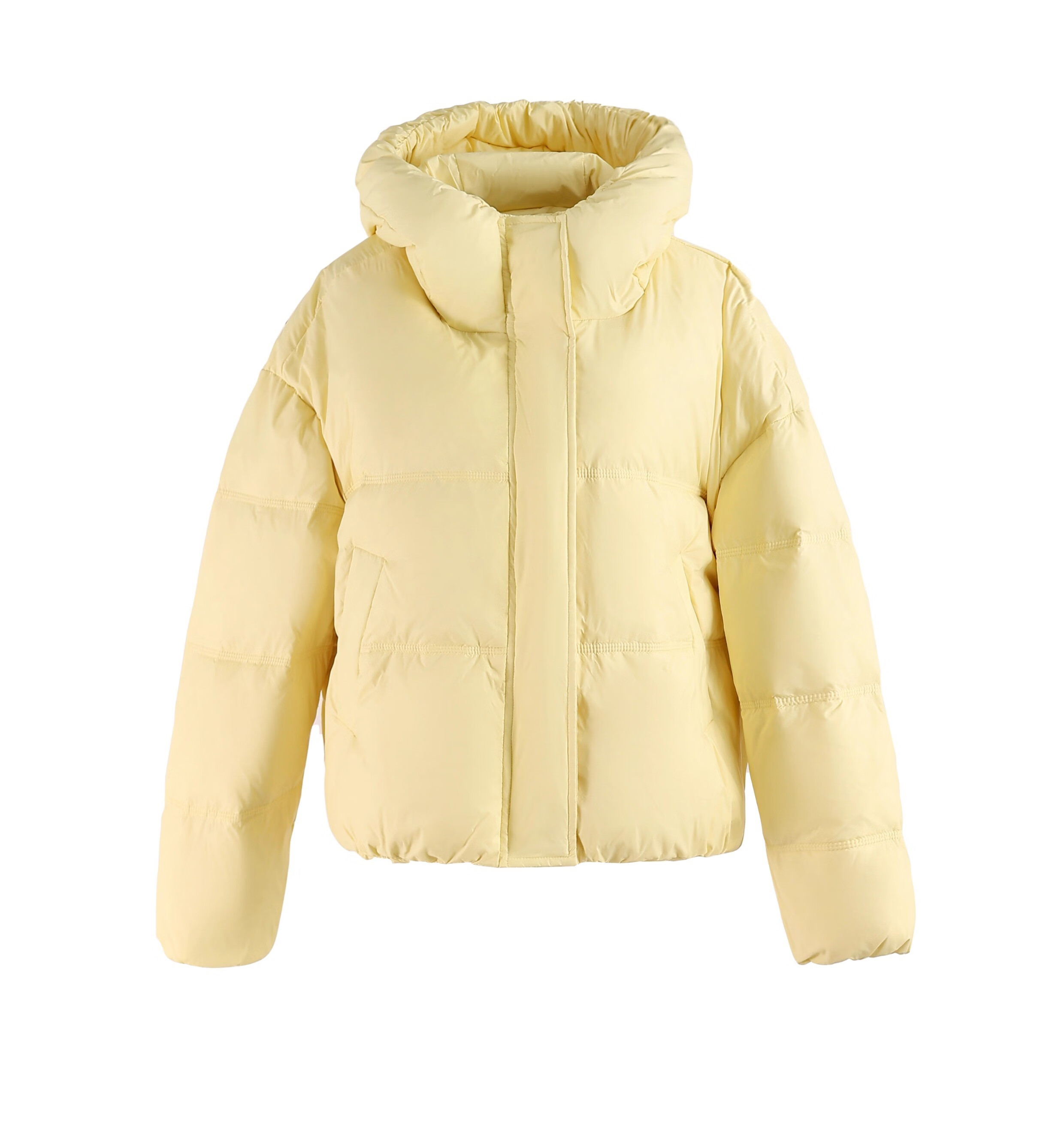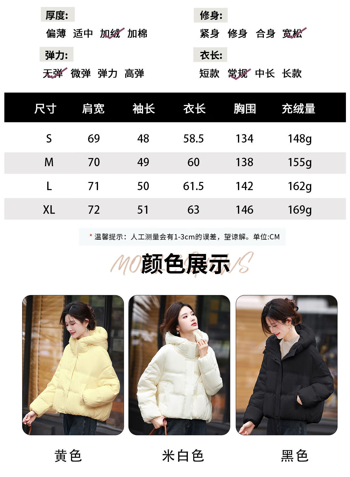 LISM shopping mall same style high-end down jacket down jacket women's super popular small fashion white duck down hooded short yellow M recommended 120-138 Jin Jin equals 0.5 kg