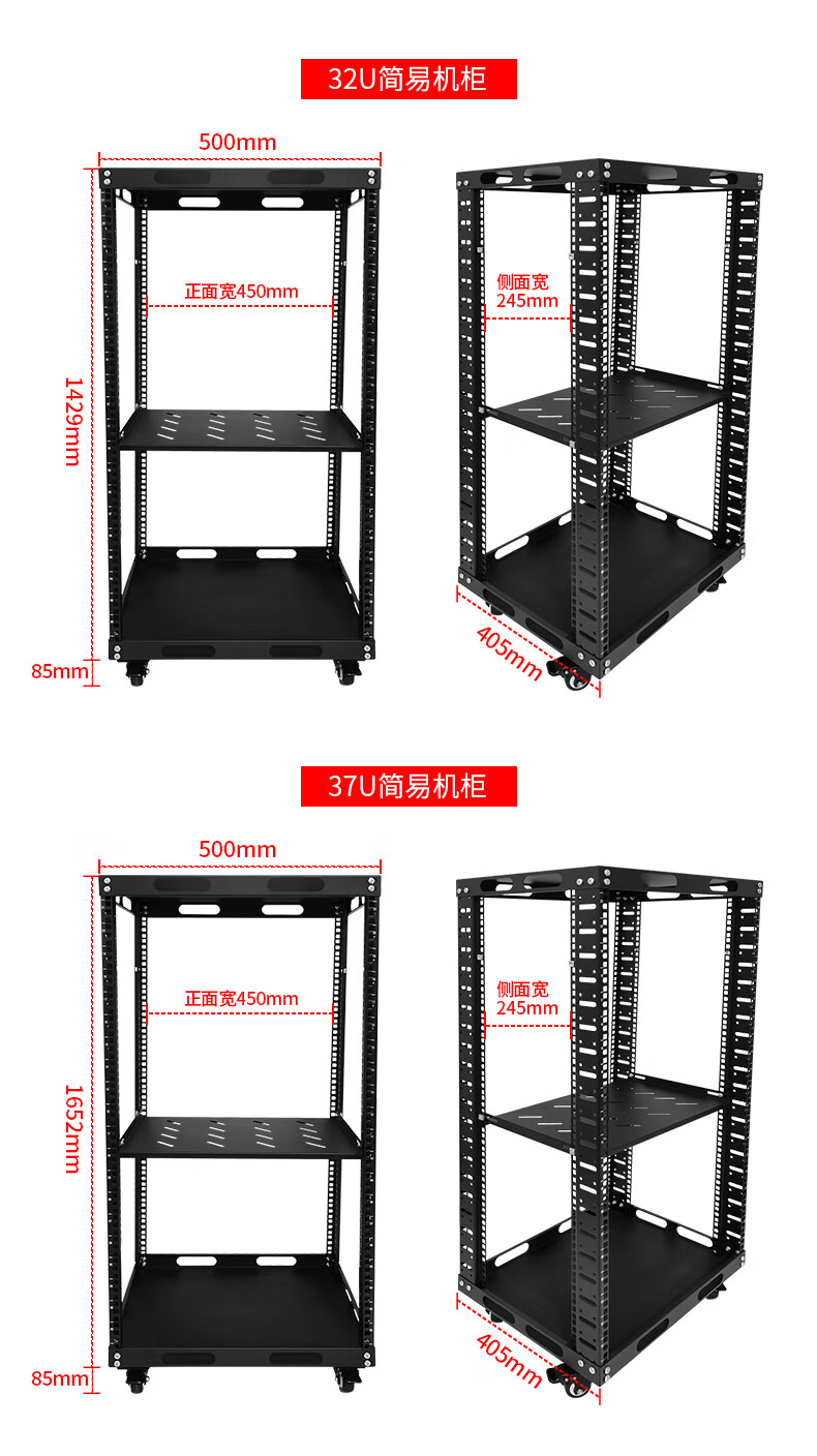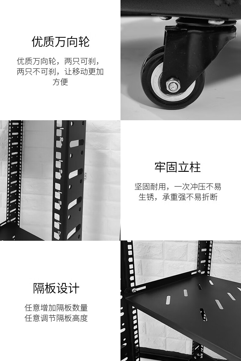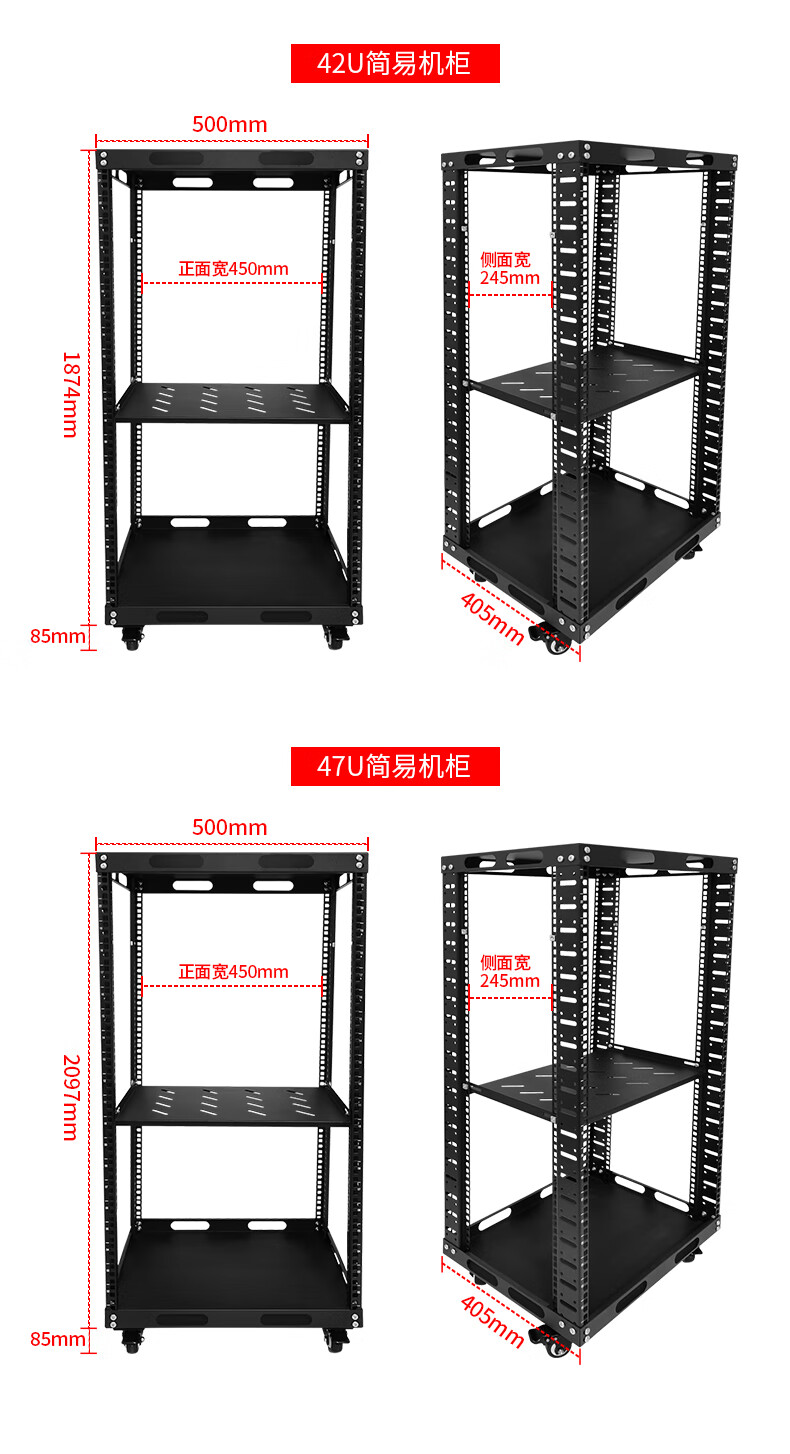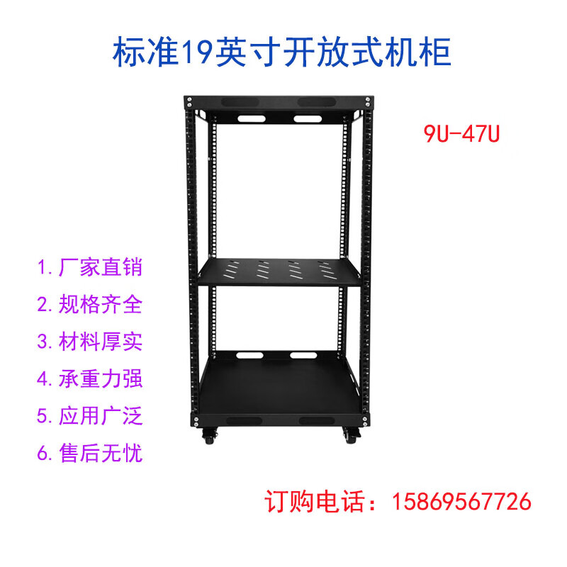 19-inch open audio rack mobile cabinet simple rack 12U-47U multi-layer storage rack black 42u (1.95 meters) 50x40x200cm