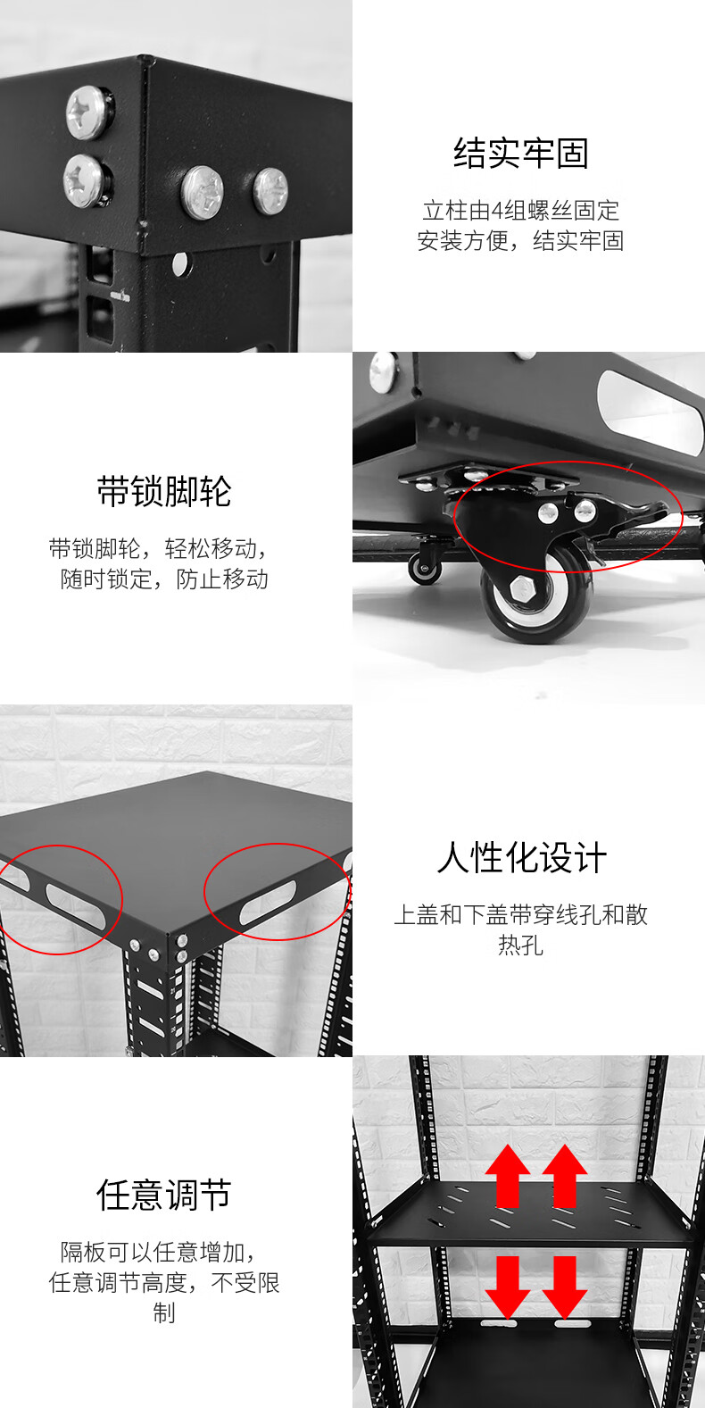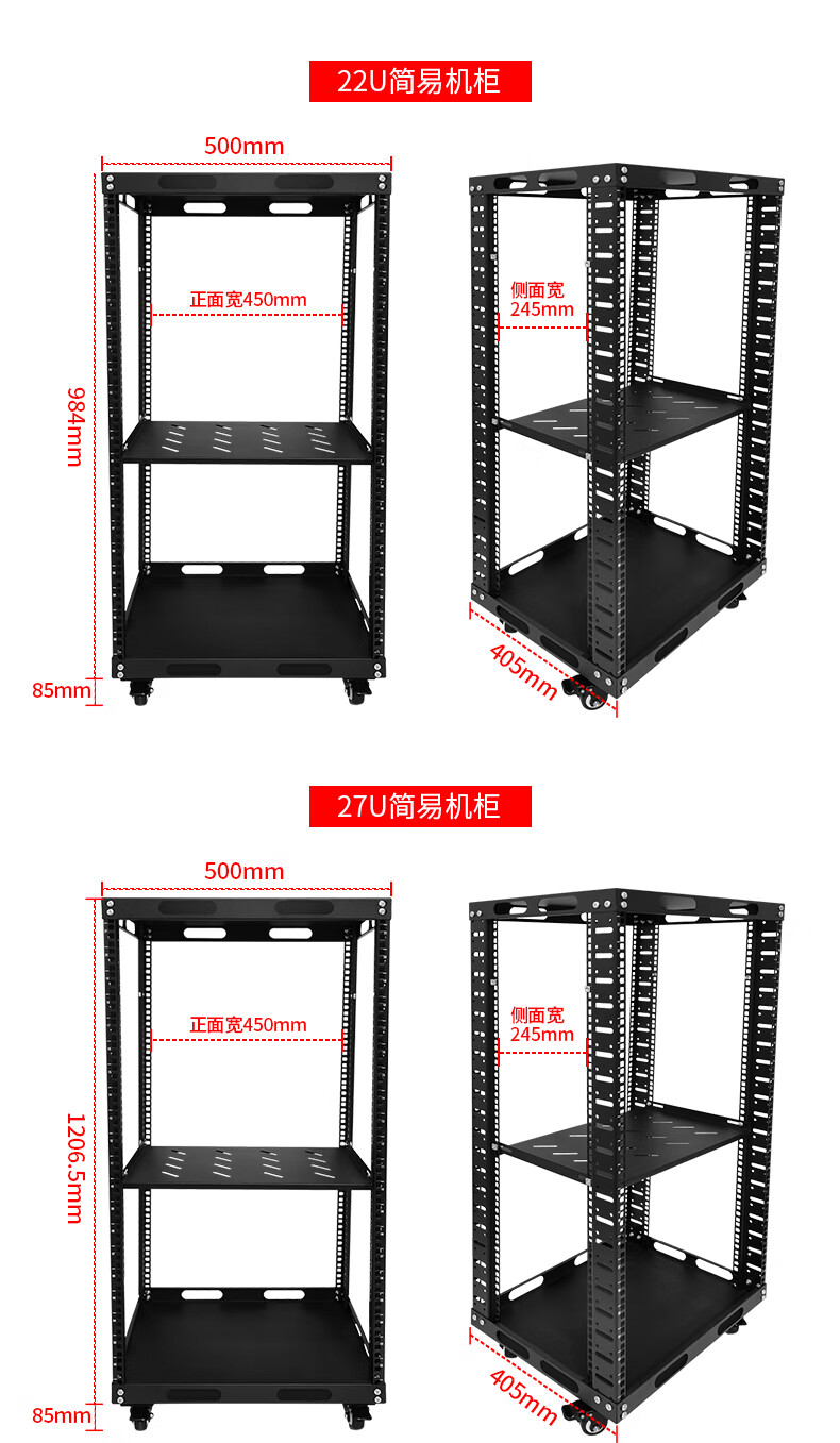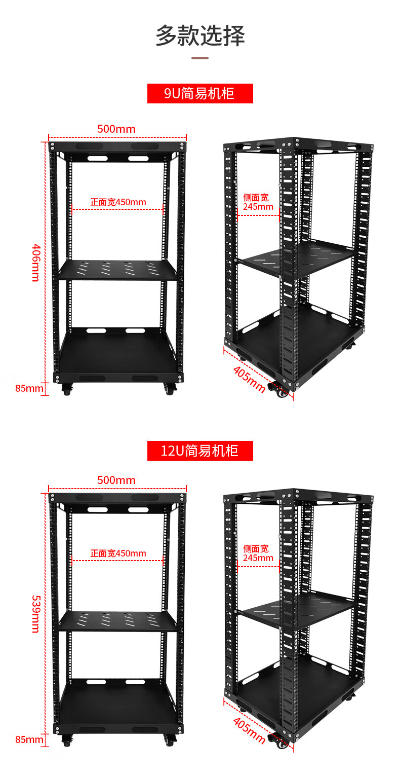 19-inch open audio rack mobile cabinet simple rack 12U-47U multi-layer storage rack black 42u (1.95 meters) 50x40x200cm