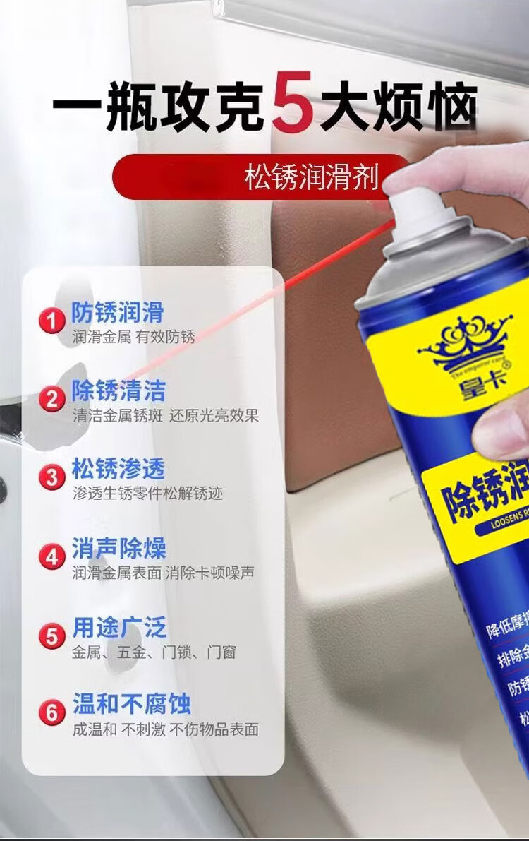 Jican Stove Powerful Rust Remover Screw Loosening Agent Stainless Steel Rebar Metal Anti-rust Oil Agent Rust Lubricating Spray 5 bottles, one spray to remove rust, clean as new