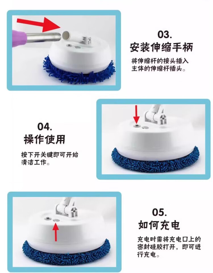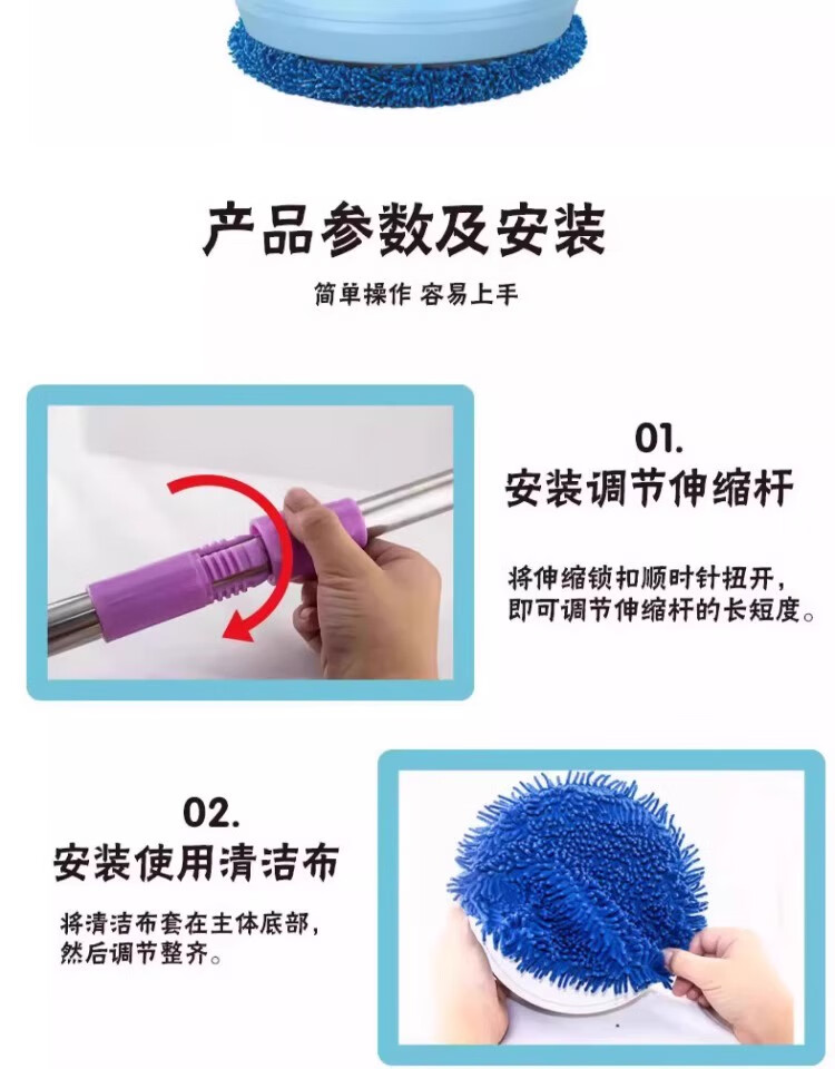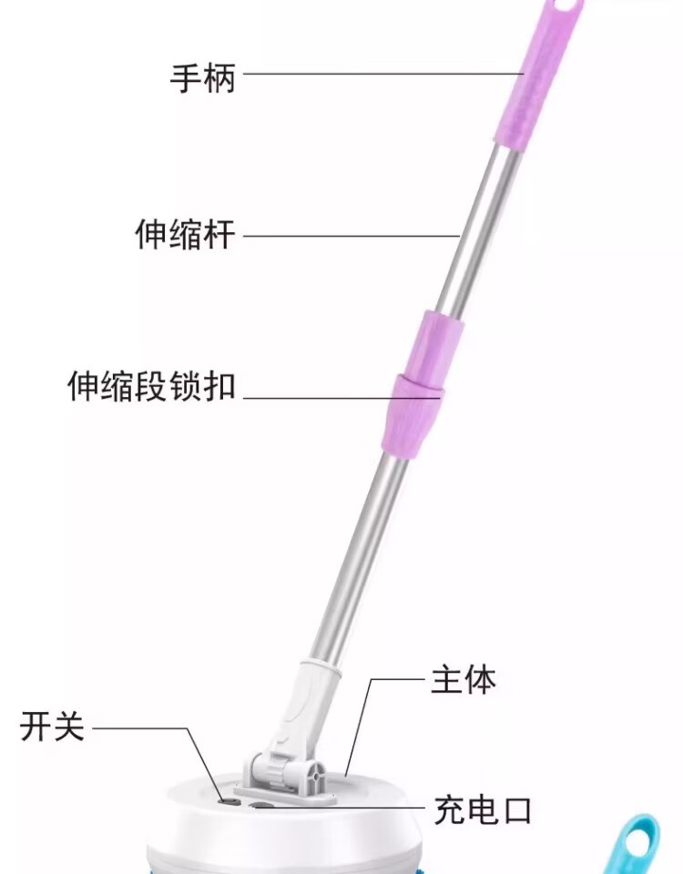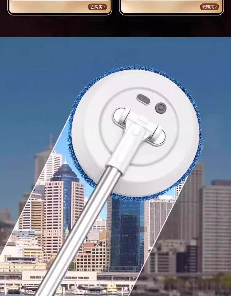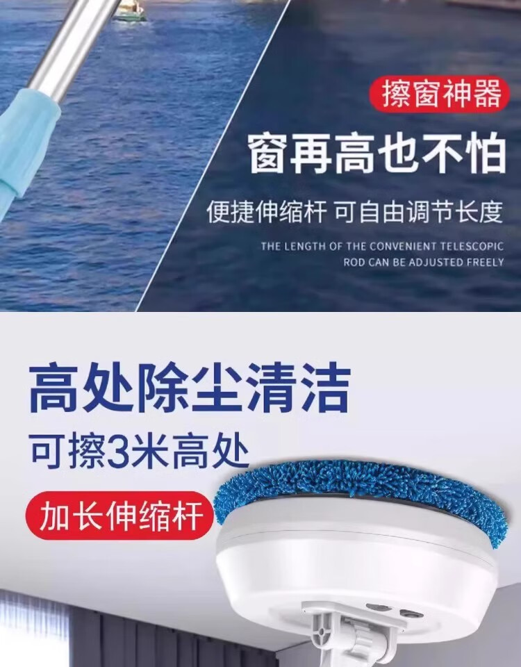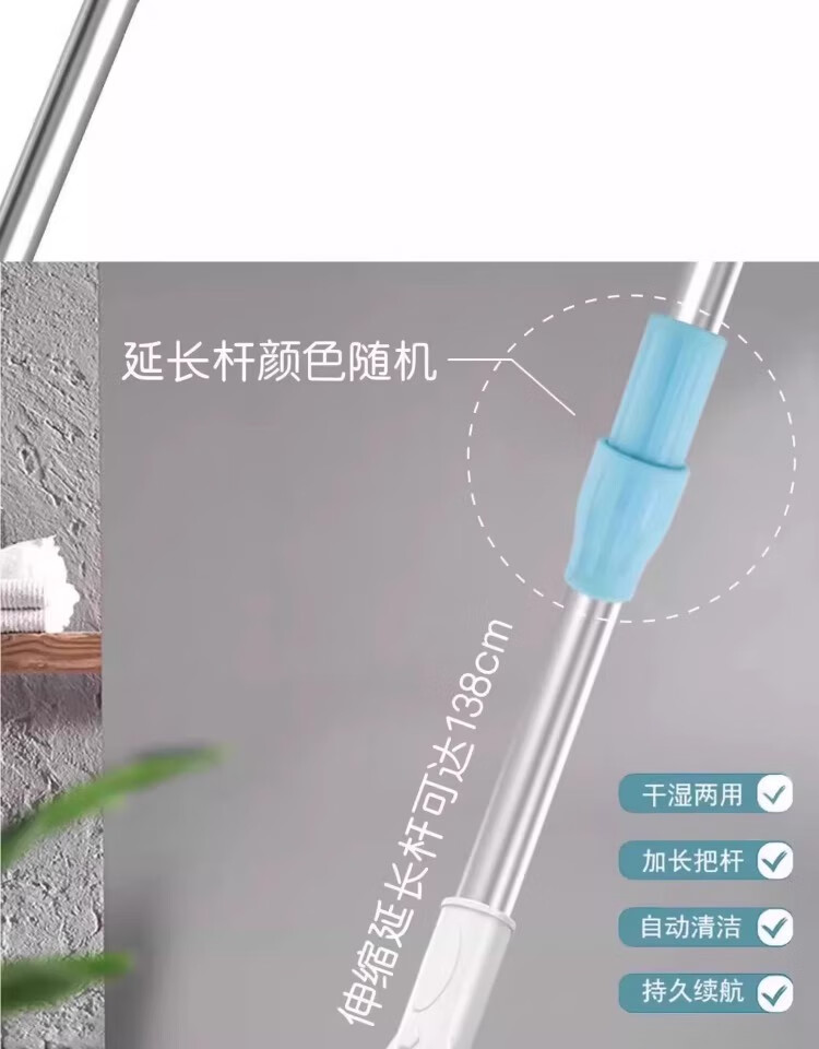 Meschute German ceiling cleaning artifact household cleaning dust sweeper roof electric mop can be retracted and extended, can wipe 4 meters high 2 pieces of cloth, white mop diameter 16.5cm
