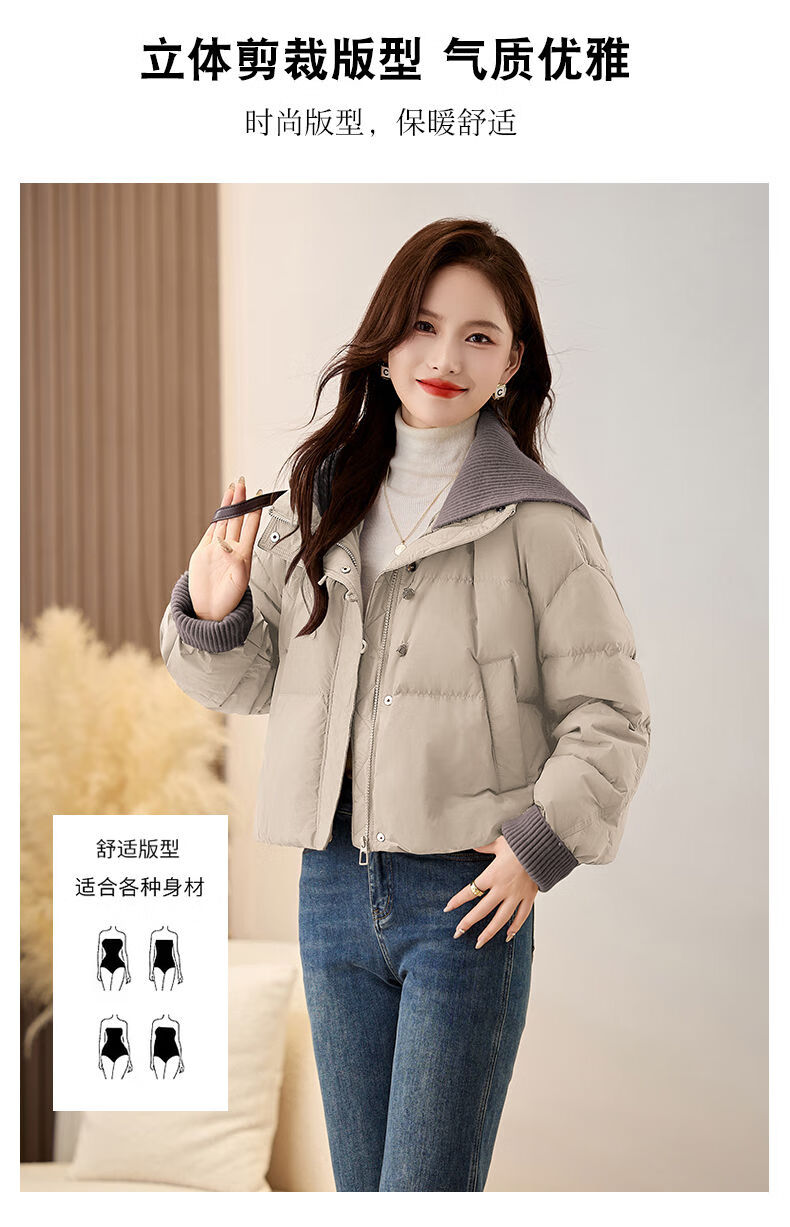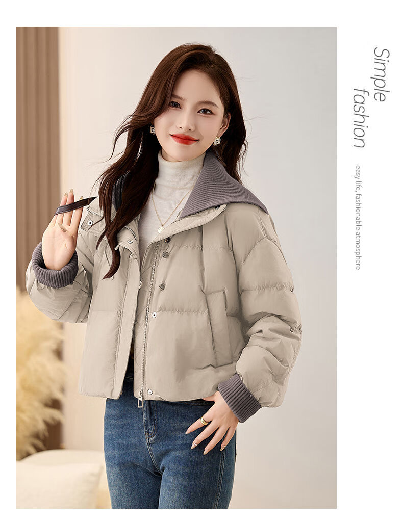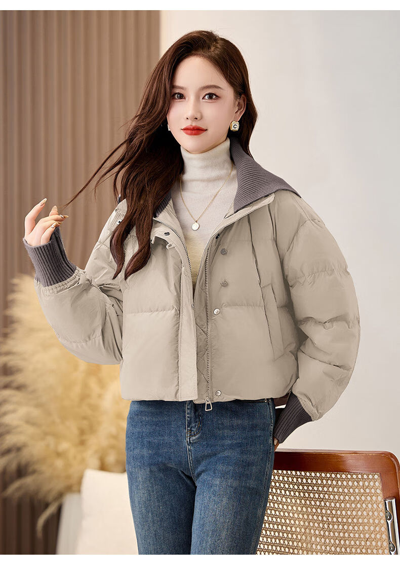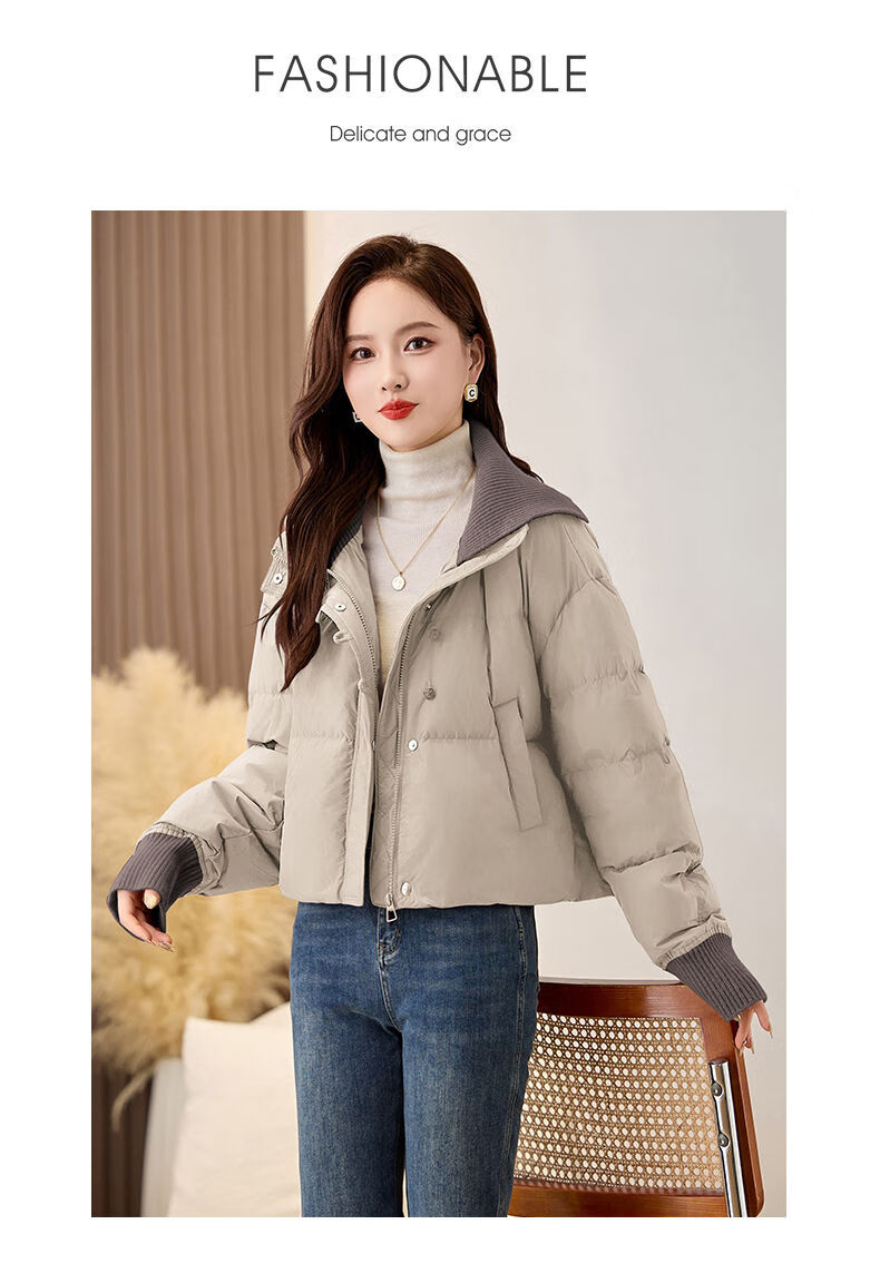 LISM shopping mall same style high-end down jacket fake two pieces super good-looking down jacket women's short style for small people Khaki M