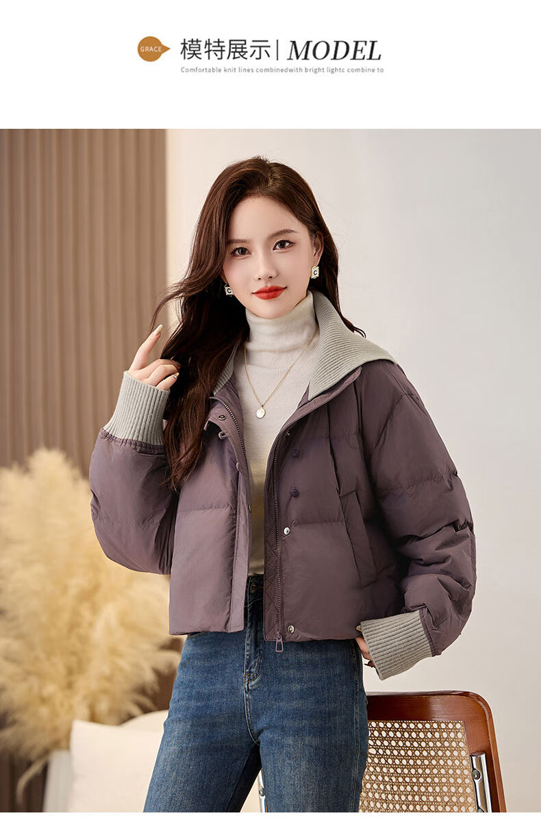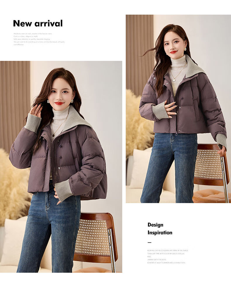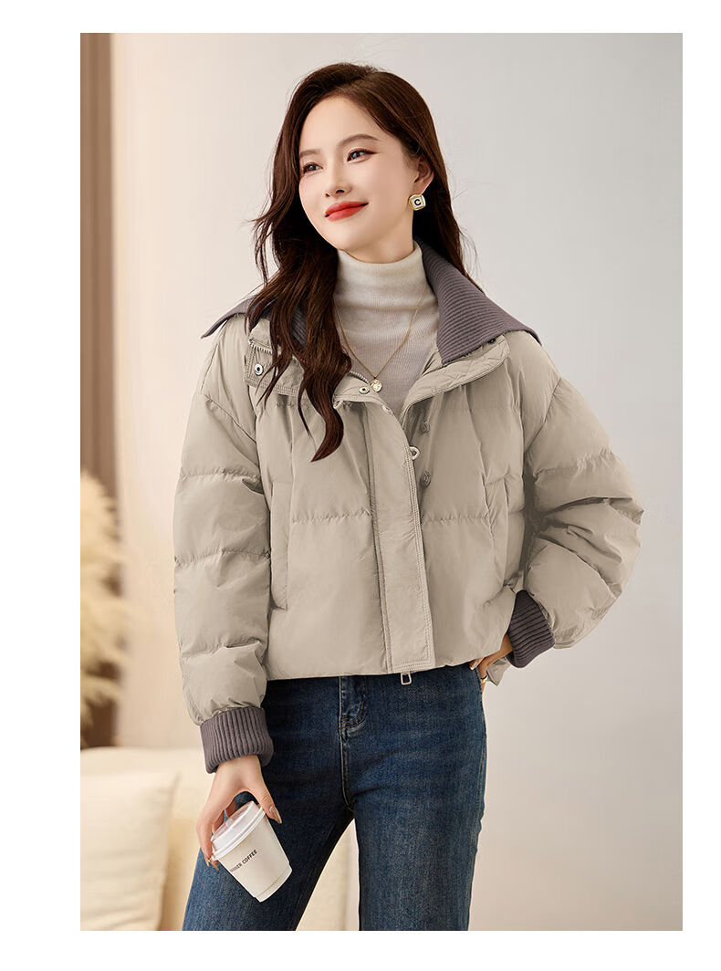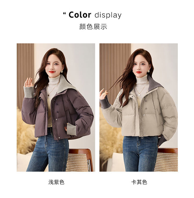 LISM shopping mall same style high-end down jacket fake two pieces super good-looking down jacket women's short style for small people Khaki M