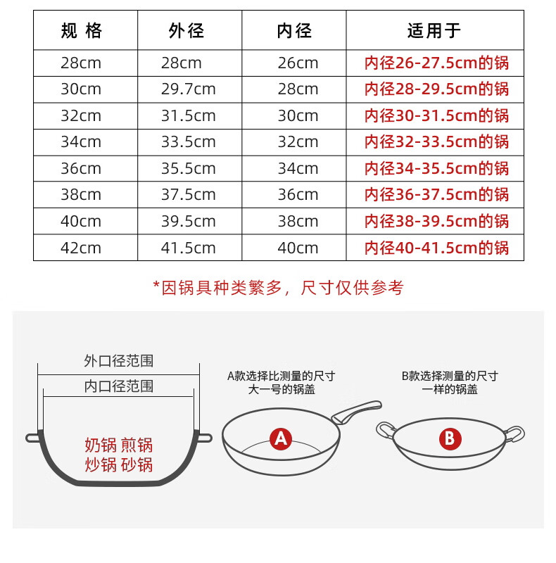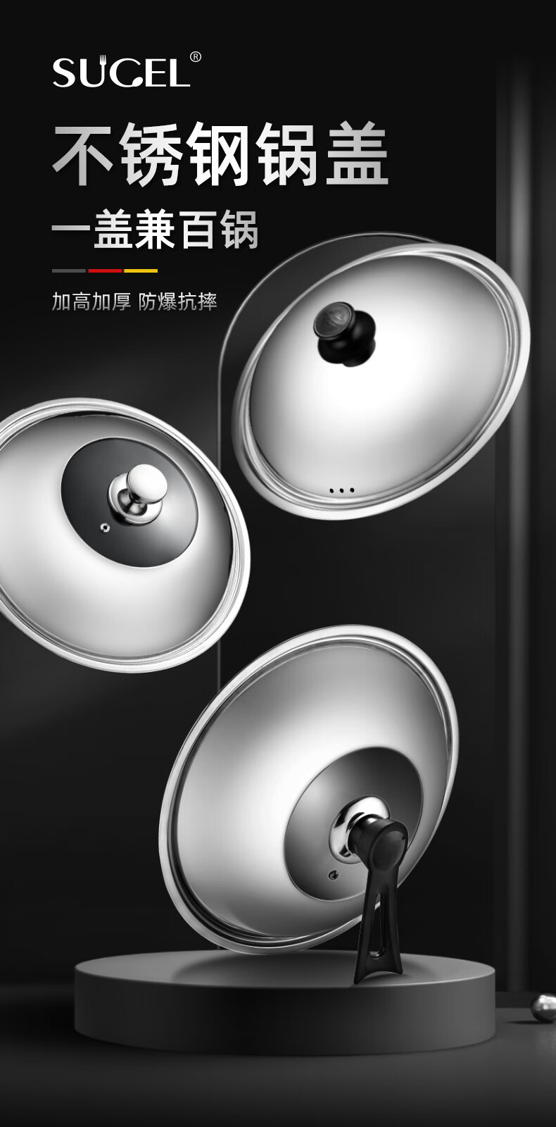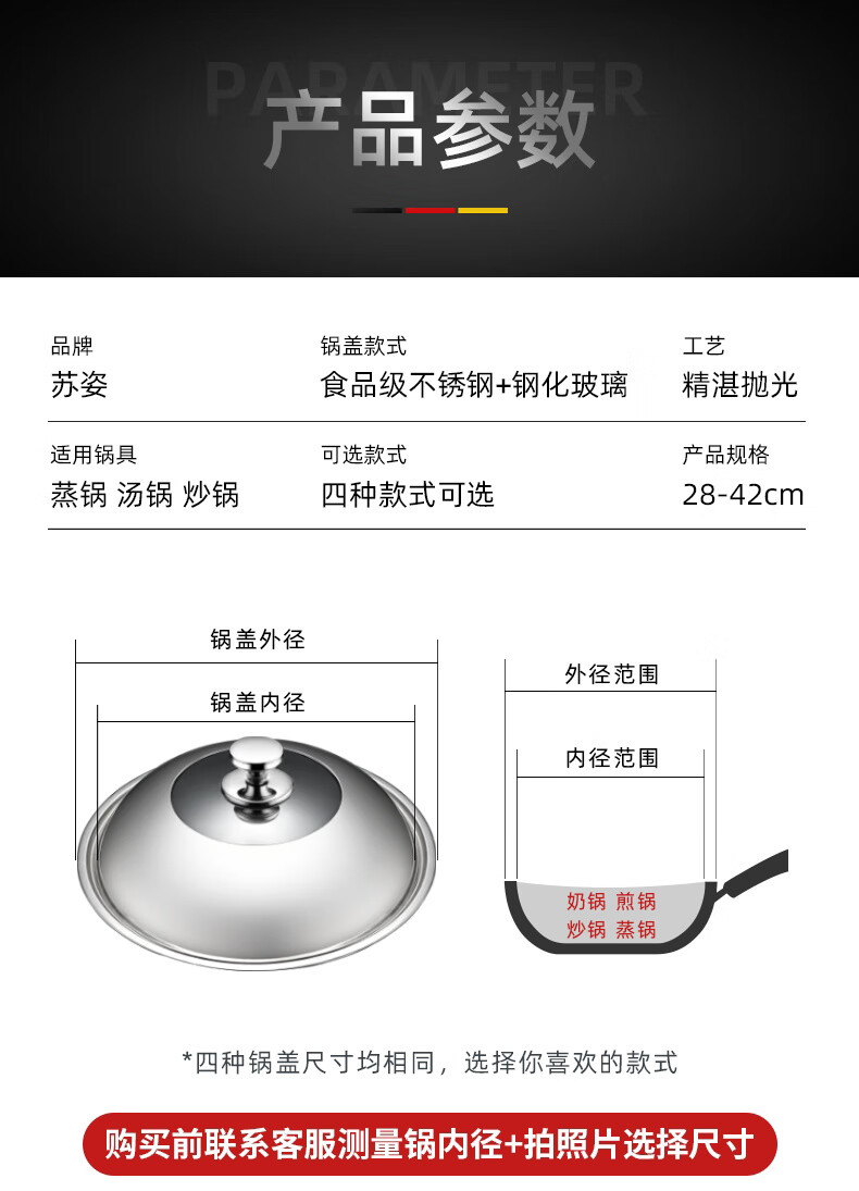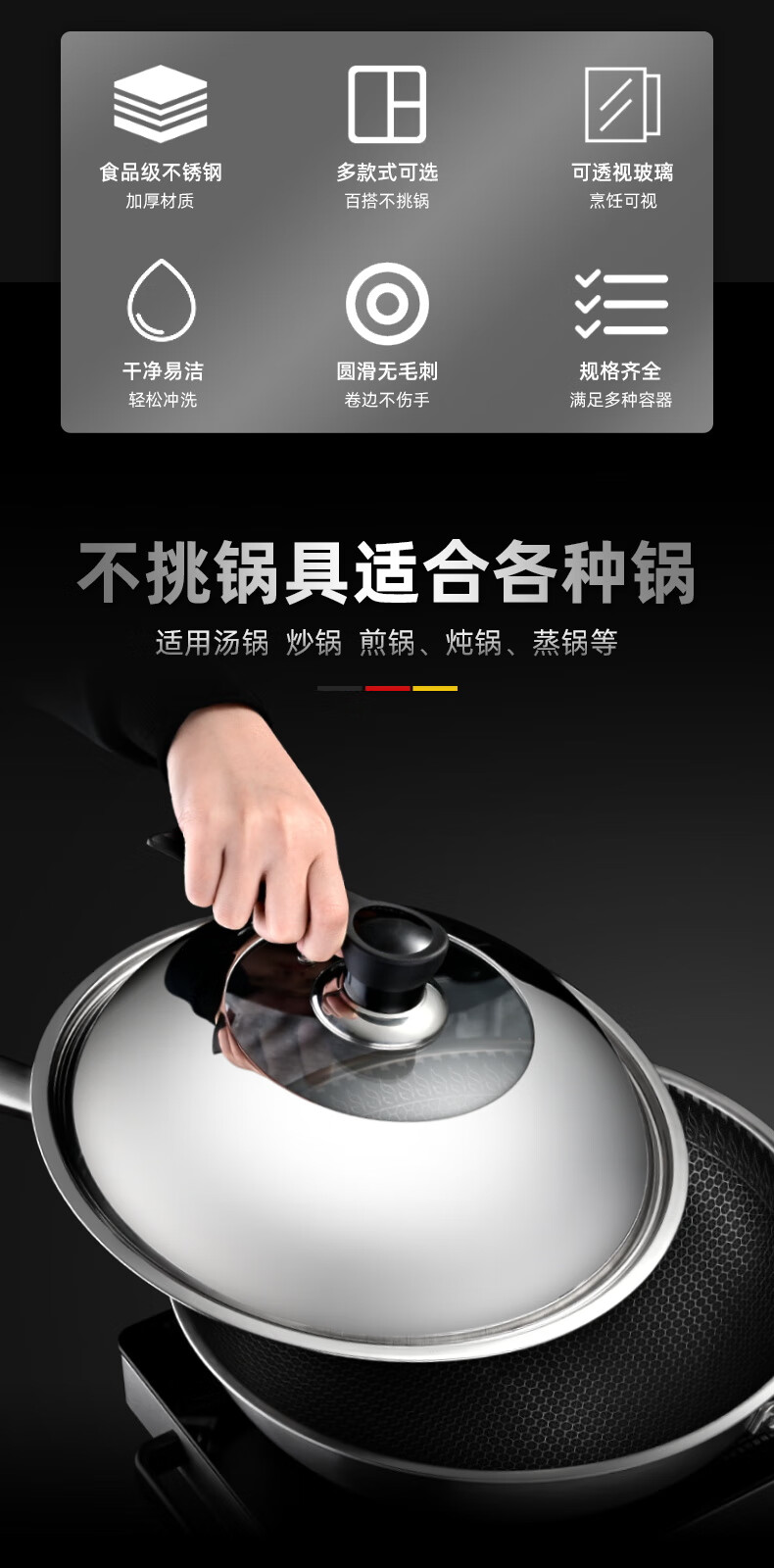 Su Zi household stainless steel pot lid wok lid wok lid 32cm 34cm universal transparent pot lid glass lid 28CM round