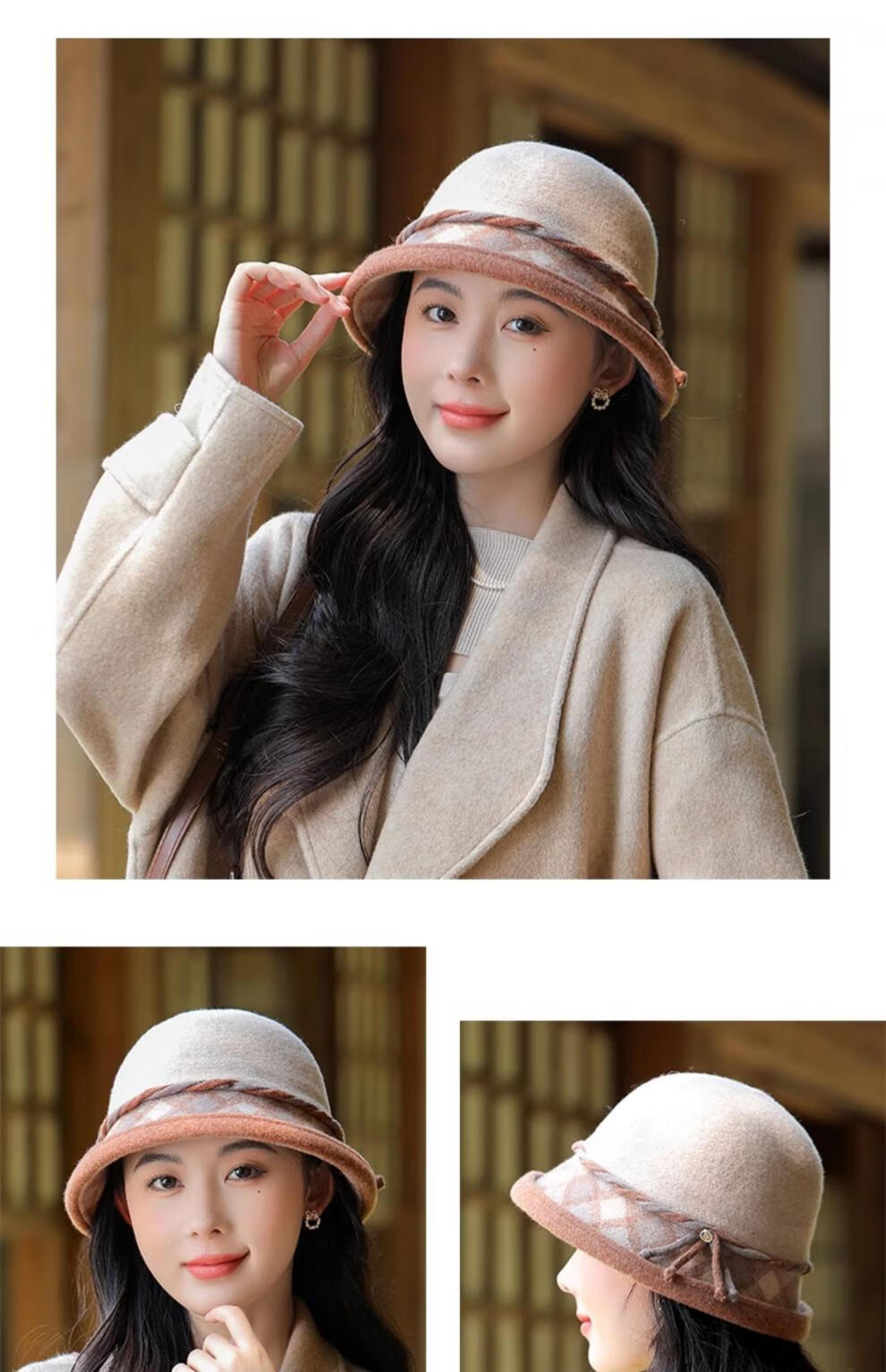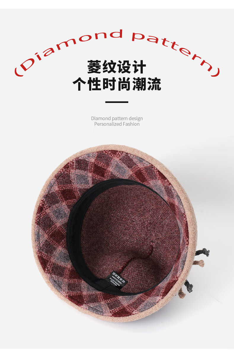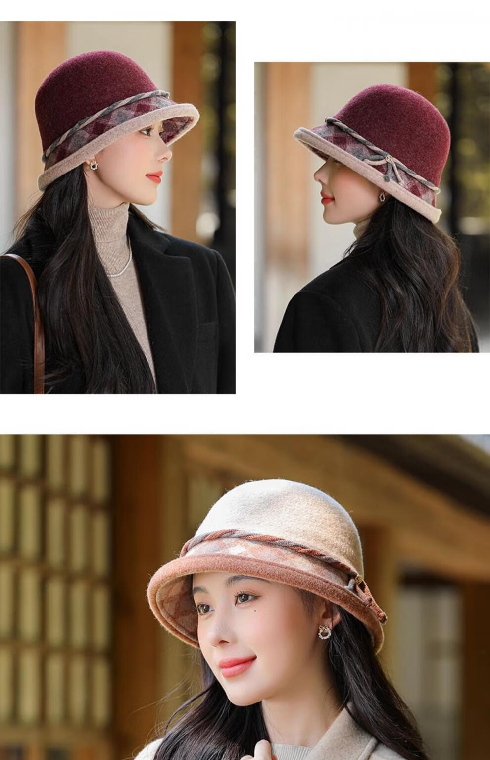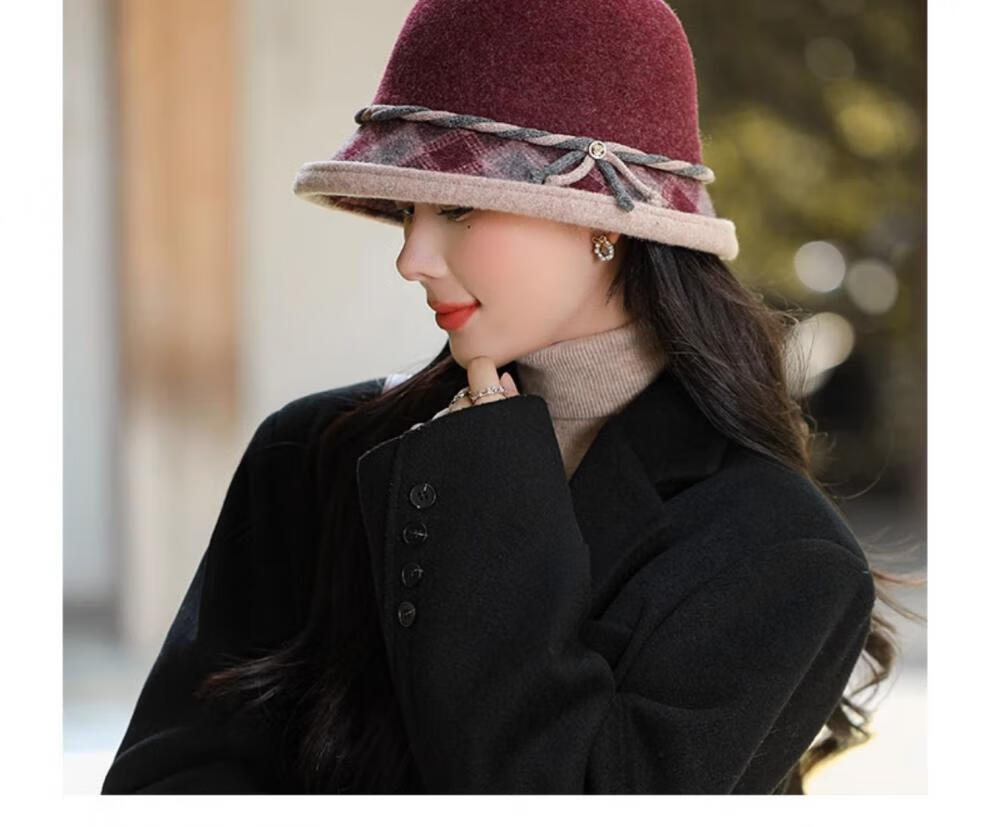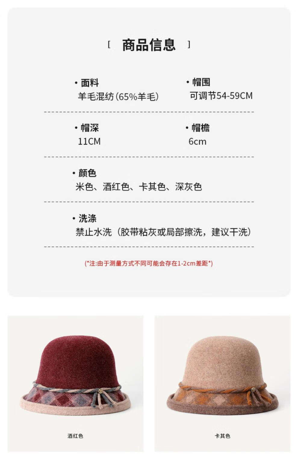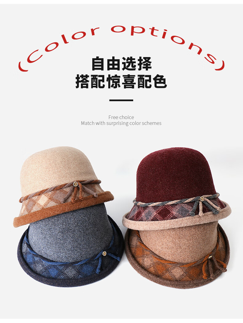 GEFWEIMKL merino wool fisherman hat women's autumn and winter elegant fashion curled basin hat middle-aged and elderly mothers warm felt hat burgundy adjustable