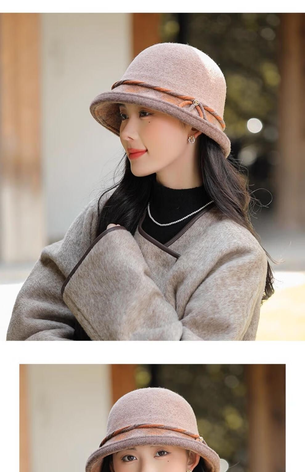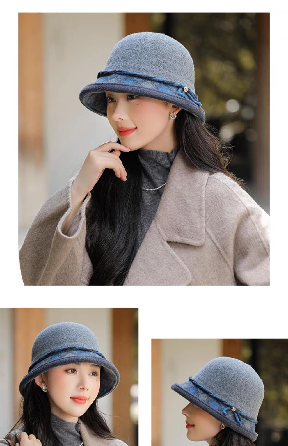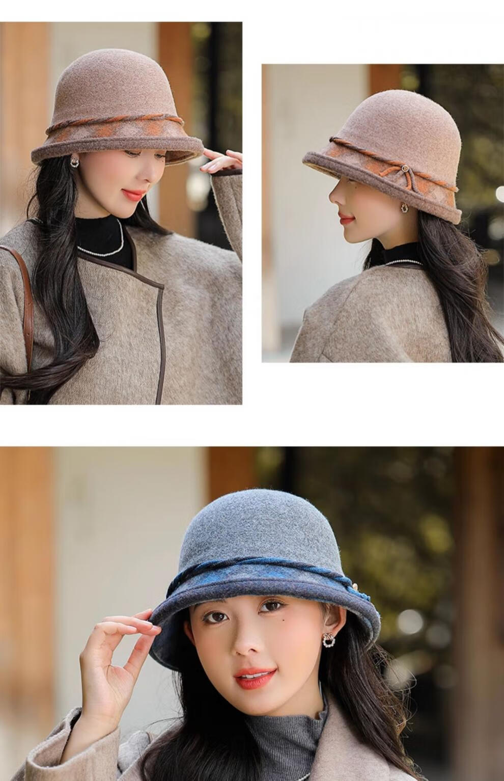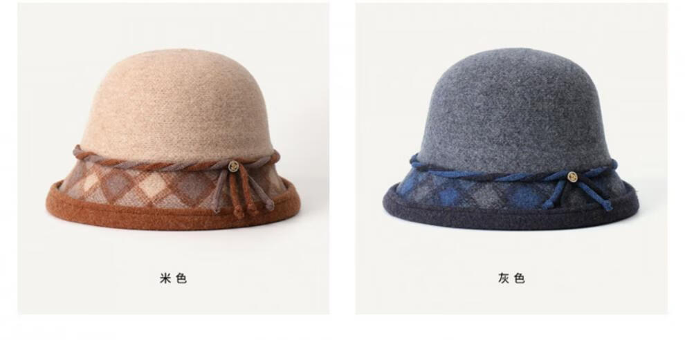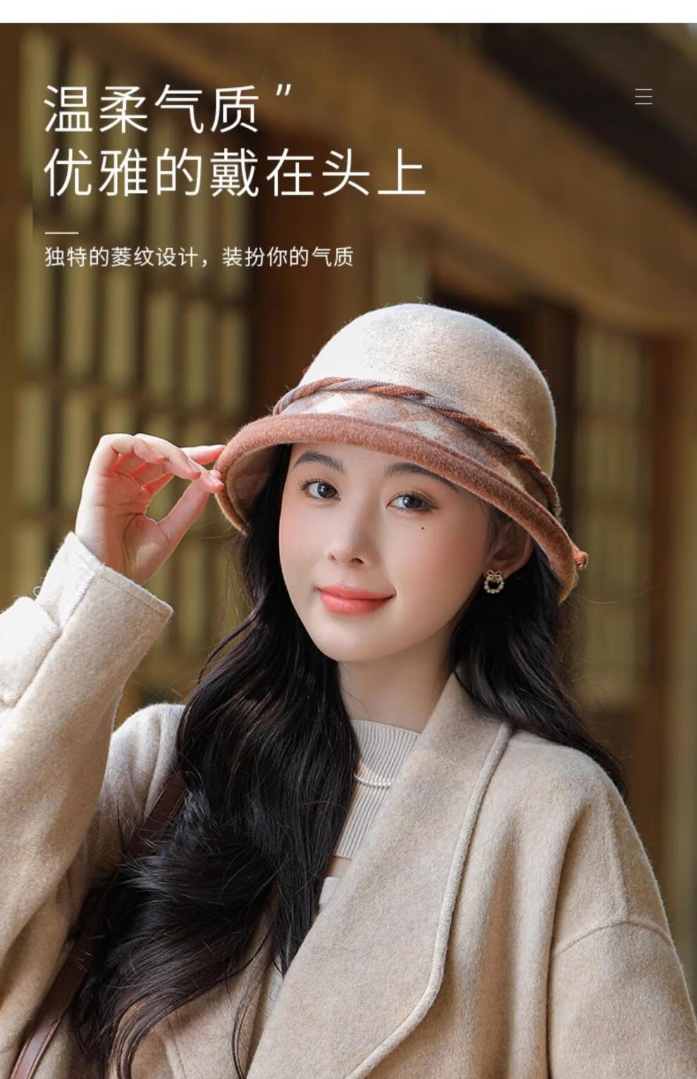 GEFWEIMKL merino wool fisherman hat women's autumn and winter elegant fashion curled basin hat middle-aged and elderly mothers warm felt hat burgundy adjustable