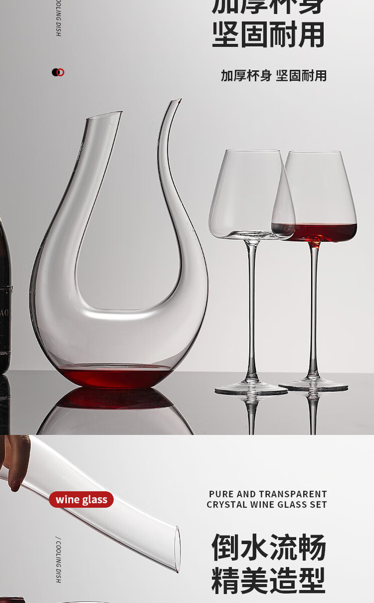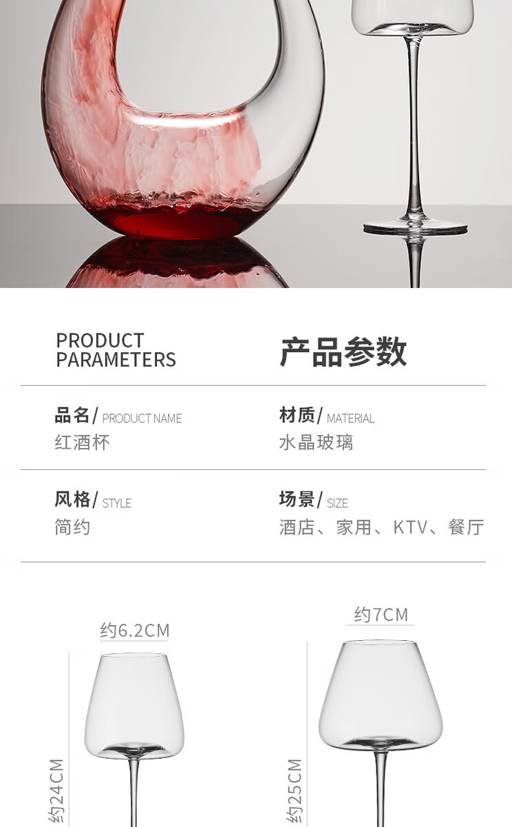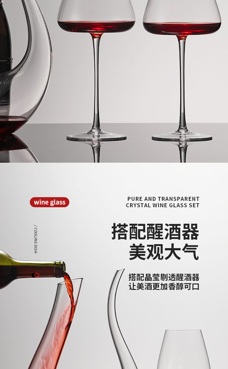 Fantasy red wine glass, goblet, white wine glass, 800mlPro ultra-thin high-end large red wine glass, 6 pieces + U-shaped decanter